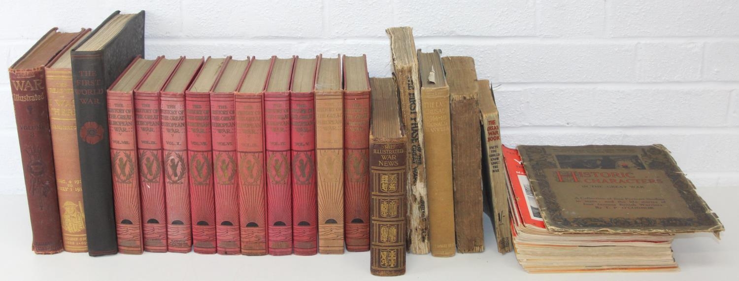 Quantity of WW1 interest books and magazines to include 'The Great War... I Was There!', 'Twenty Years After' and ten volumes of 'The History of the Great European War