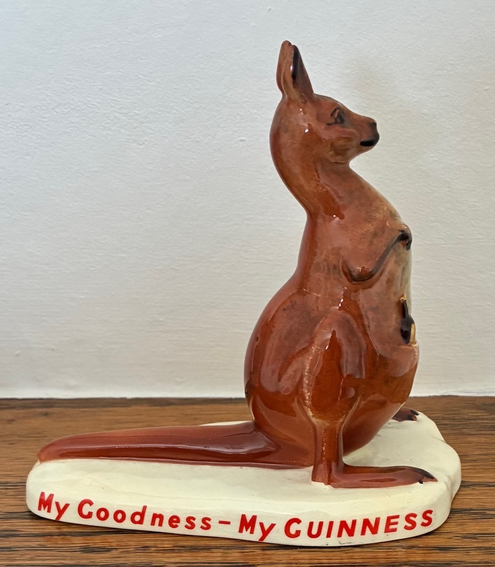 Carlton Ware ceramic Kangaroo with a bottle in it's pouch and the slogan My Goodness - My Guinness, 10cm high 10cm wide.