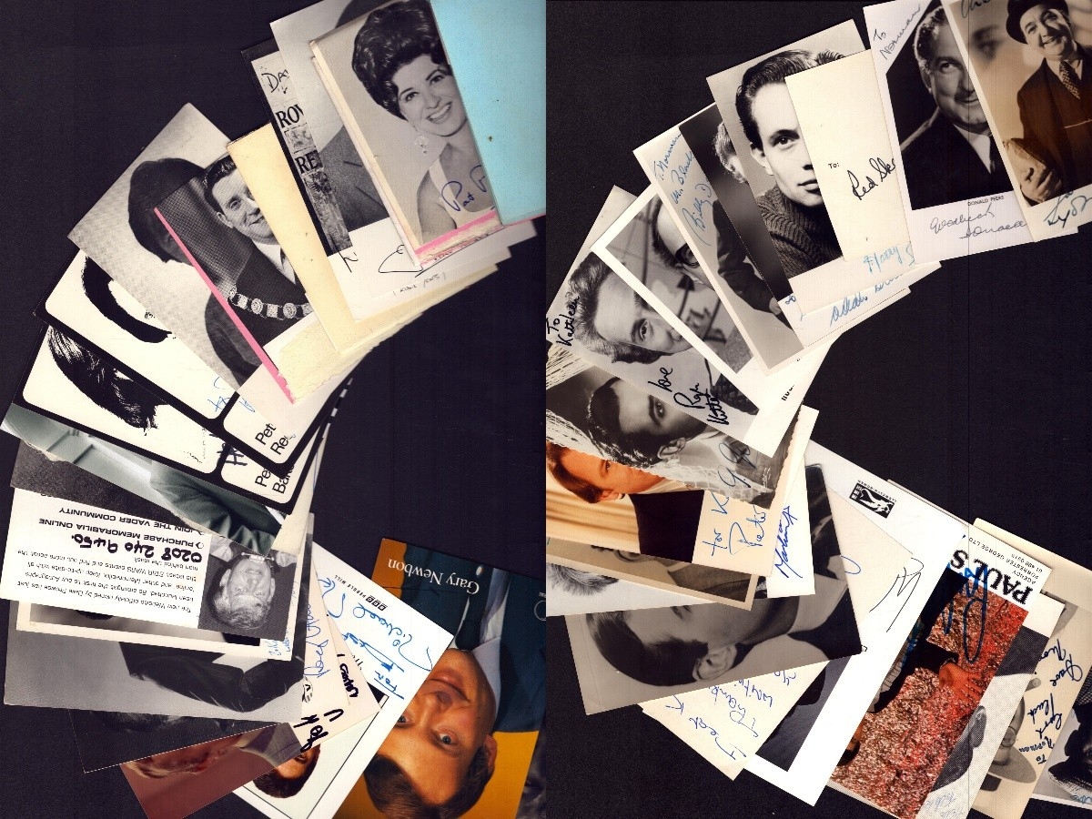 Entertainment signature collection. Includes names such as Roger Kitter, Lawrence Llewelyn-Brown, Paul Squire, Joe Baker, Donald Peers and more. Over 30 in collection.