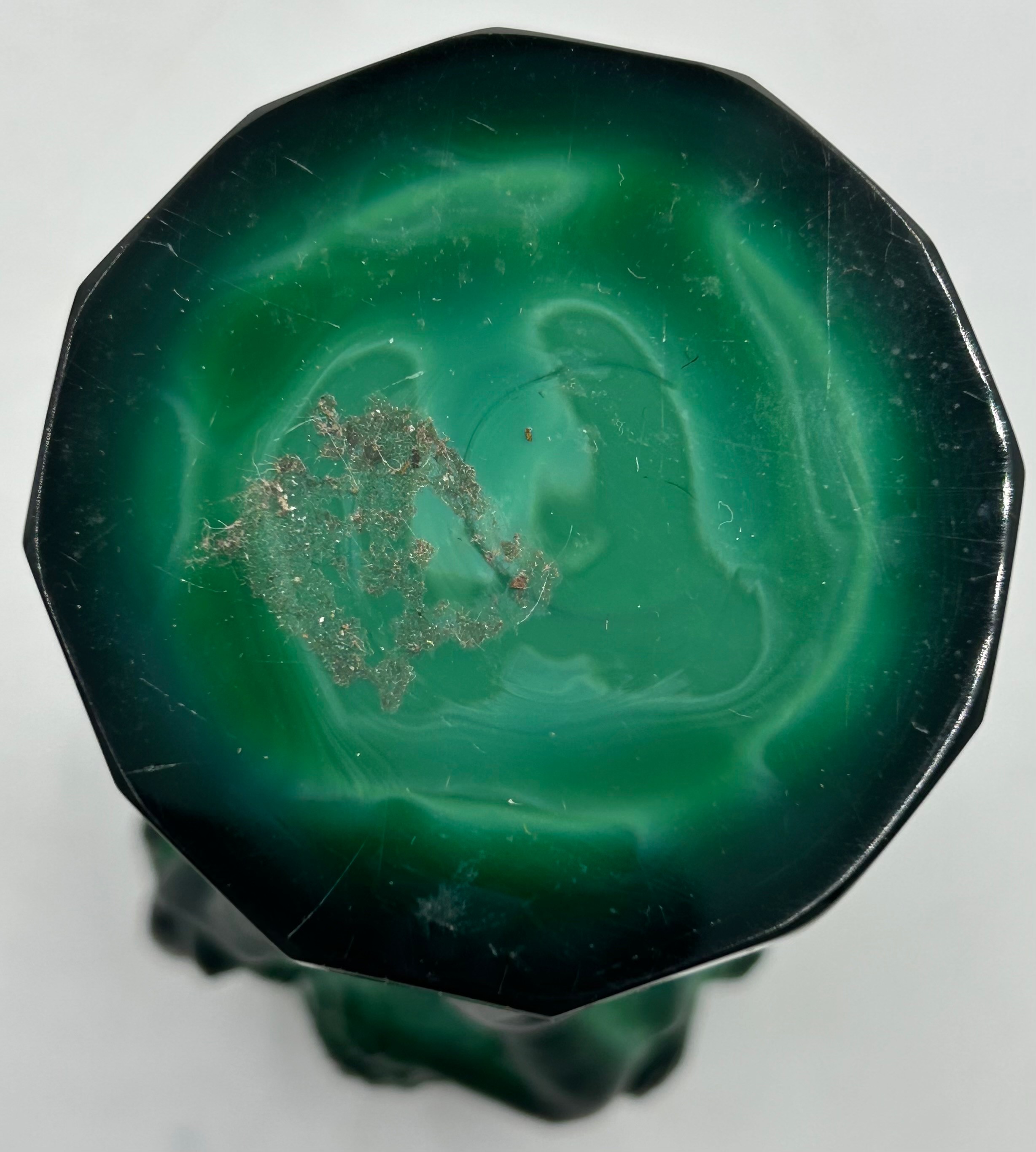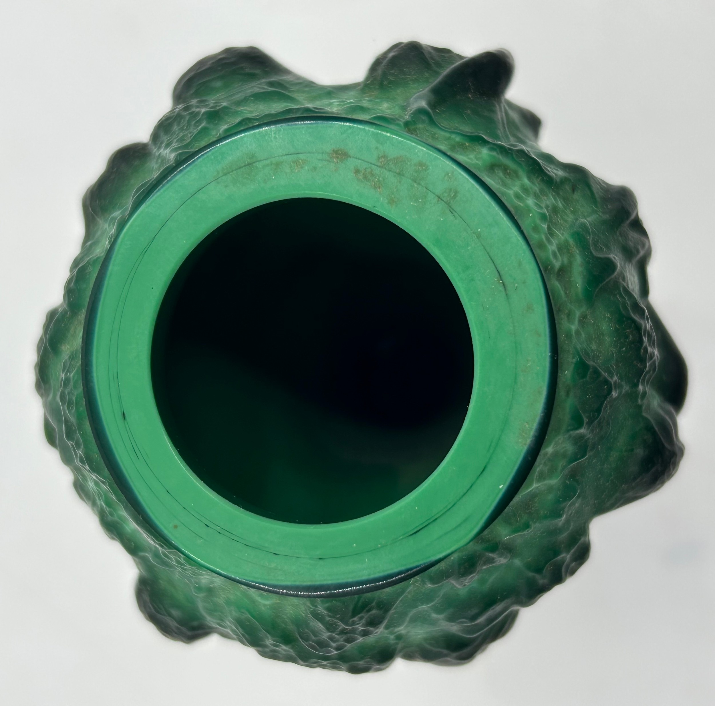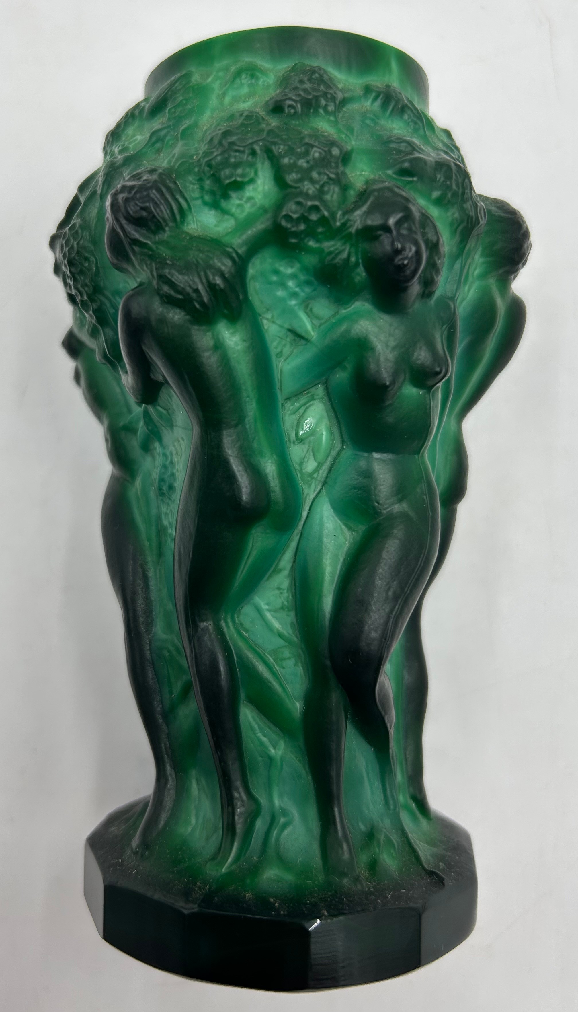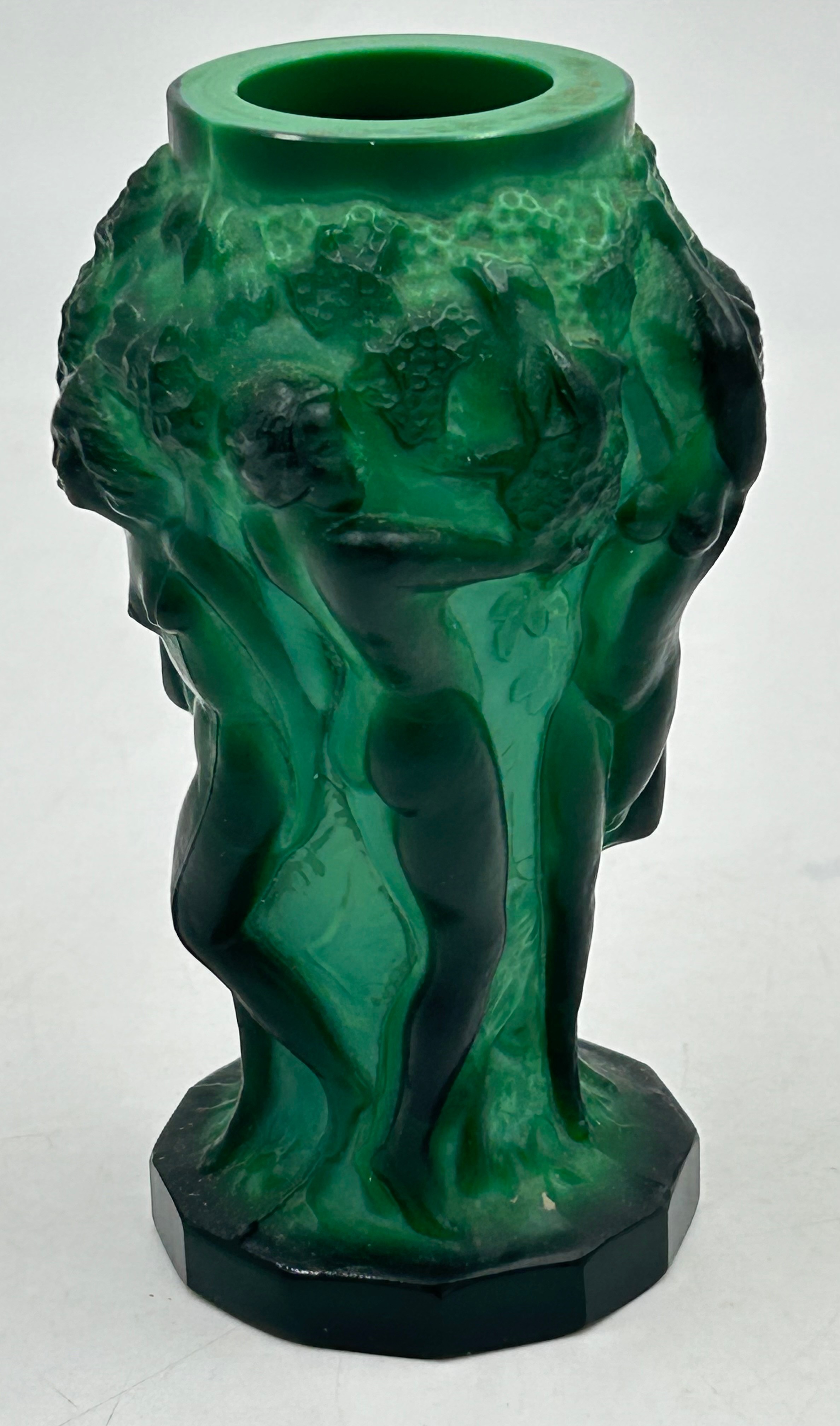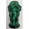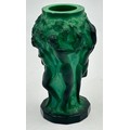 An Art Deco Malachite glass vase by Hoffman & Schlevogt from the 'Ingrid' series, moulded as figures dancing amongst foliage 13cm h.