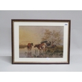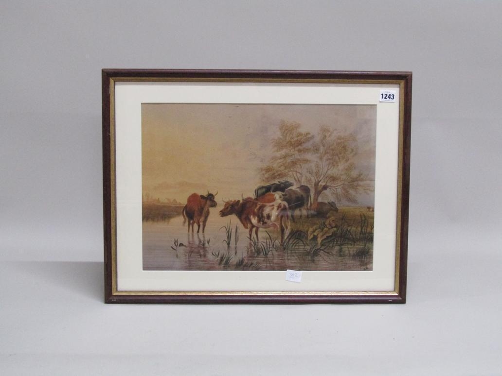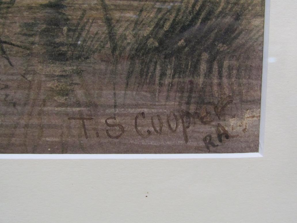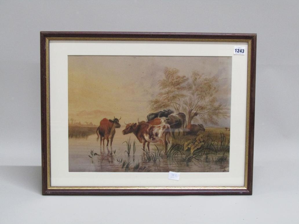 T S COOPER (THOMAS SIDNEY COOPER) - CATTLE AT WATERHOLE IN EVENING, SIGNED WATERCOLOUR, F/G
