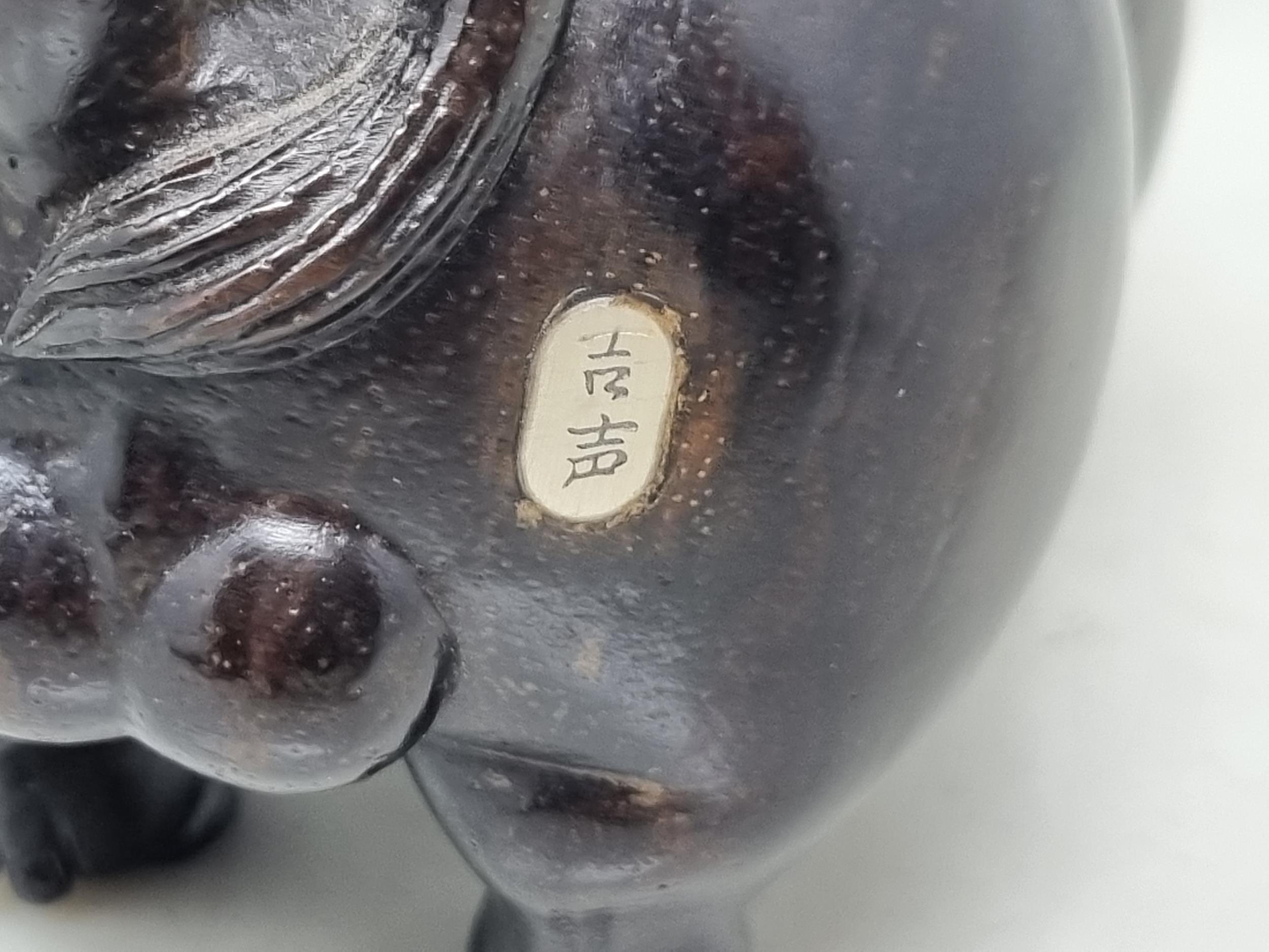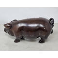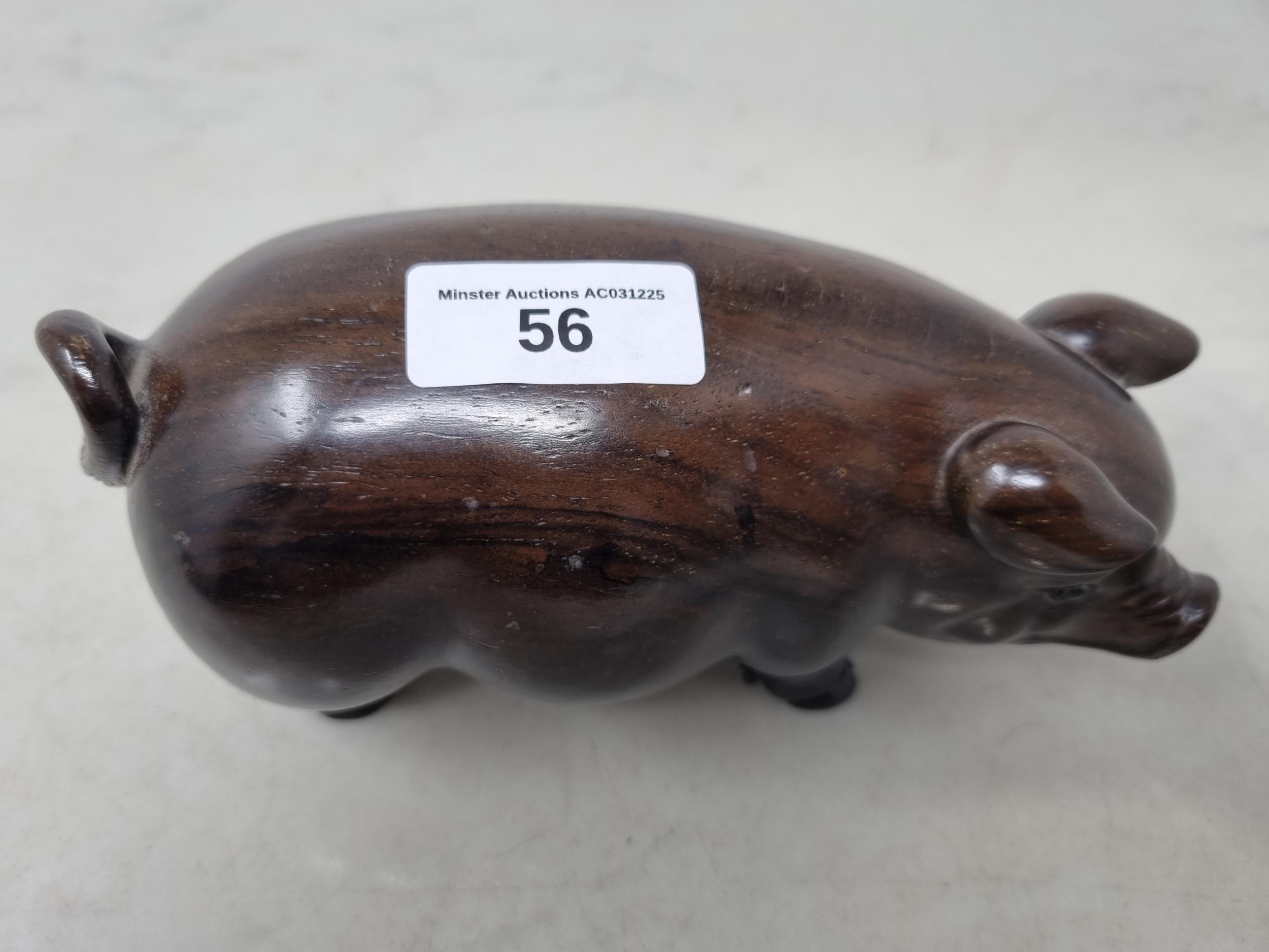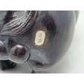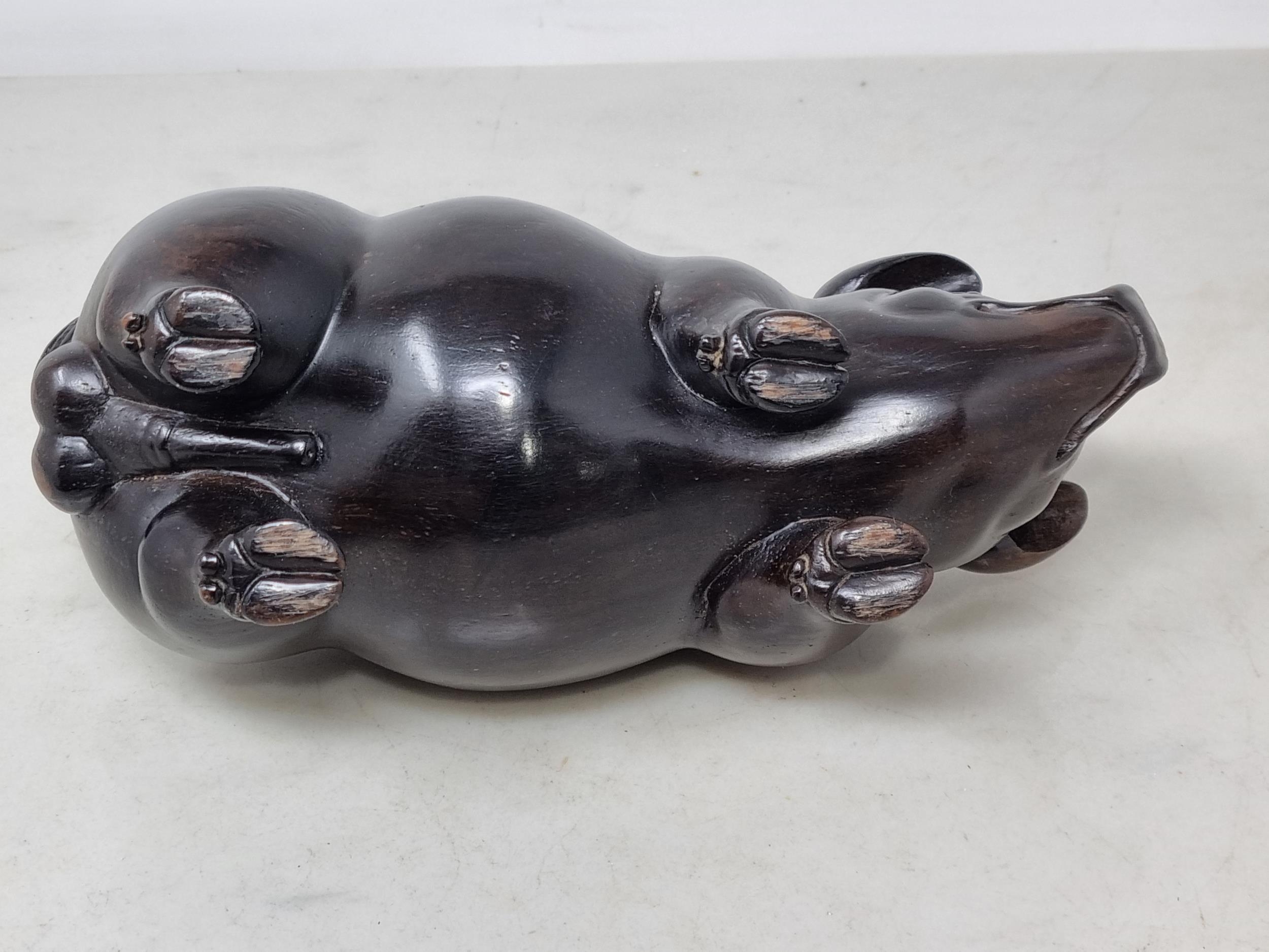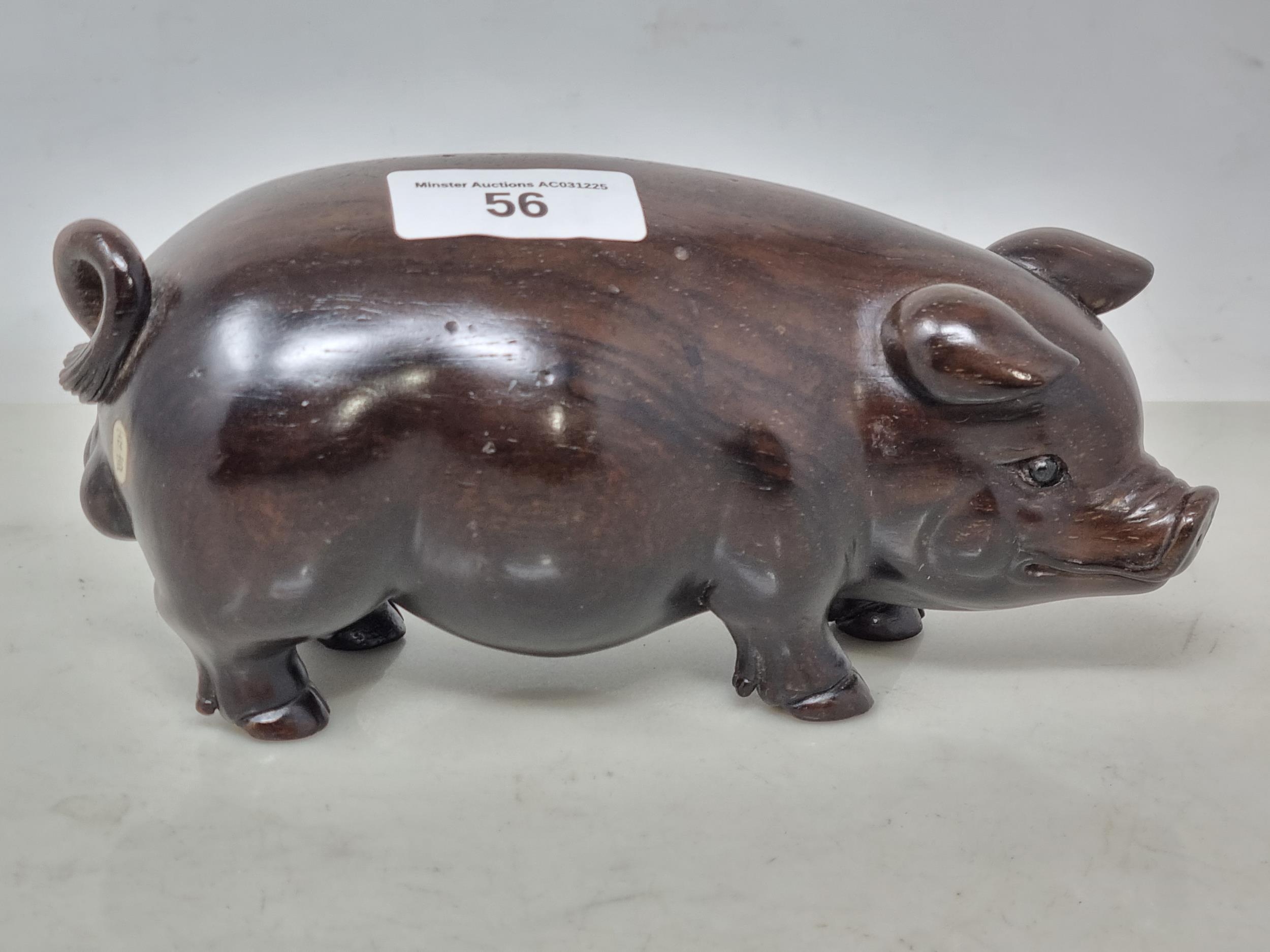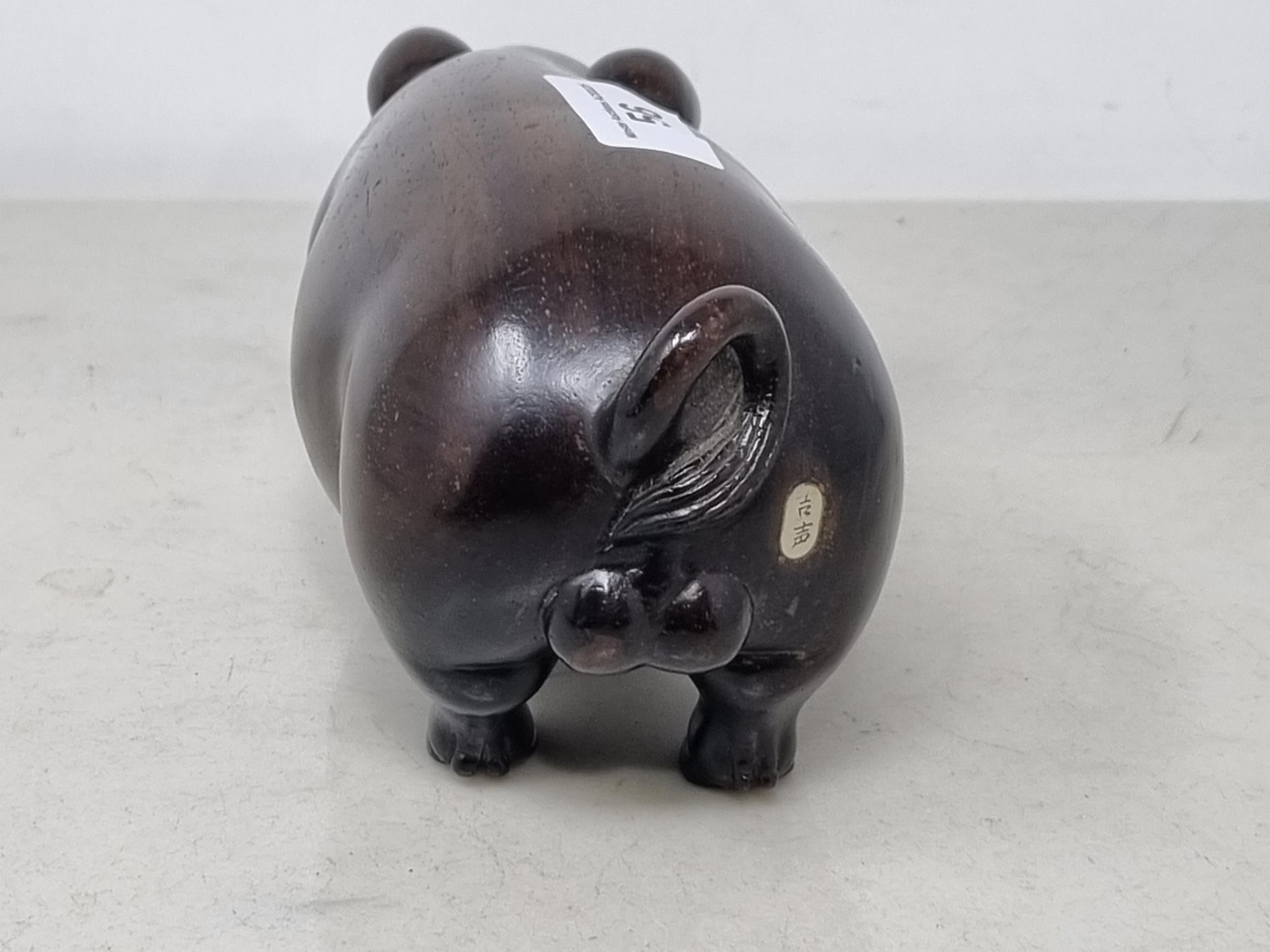 An Oriental carved hardwood Boar with signature on an inset white metal panel, 6in CAB