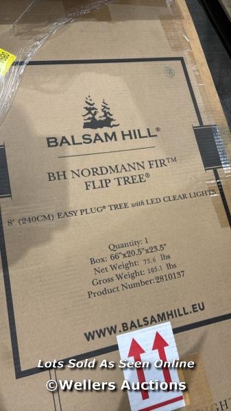 BALSAM HILL NORDMANN FIR FLIP TREE, 8FT EASY PLUG TREE WITH LED CLEAR LIGHTS / COLLECTION FROM DARTFORD