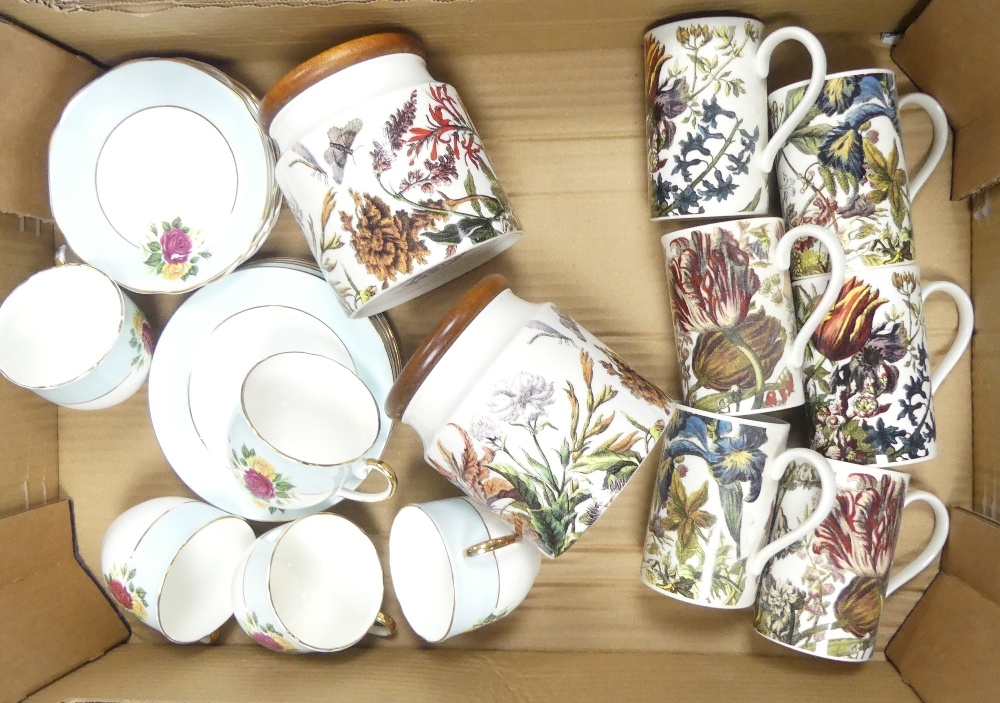 A mixed selection of ceramics to include:- part tea set Rosalie cups, saucers, side plates, Dunoon 'Flora' storage containers, six mugs (1tray)