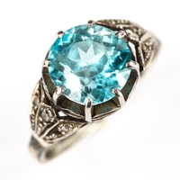 No damage, all stones present, settings slightly worn and lightly abraded mainly on back of shank where there are 2 well concealed join marks, hallmarks clear, stamped 375