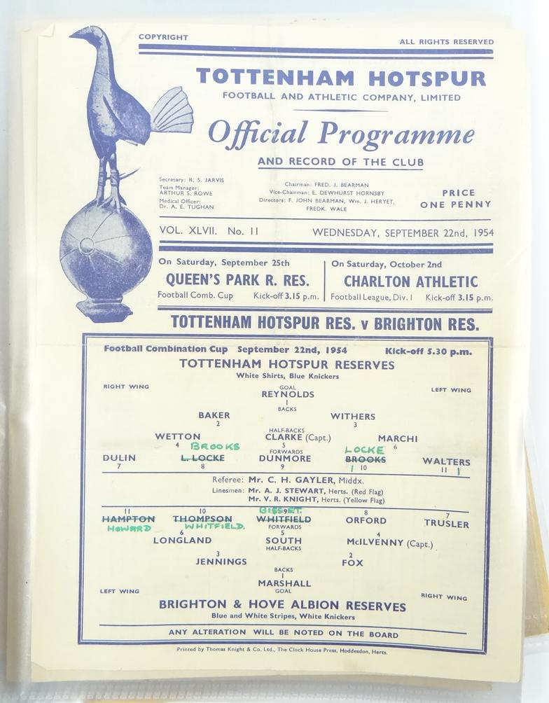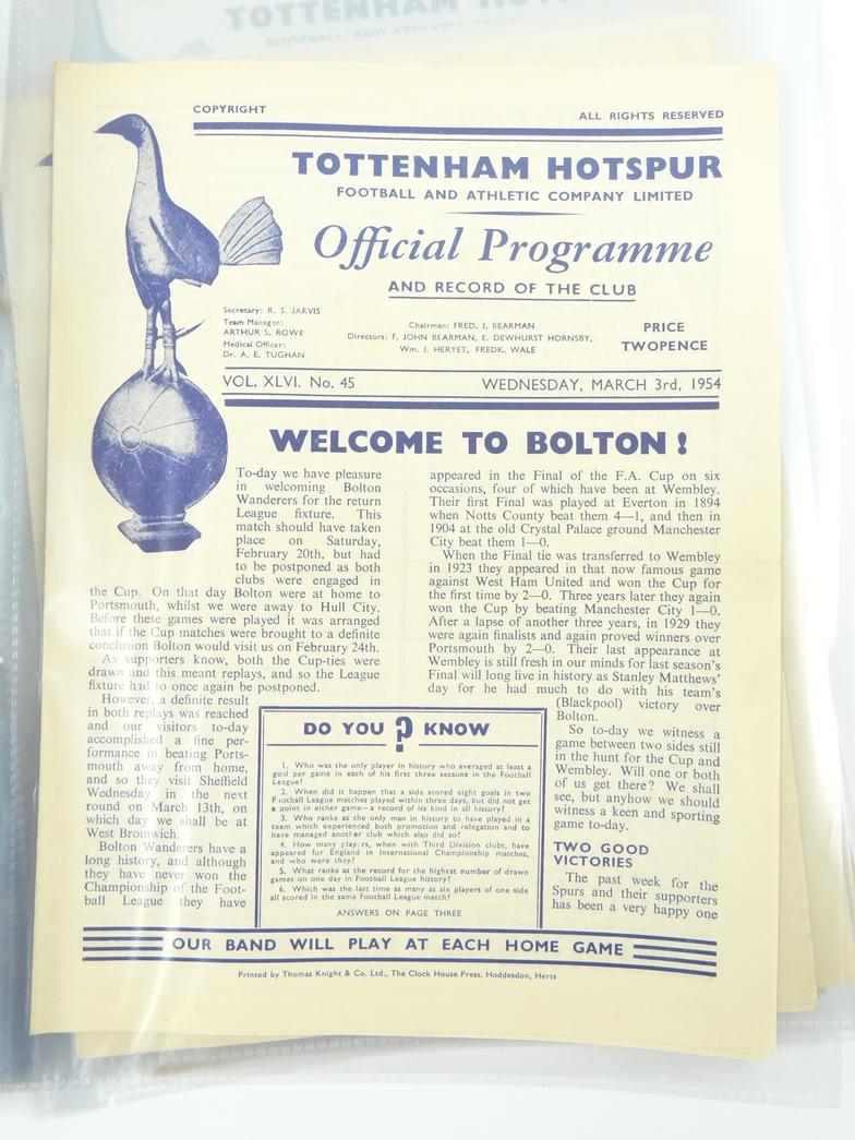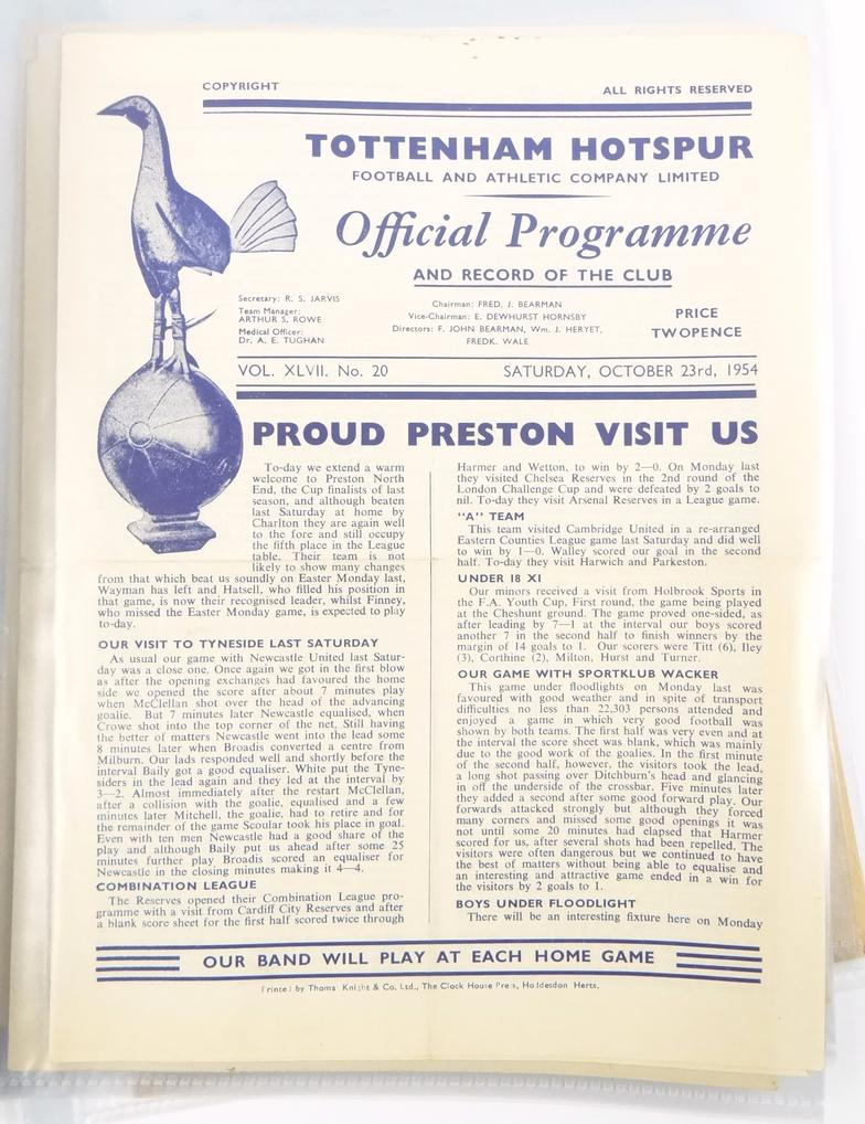 Collection of Tottenham Hotspur Football programmes circa 1950s and later