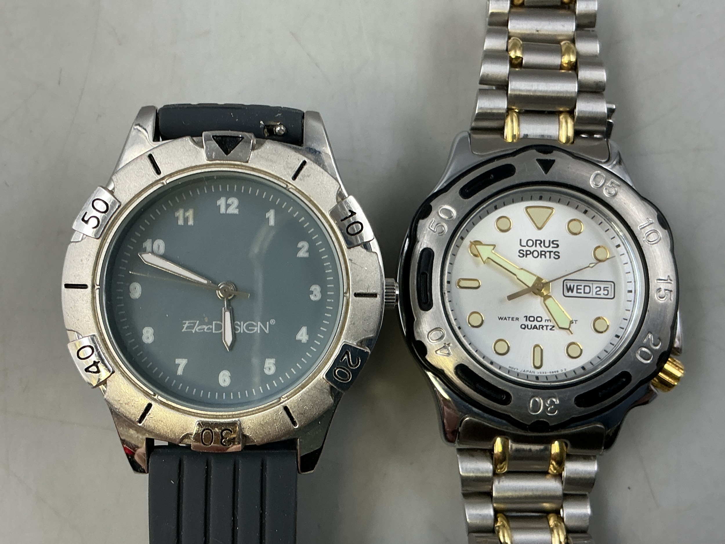 Lorus Sports Day / Date 10mtrs Gents Quartz Watch and a Elec Design Gents Gents Quartz Watch with Rubberised Strap (Both Working)
