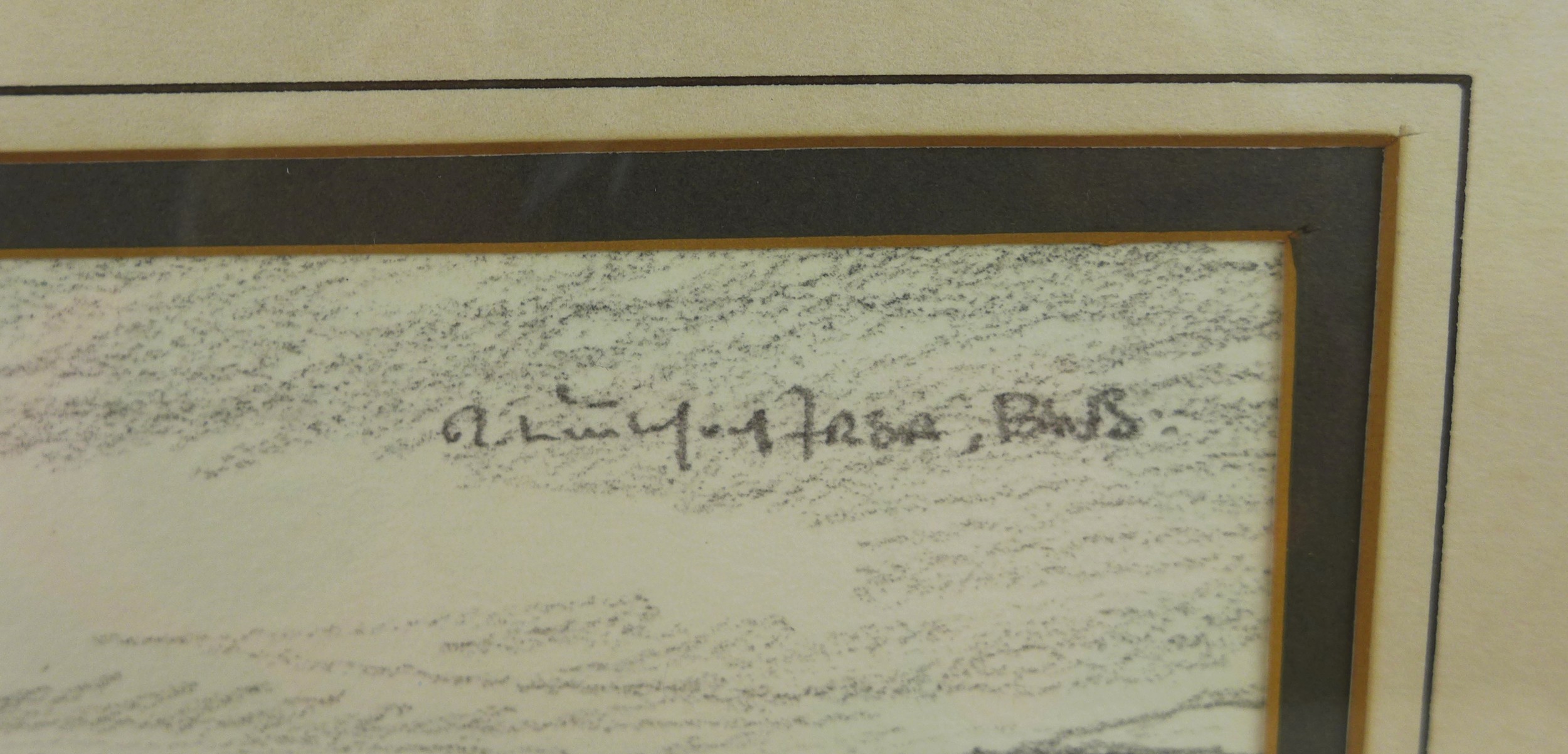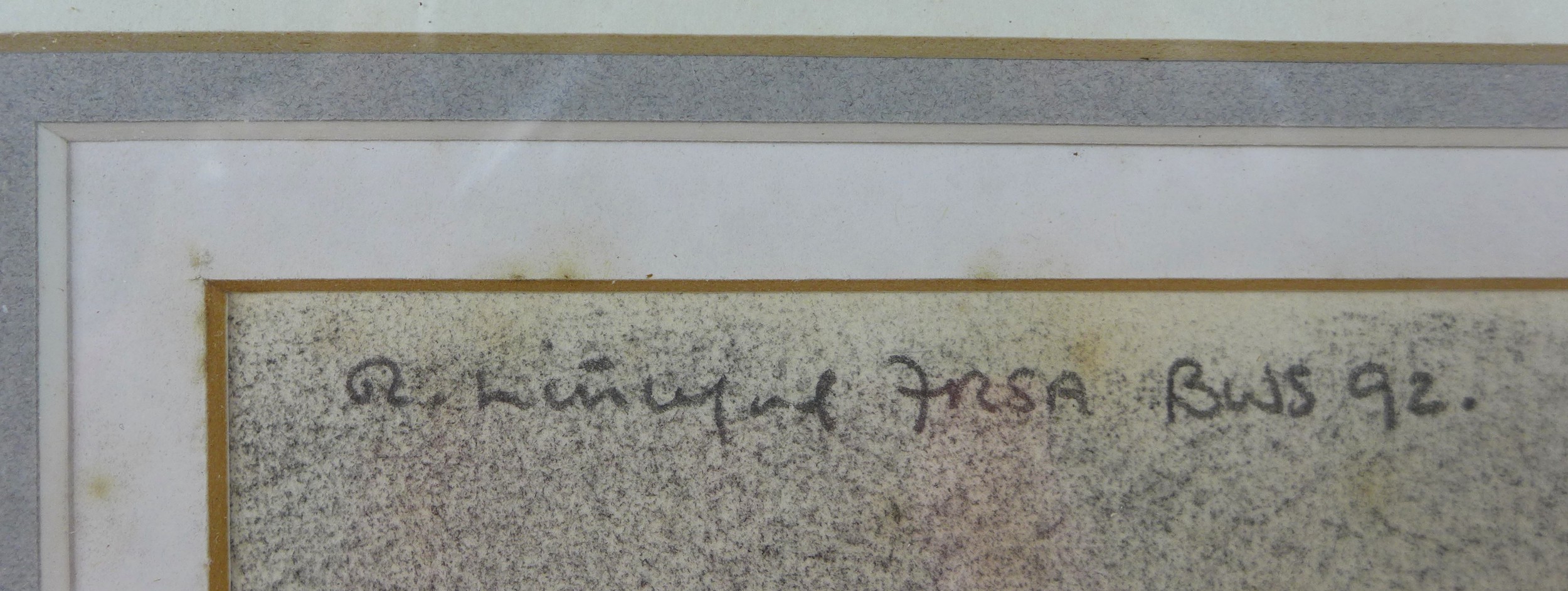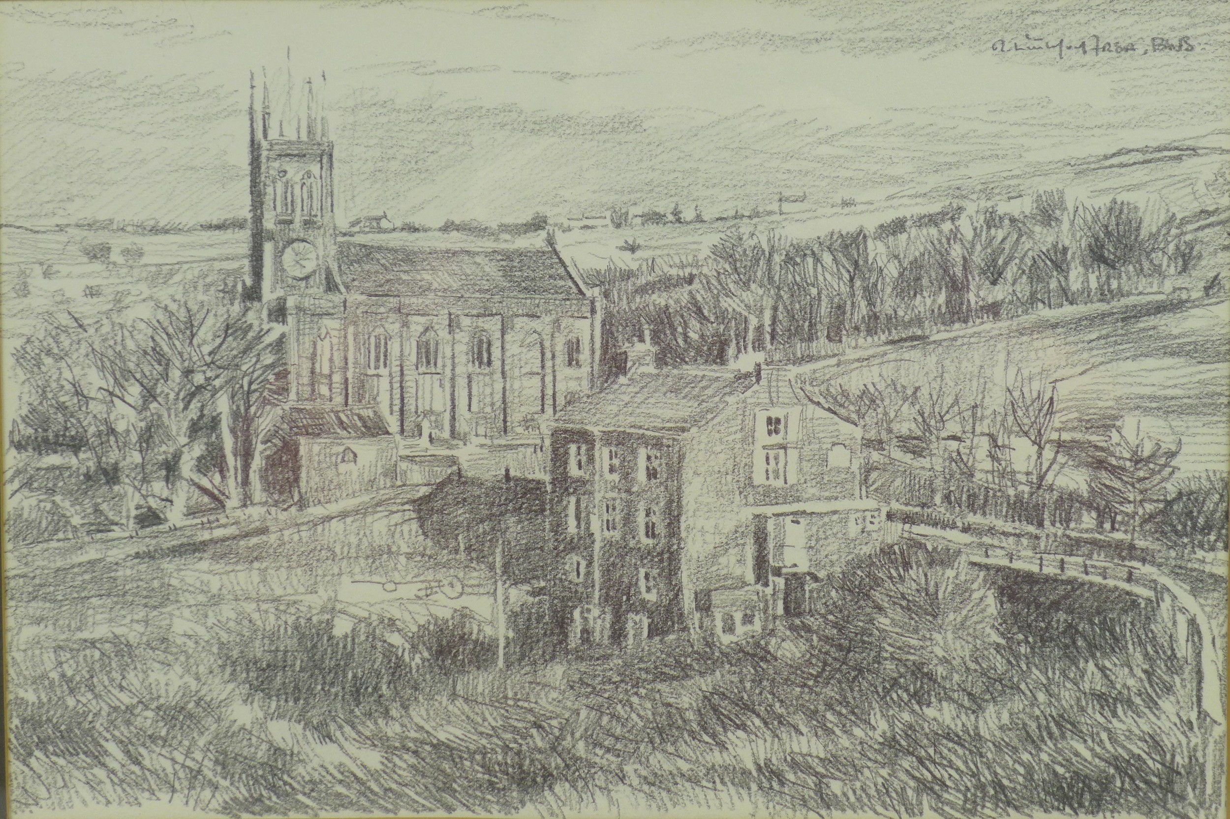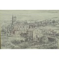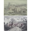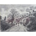 Robert Littleford (b. 1945): two landscape drawings, comprising a picture of a church, pencil on paper, signed top right corner, 22 by 33cm, framed and glazed, 41 by 51.5cm, together with a picture of two children running up a lane, charcoal on paper, signed top left corner, dated 1992, 28.5 by 37cm, framed and glazed, 49 by 56.5cm. (2)