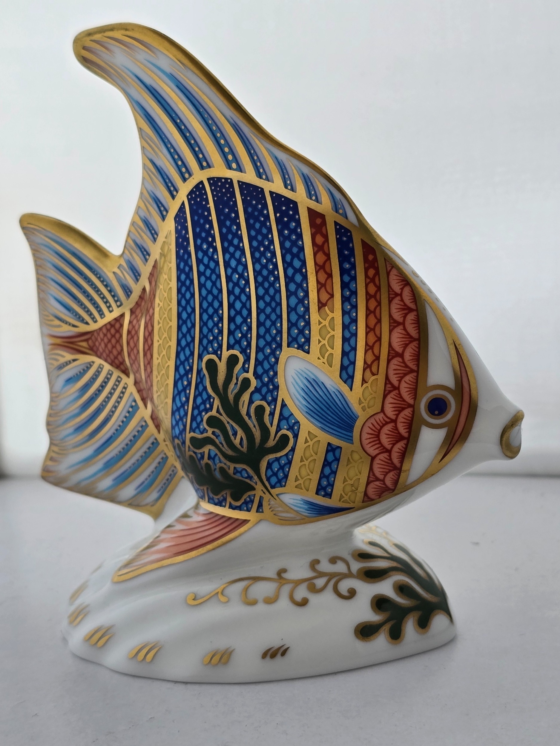 Royal Crown Derby Pacific Angel Fish ceramic paperweight. Doulton Retailers special edition, no 804. Gold RCD stopper - first quality. Excellent condition. Boxed