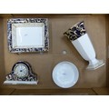 Wedgwood Cornucopia pattern items to include a mantle clock, vase, rectangular dish, etc (1 tray).