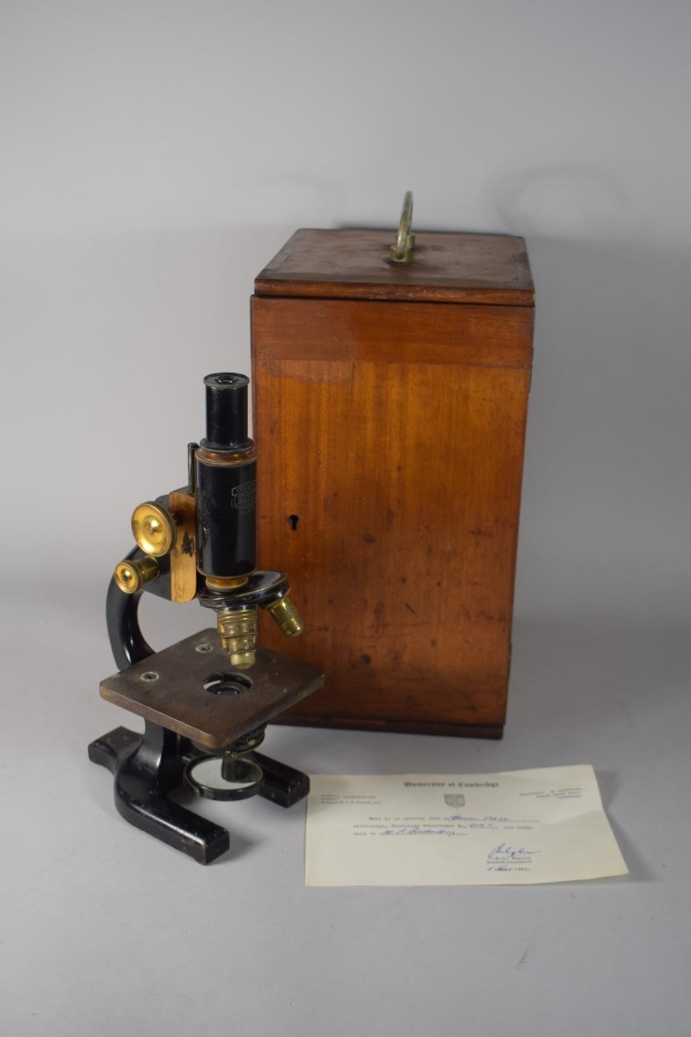 An American Cased Microscope by Spencer, Buffalo, No. 50872, with Sale Note from University of Cambridge, 1963