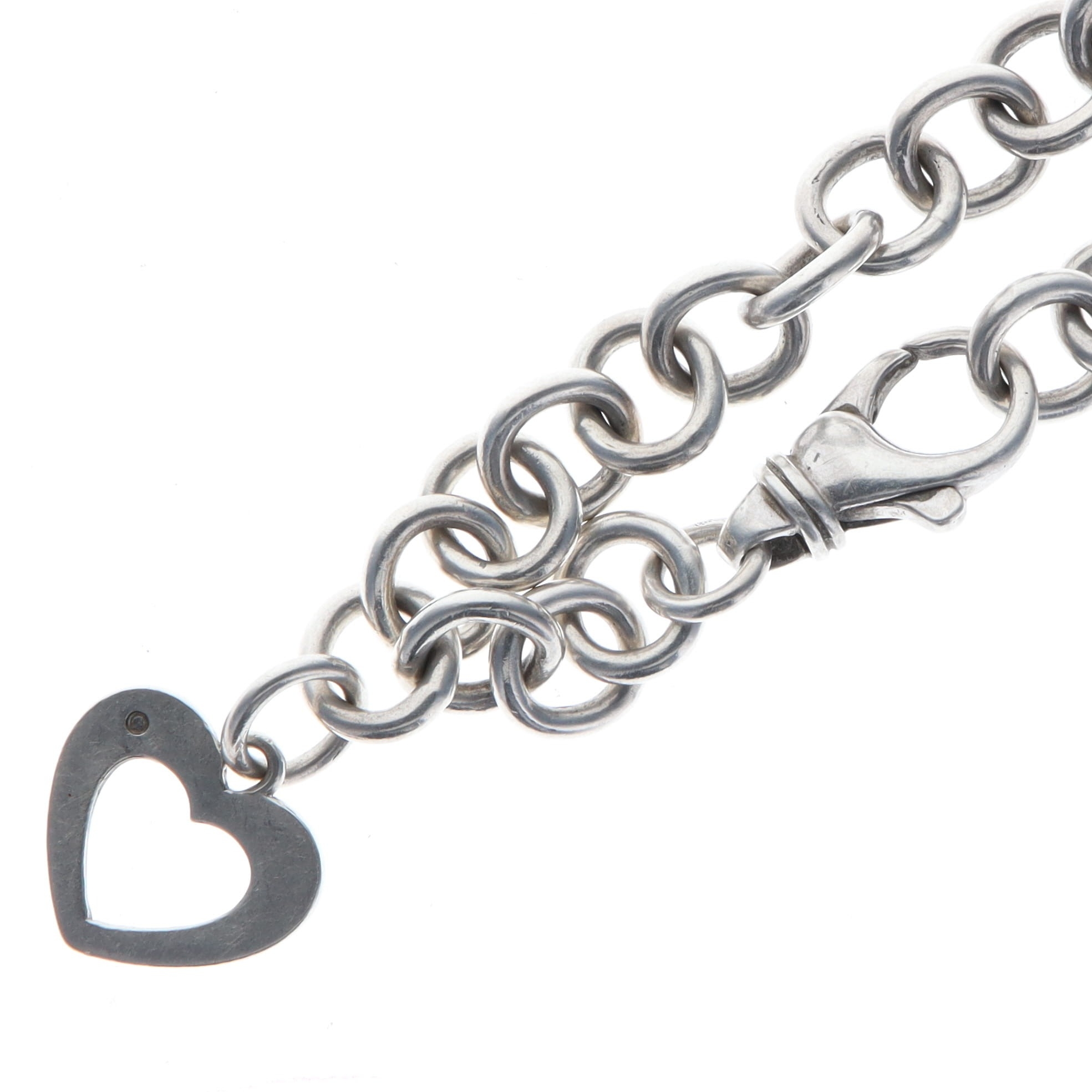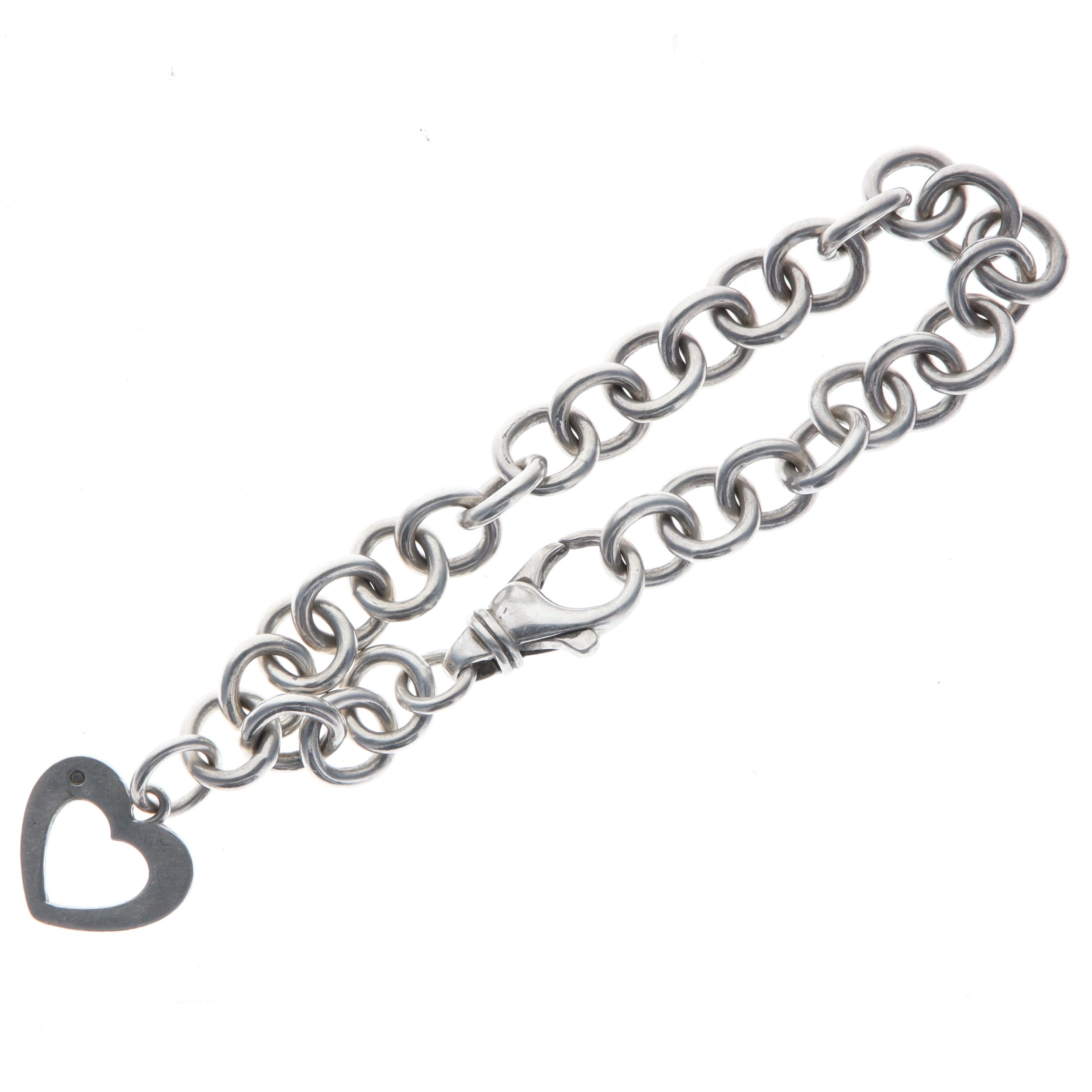 Sterling silver belcher chain bracelet with cutwork heart & diamond. This bracelet has been stamped as 925 silver. Measures approx. 19.5cm. Weighs in total 26g.
