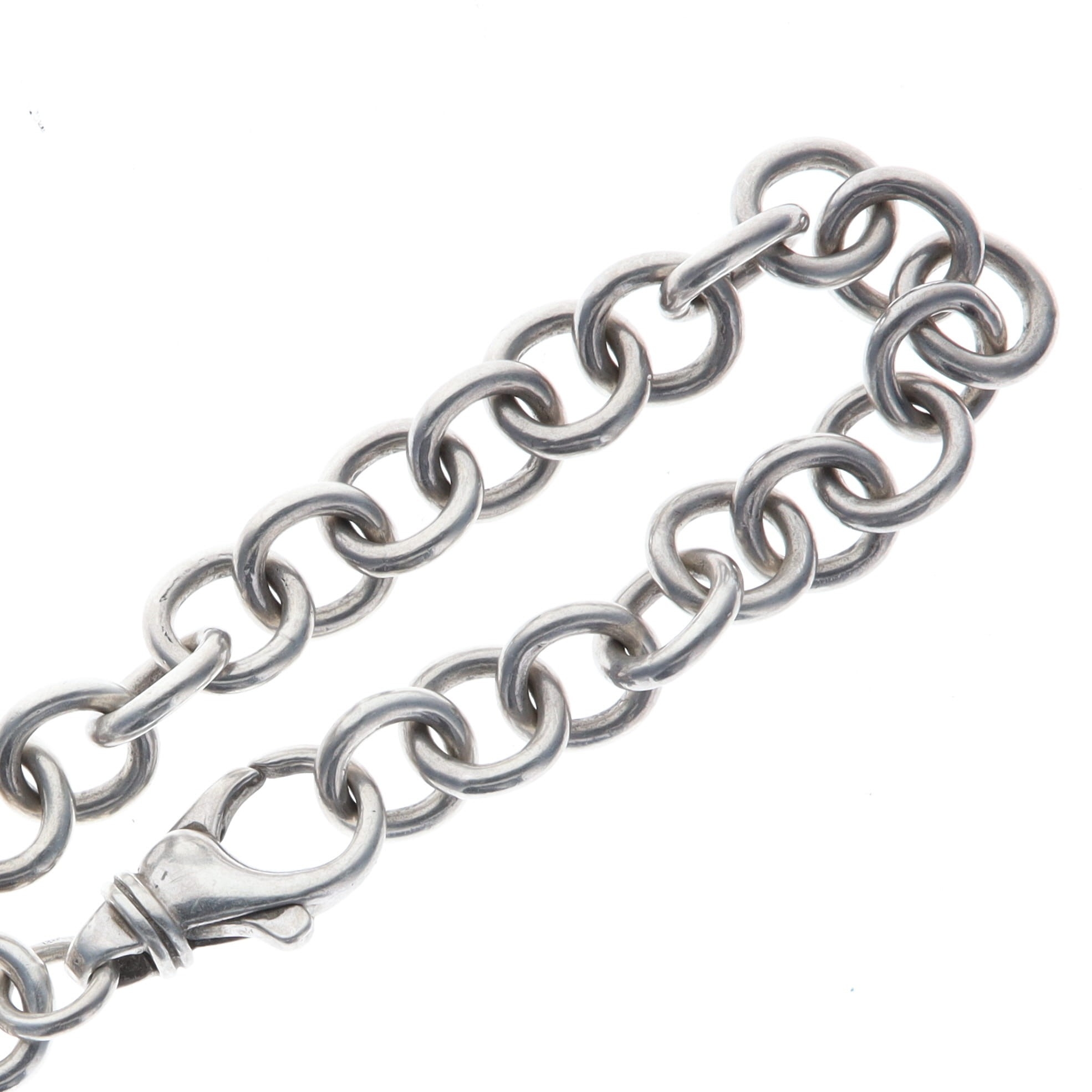 Sterling Silver Belcher Chain Bracelet with Cutwork Heart, Diamond, 26g