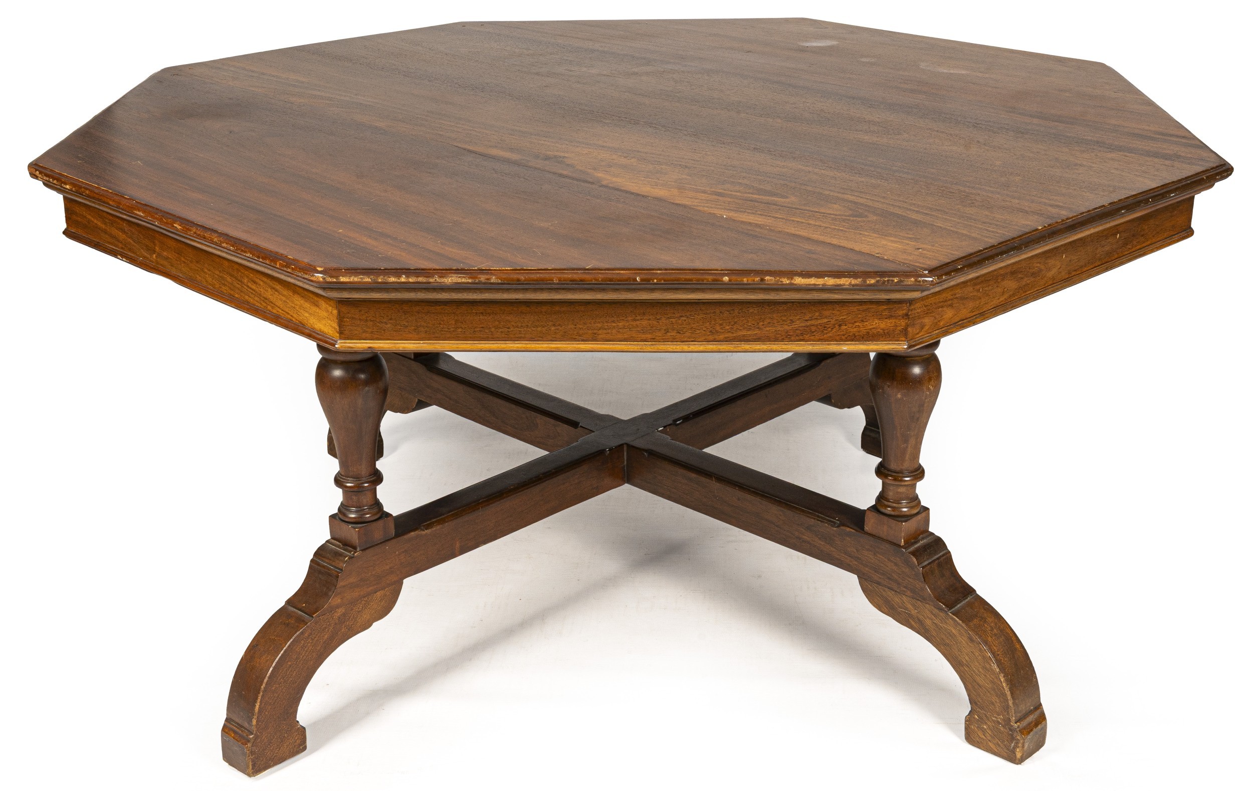 A MAHOGANY OCTAGONAL DINING TABLE