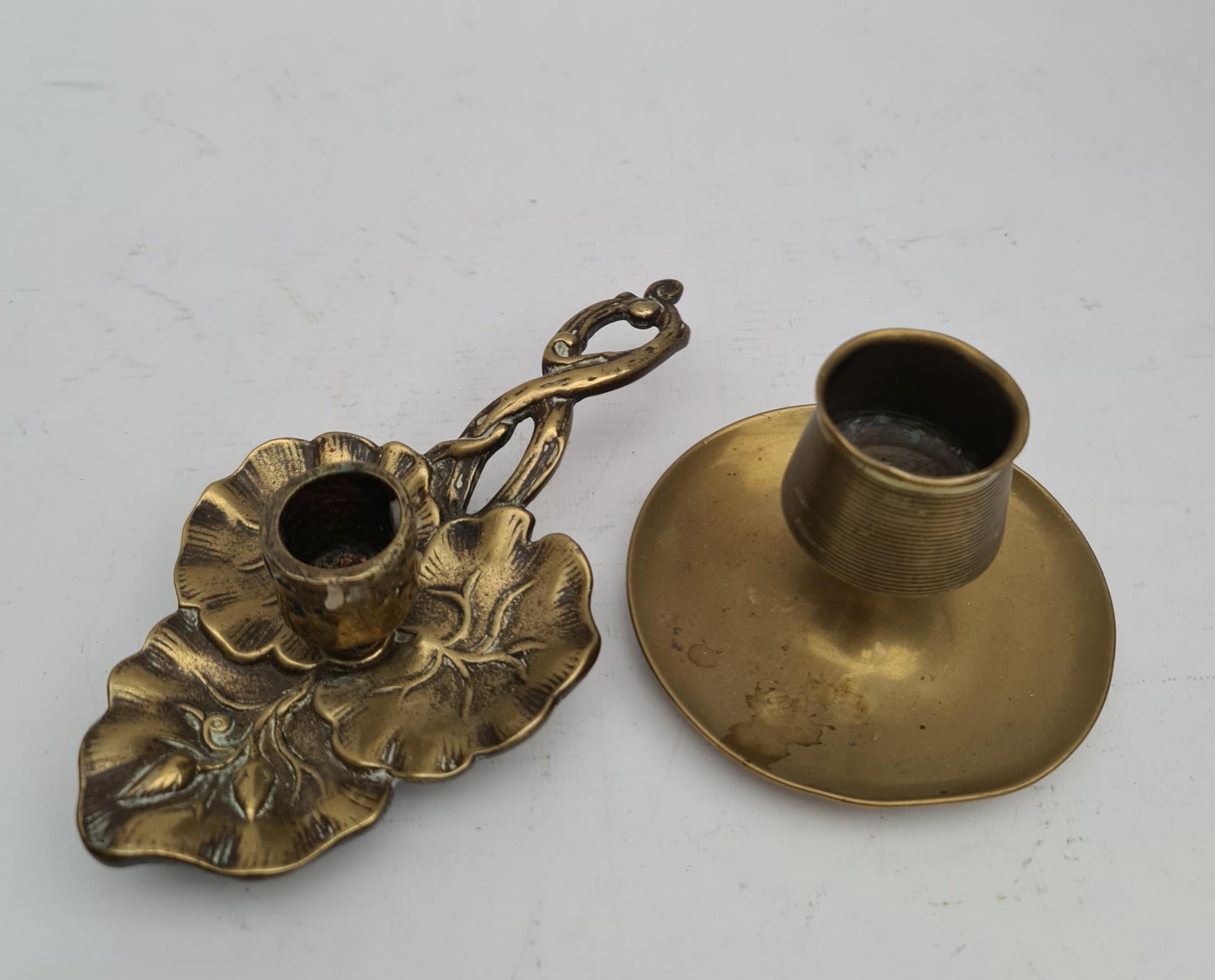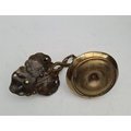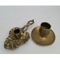 Antique Brass Match Strike and Candlestick in the Shape of a Vine Leaf. The match strike measures 7.5cm tall by 10cm wide and the candlestick measures 18cm long by 10cm wide and 6cm tall. Shipping is available. Please ask for a quote before bidding. Where possible we combine shipping costs. Remember, if you are the highest bidder above reserve on this Lot you have bought the item and are legally responsible for the item. Viewing is recommended in either person or via video link. Contact us to arrange.