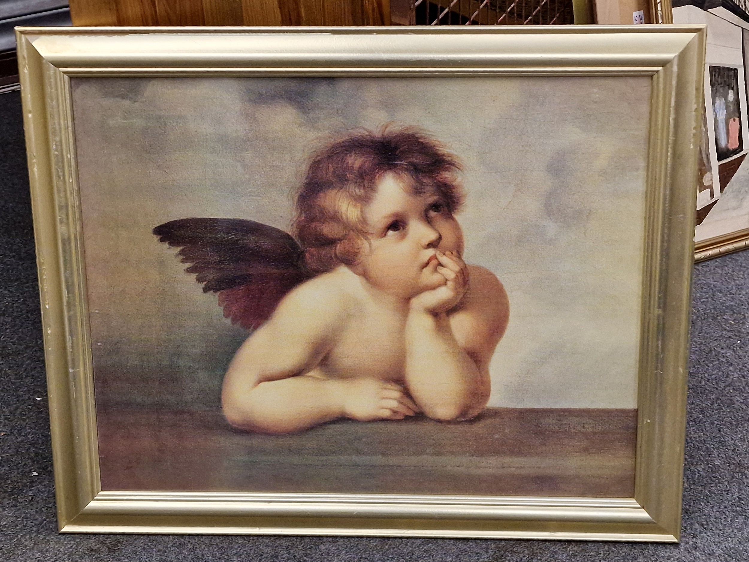 82 x 67 cm large framed cherub print after original painting by RAPHAEL