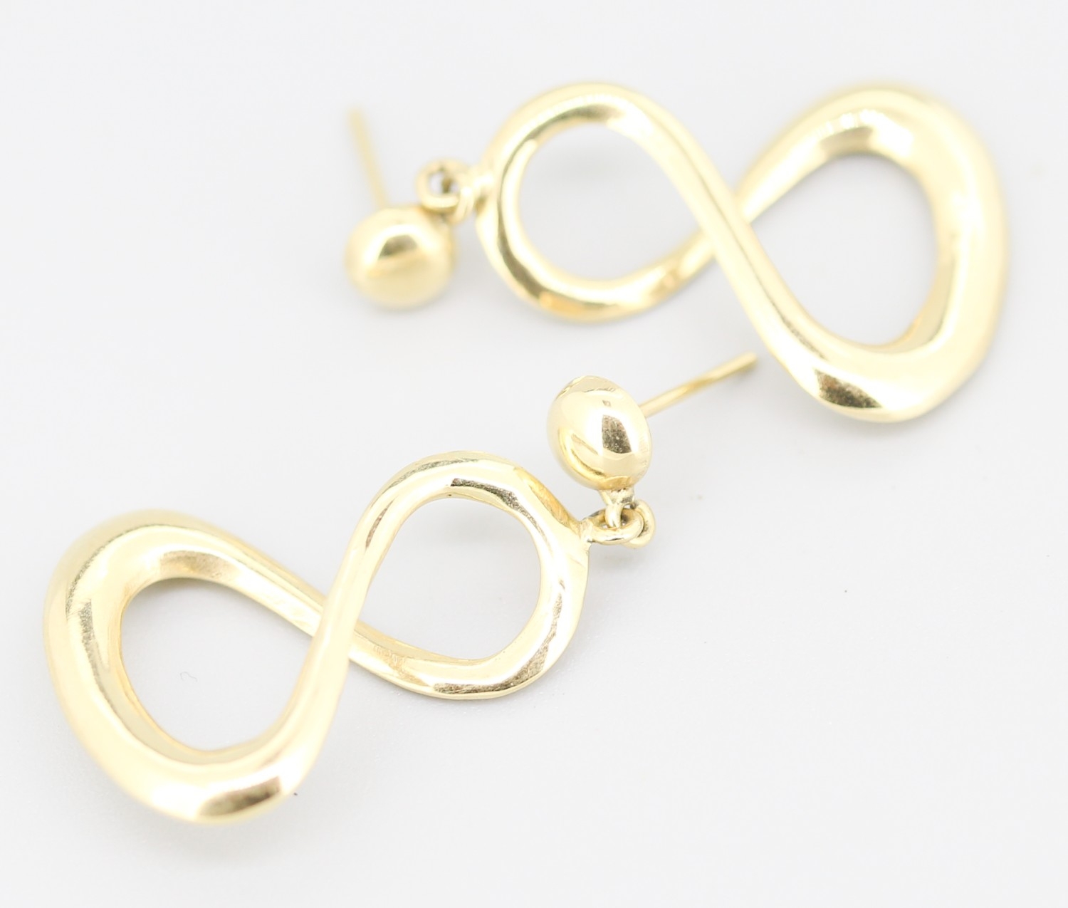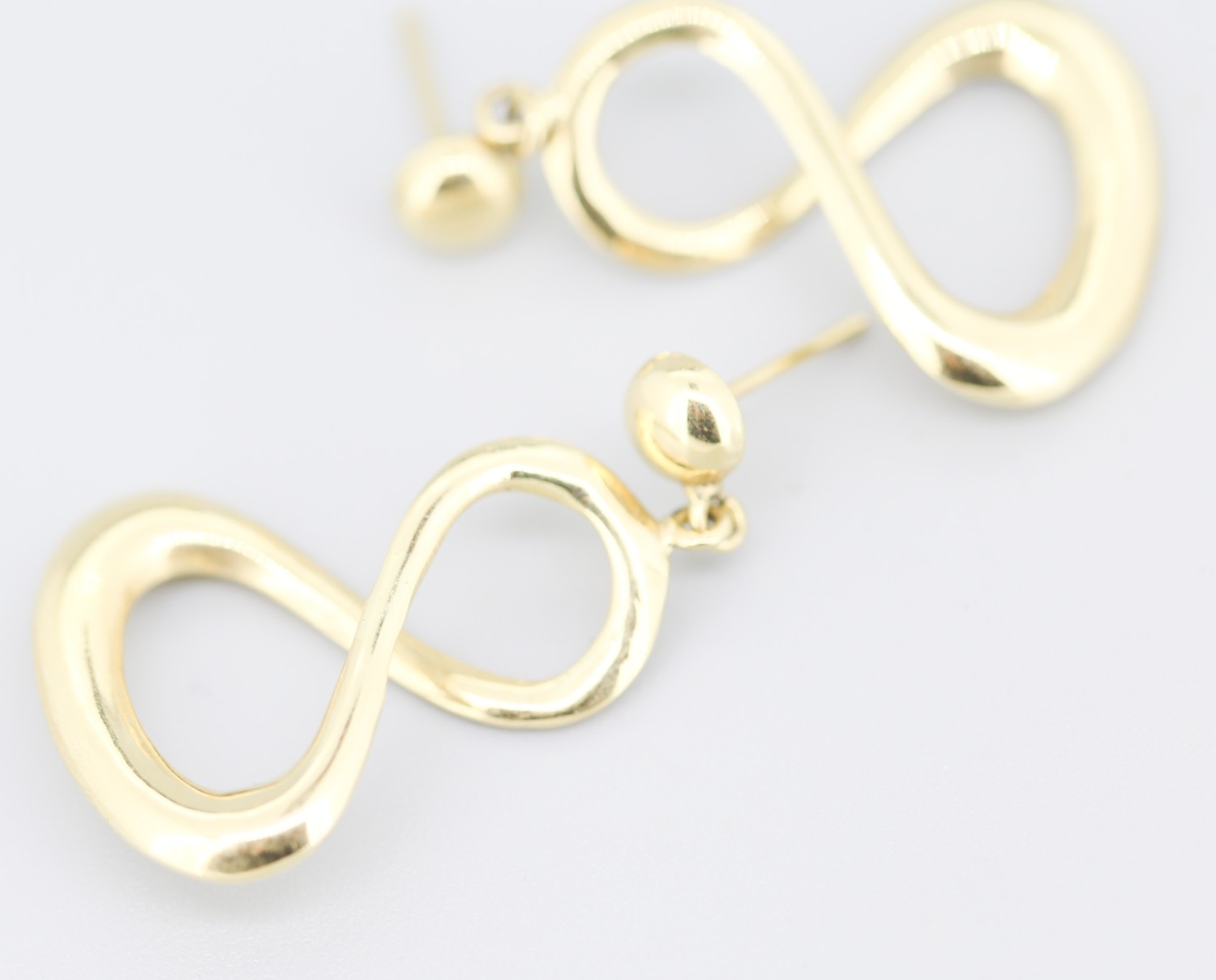 Pair of 9 Carat Yellow Gold Infinity Hoop Drop Earrings 3cm Drop