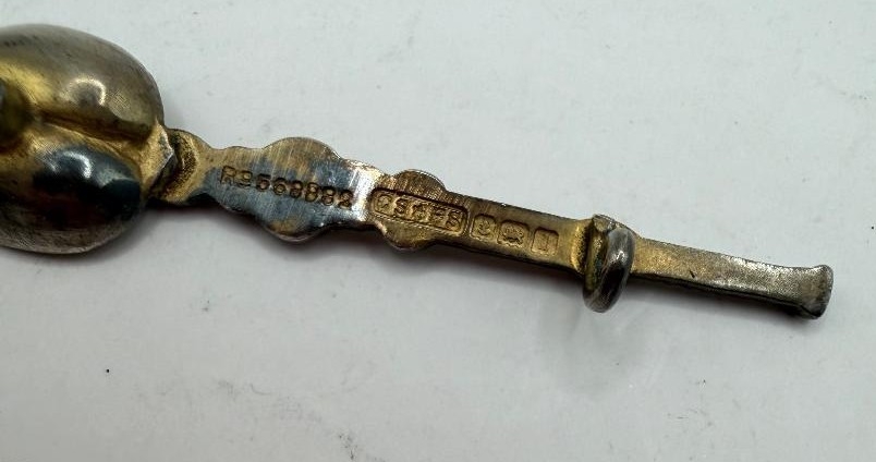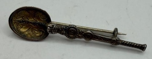 JEWELLERY : Small SILVER Anointing spoon brooch for Coronation 1952 (2.96g) gilding rubbing off