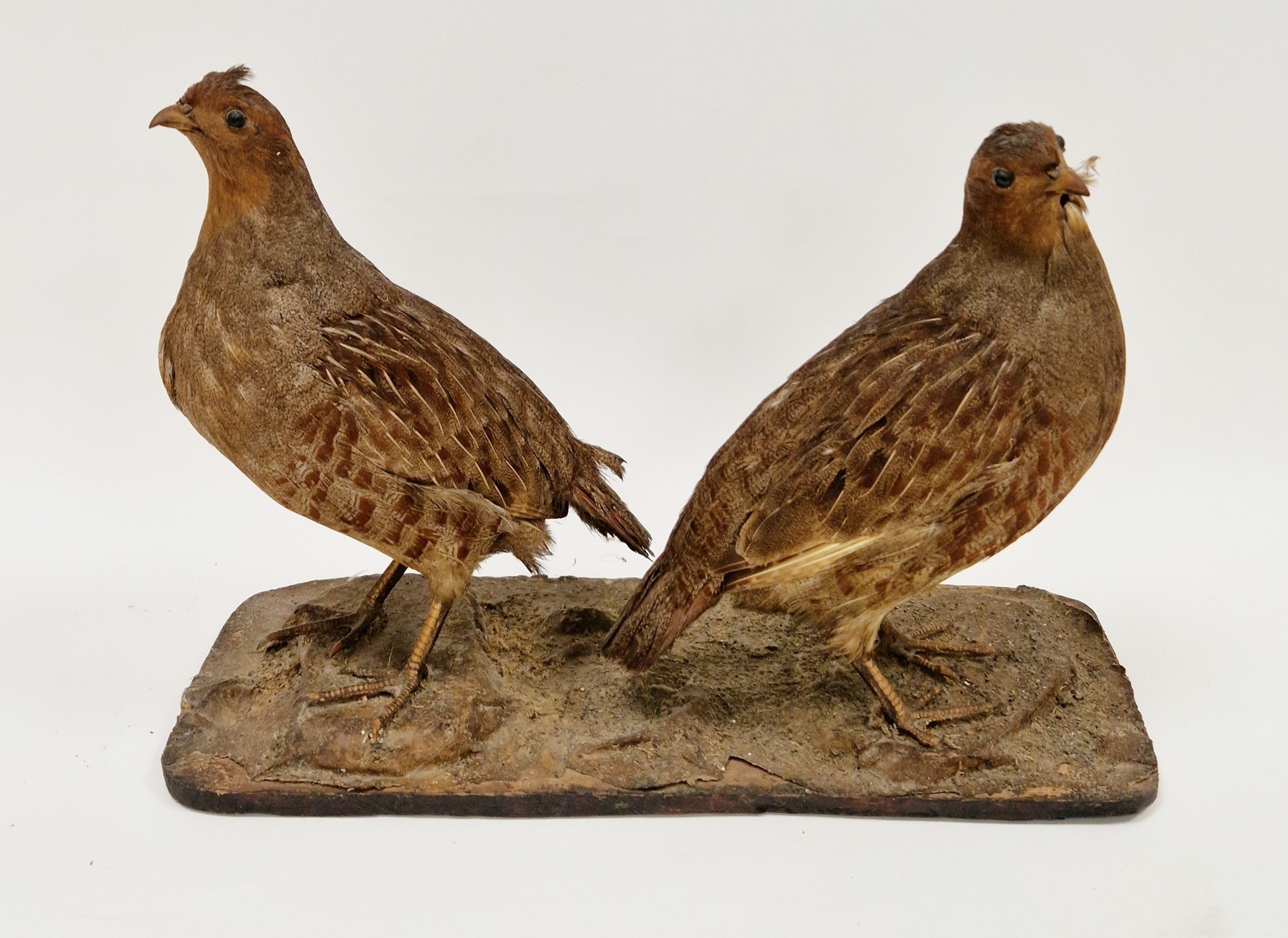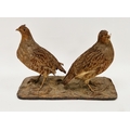 Pair of taxidermy red grouse mounted together on a naturalistic base, uncased, 27cm high