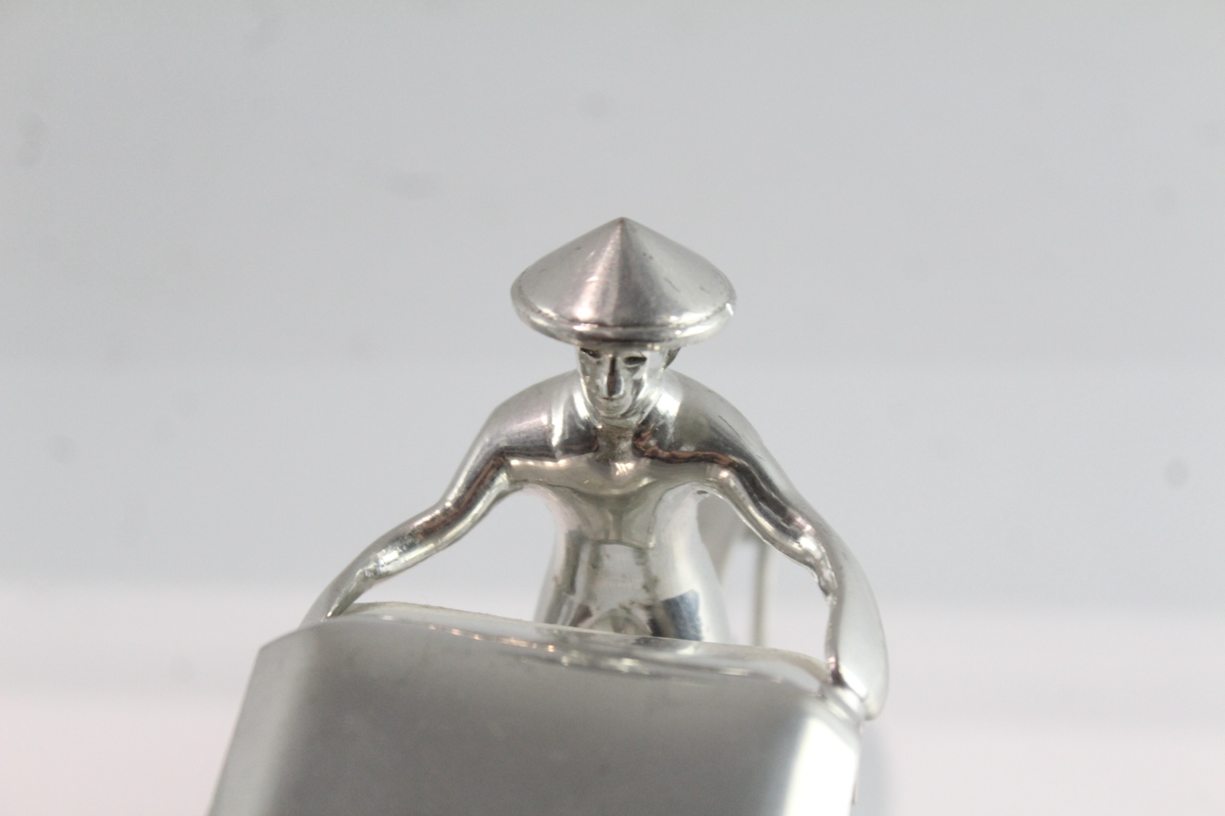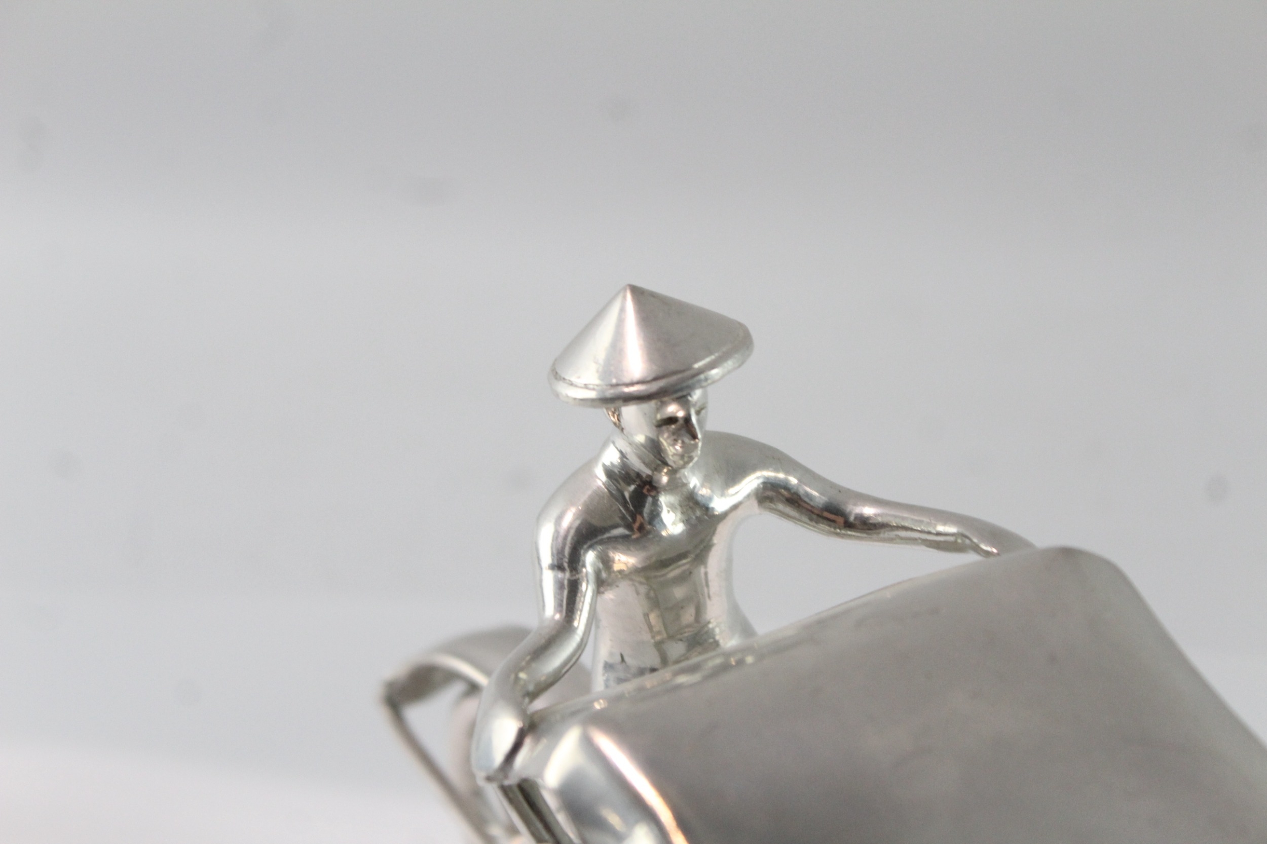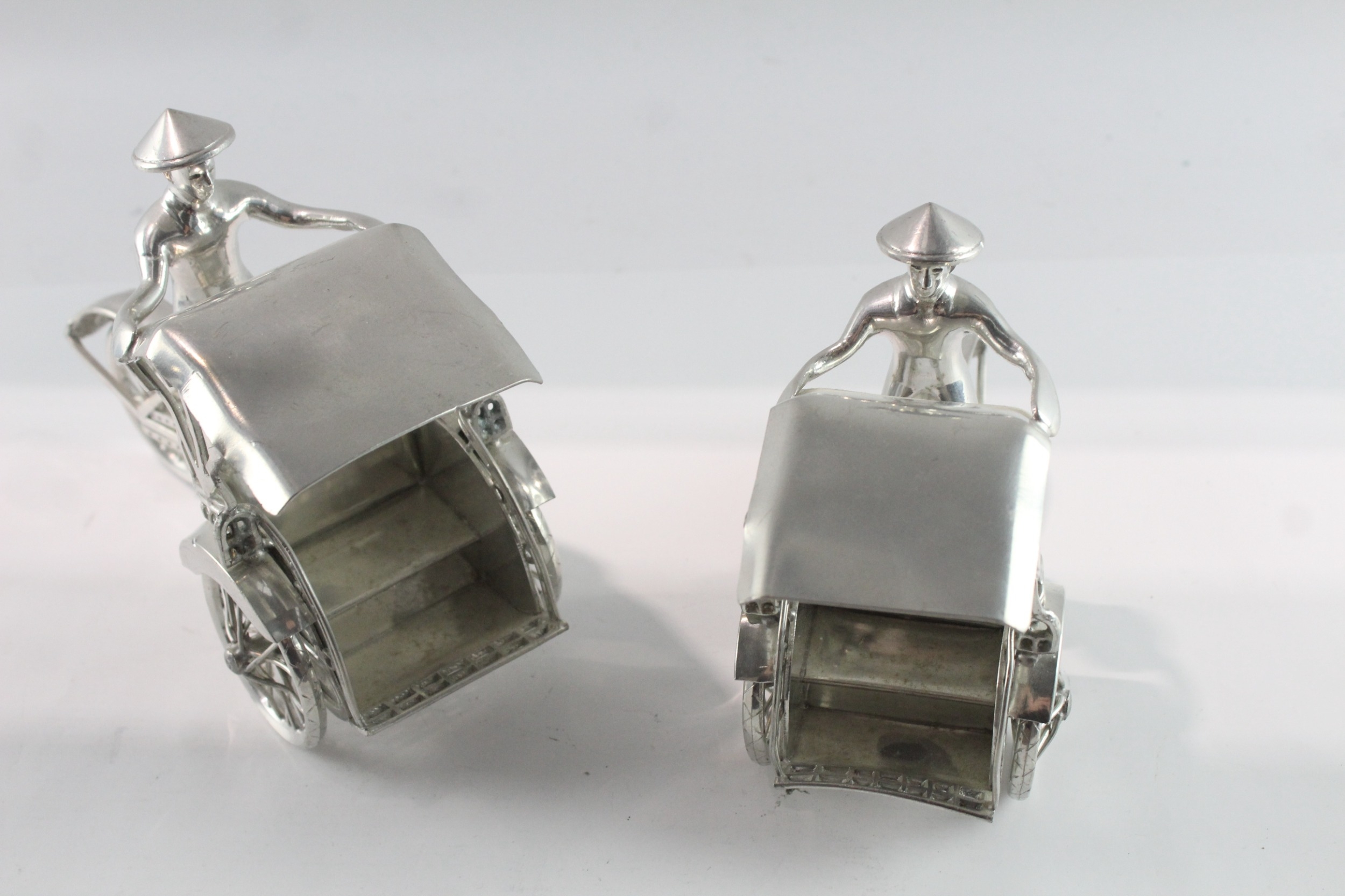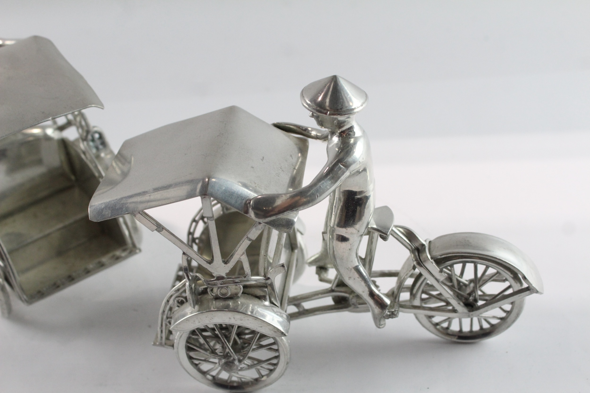 Silver Plate Cycle Rickshaw Ornament Pair Asian Vintage 1450g