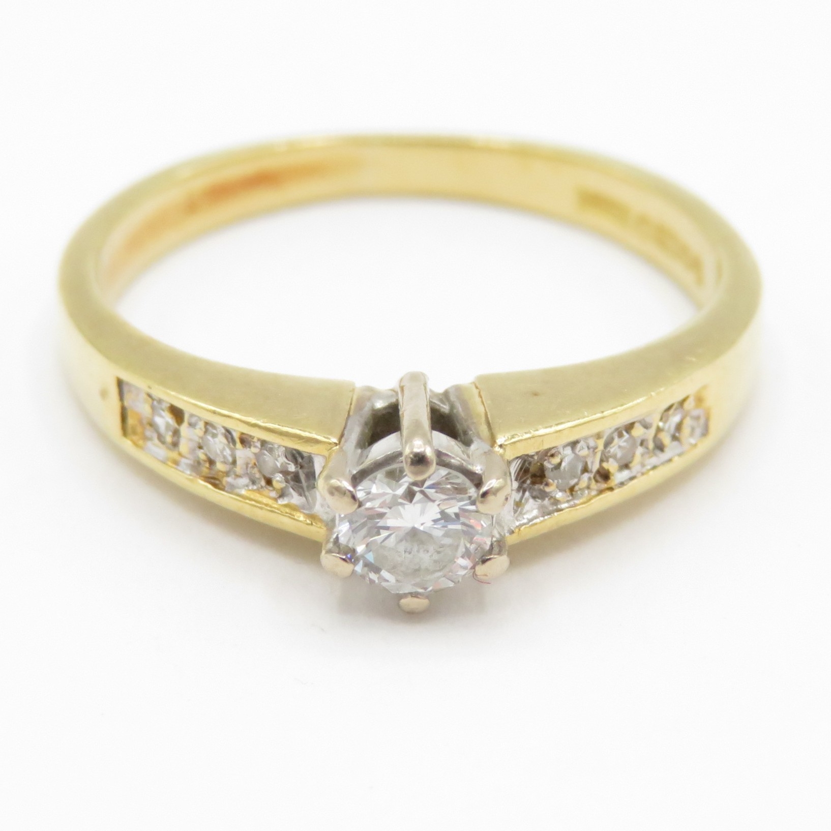 18ct Gold Diamond Solitaire with Diamond Set Shoulders, Hallmarked London (2.9g) Size K