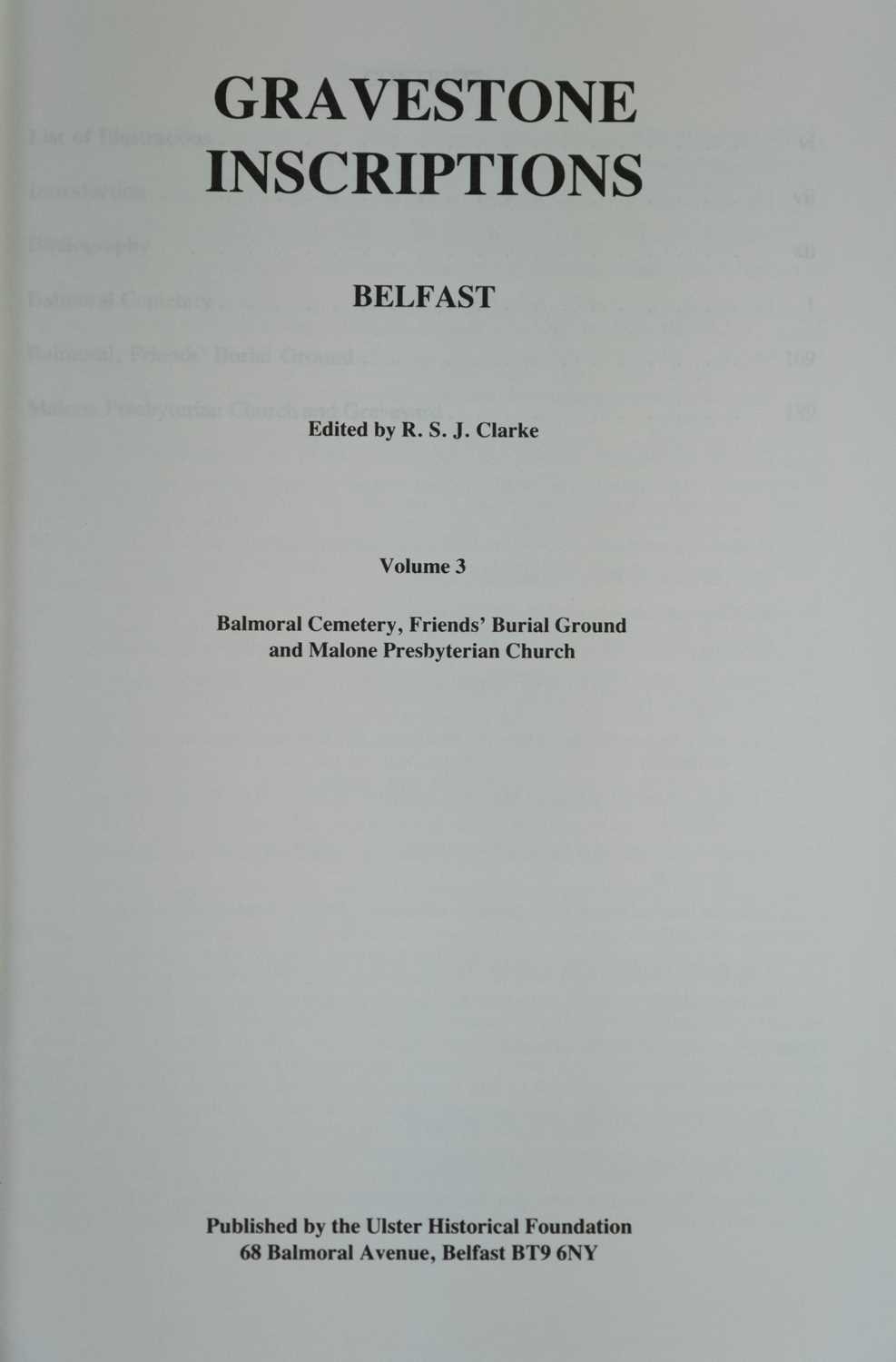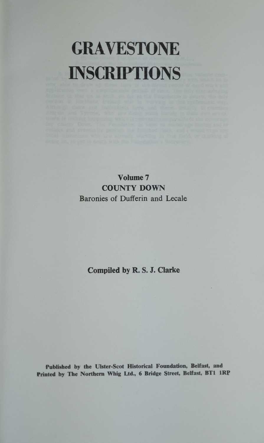 (Gravestones) Twenty works Seven volumes of R. S. J. Clarke, 'Gravestone Inscriptions', Ulster-Scot Historical Society, Belfast 1966-72; Christina Hole, 'Witchcraft in England', B. T. Batsford Ltd, London 1977; together with more works on Christianity, all vg. (20)