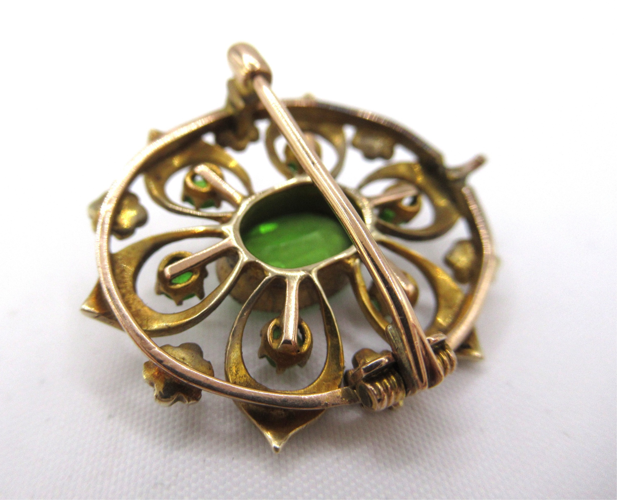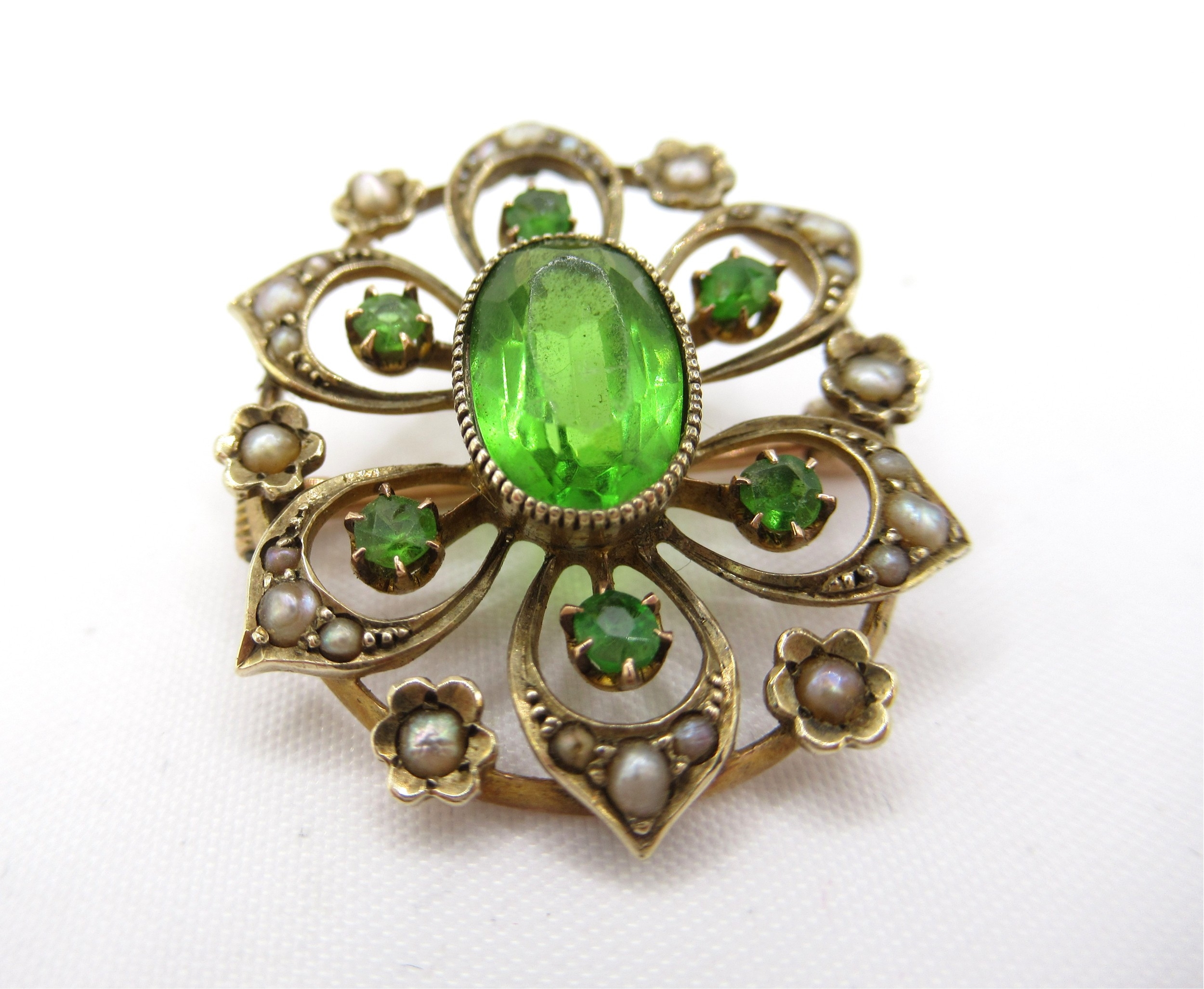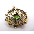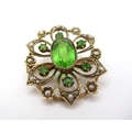 Oval gold peridot and split pearl brooch, 4.2g