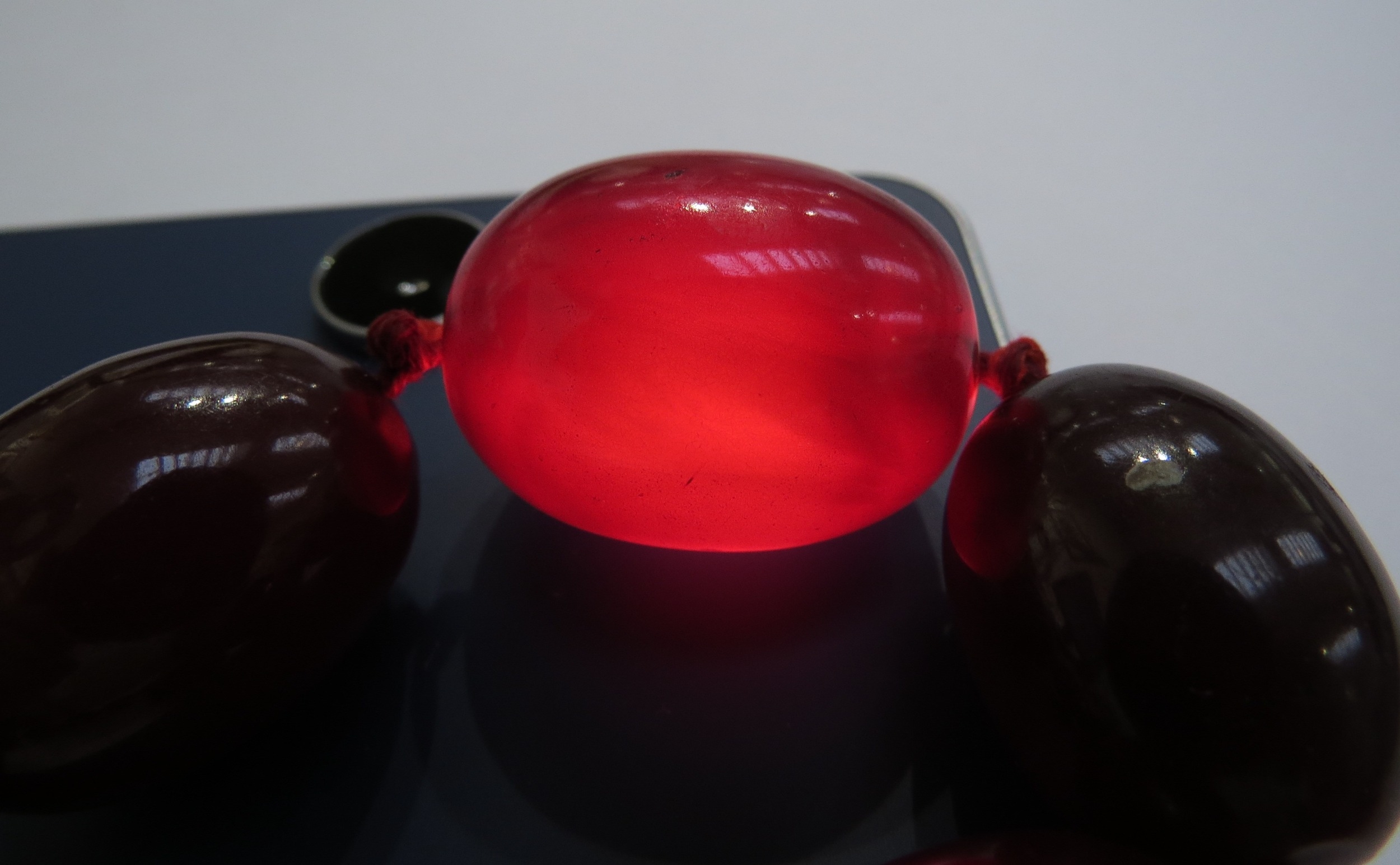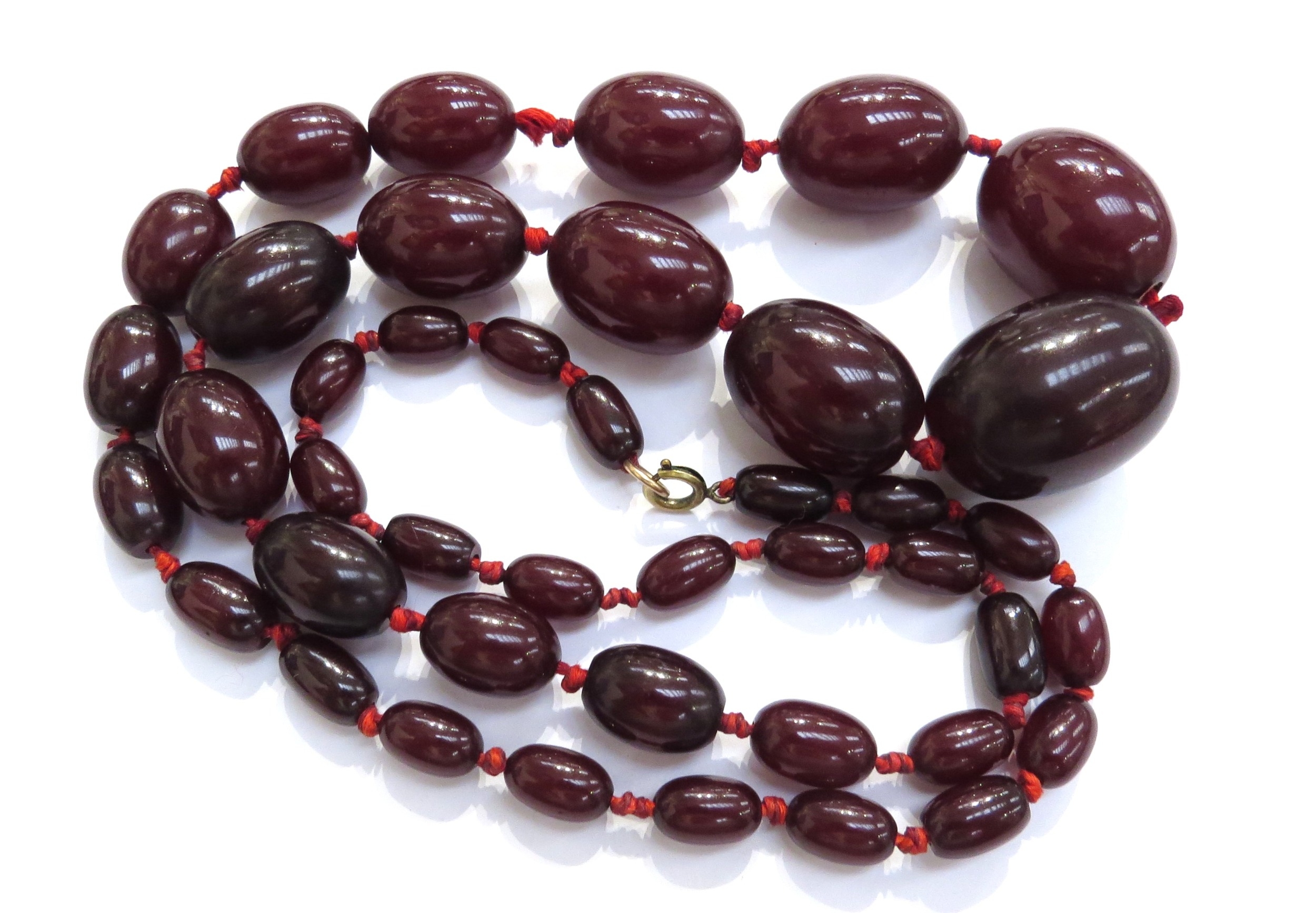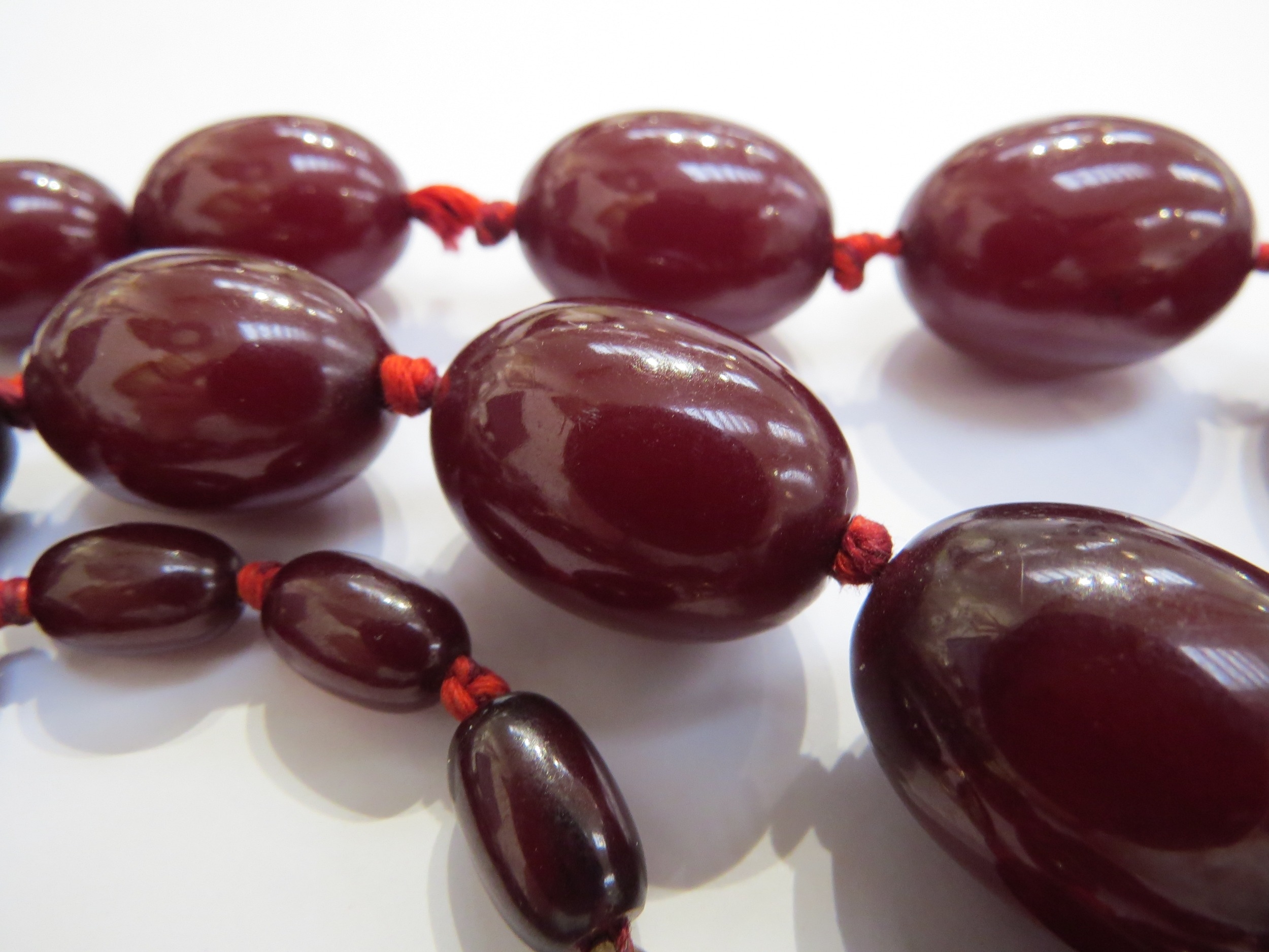 A cherry amber/Bakelite graduated bead necklace, 80cm long, 84.7g