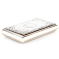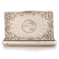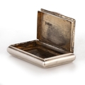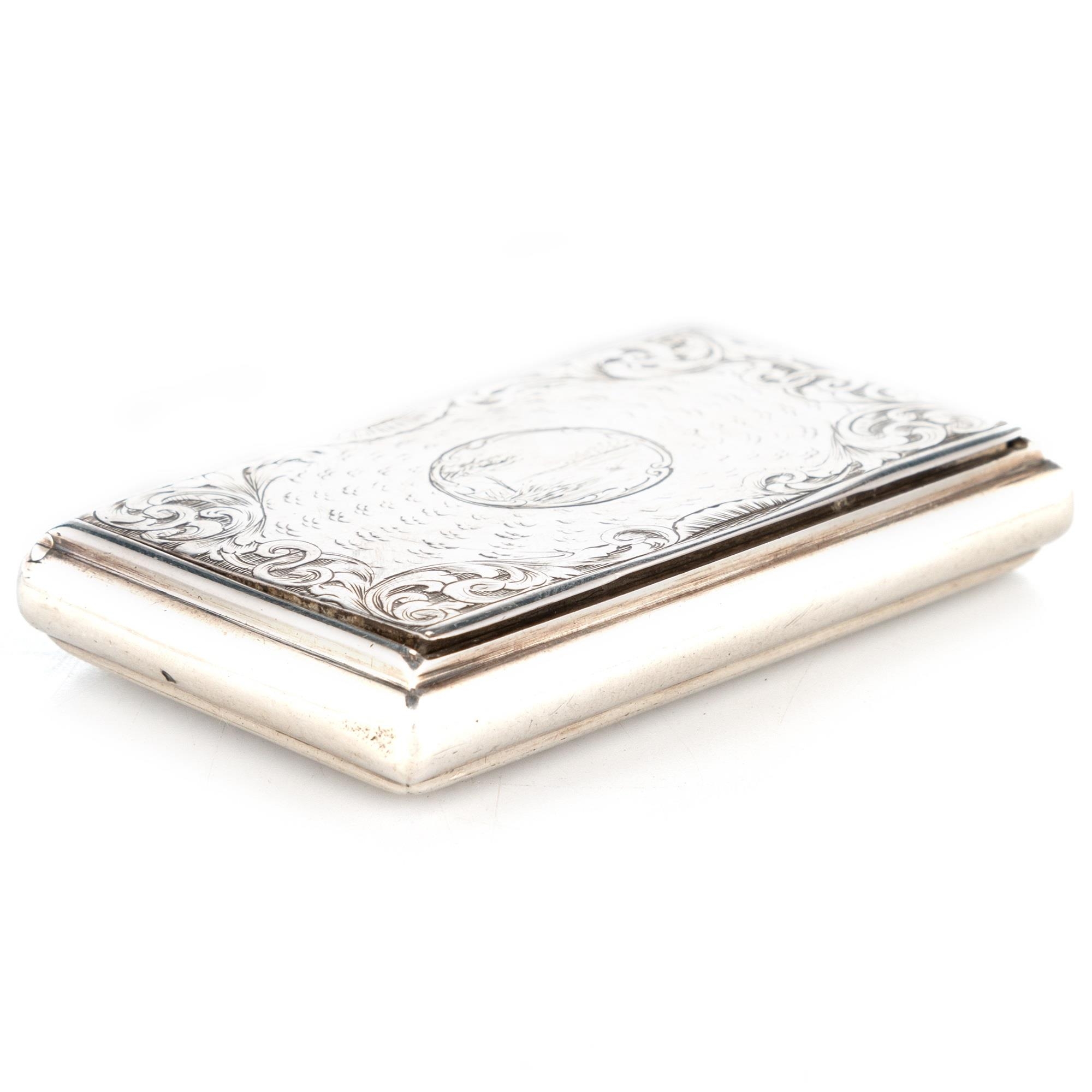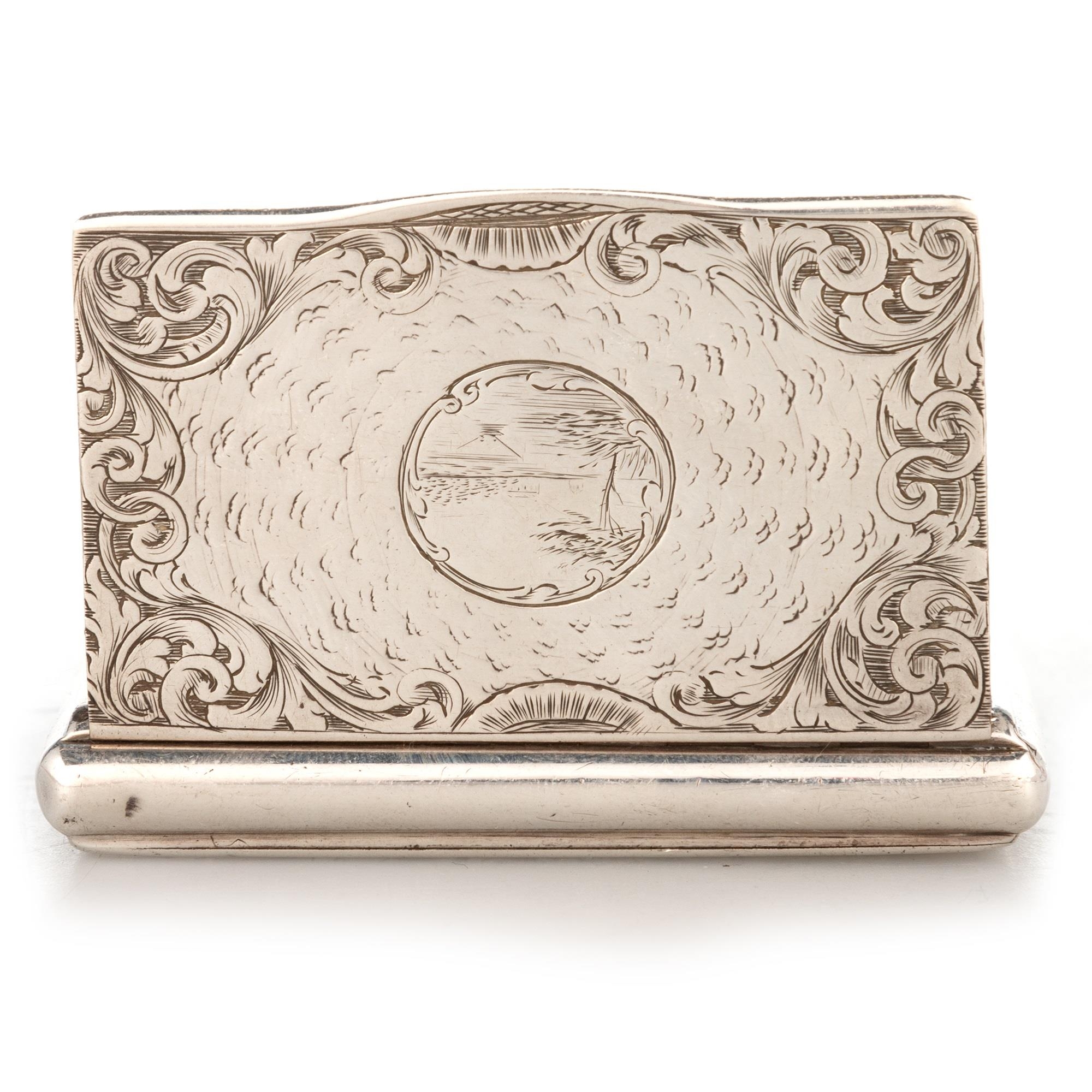 by Edward Smith, Birmingham 1843, rectangular, engraved with scrolling foliage and a bay scene, gilt interior. 6.6cm wide, 1.7 troy ounces