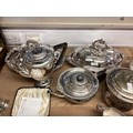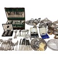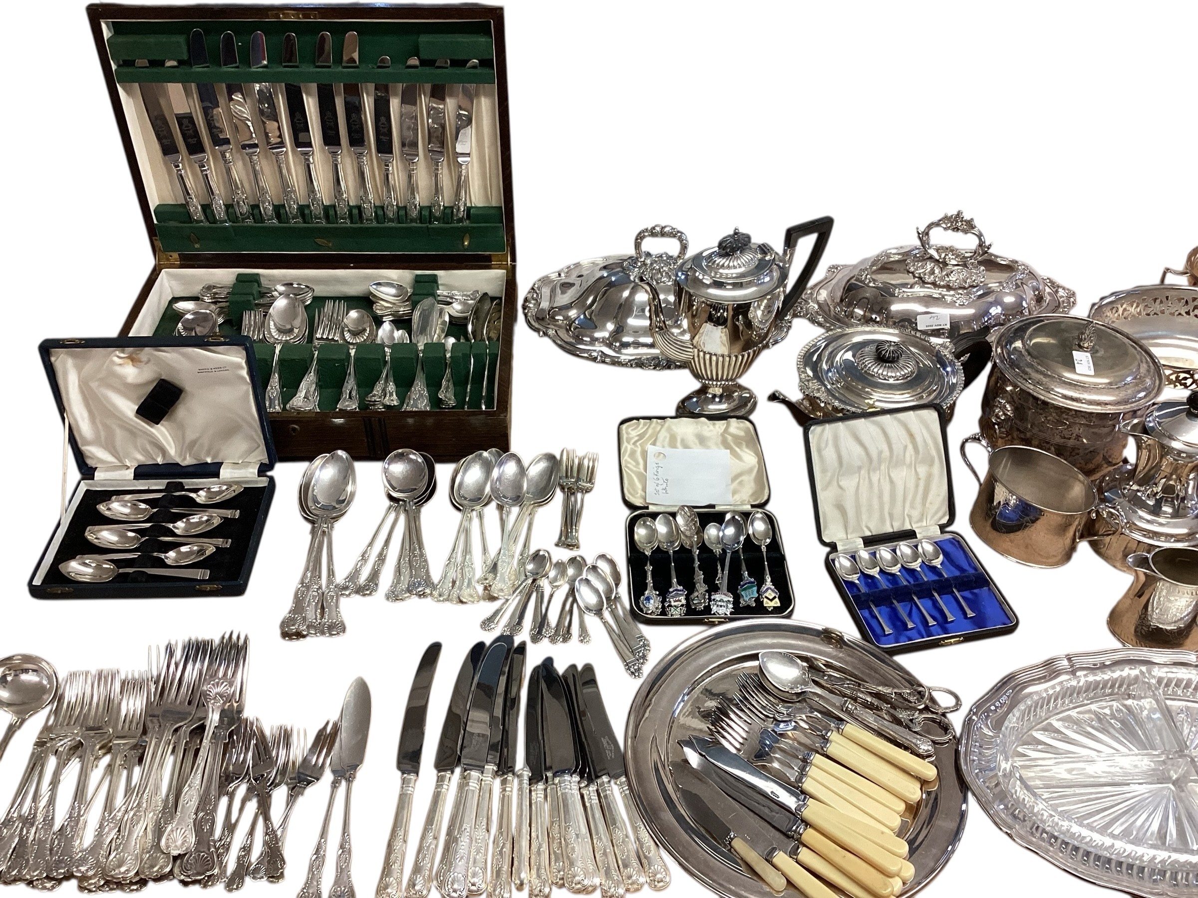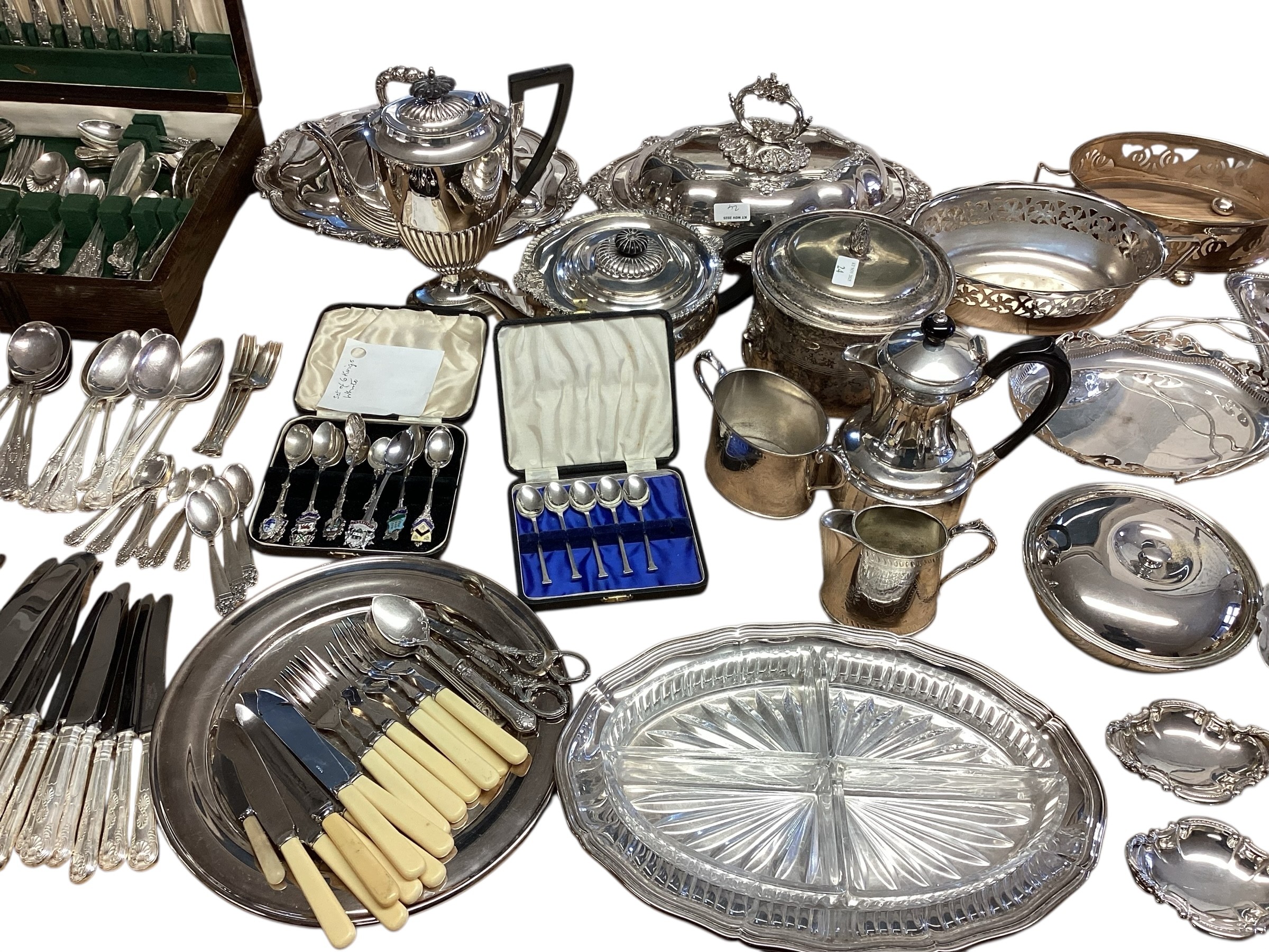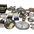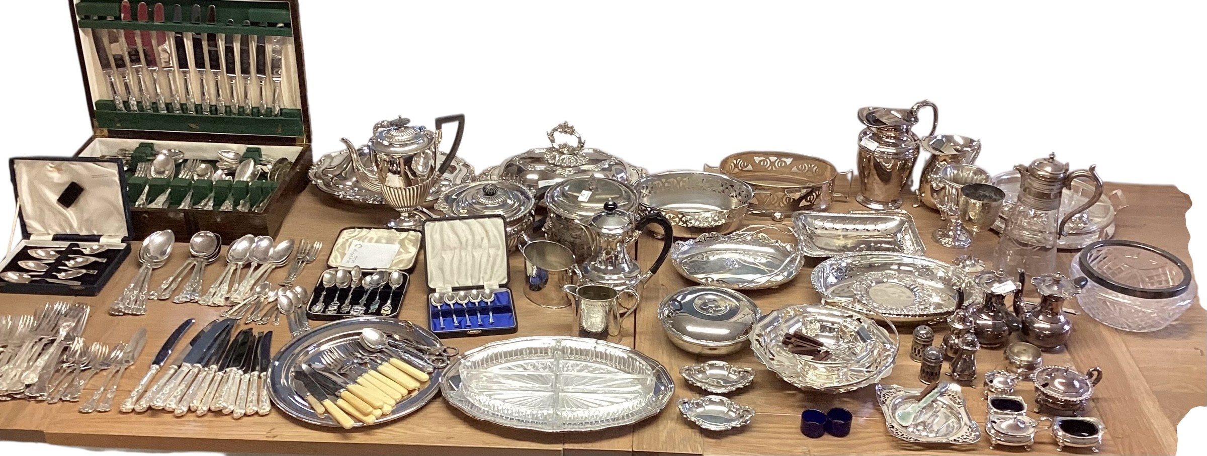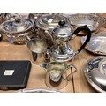 Large collection of silver plated wears to include, water jugs, lidded dishes boxed cutlery etc