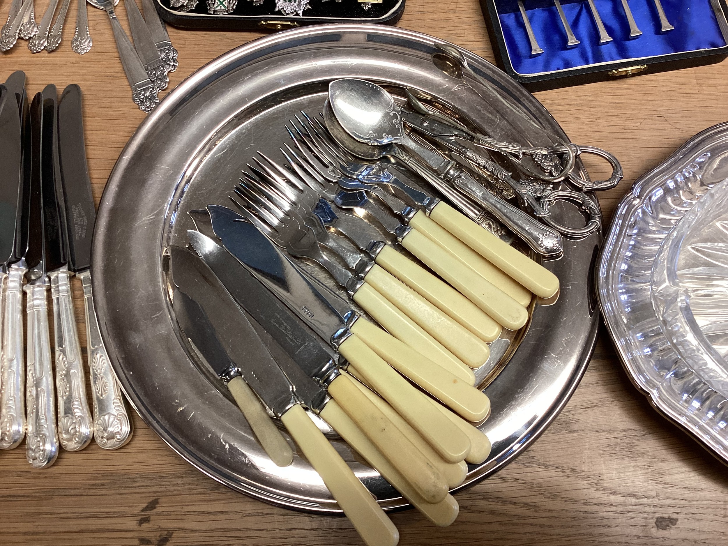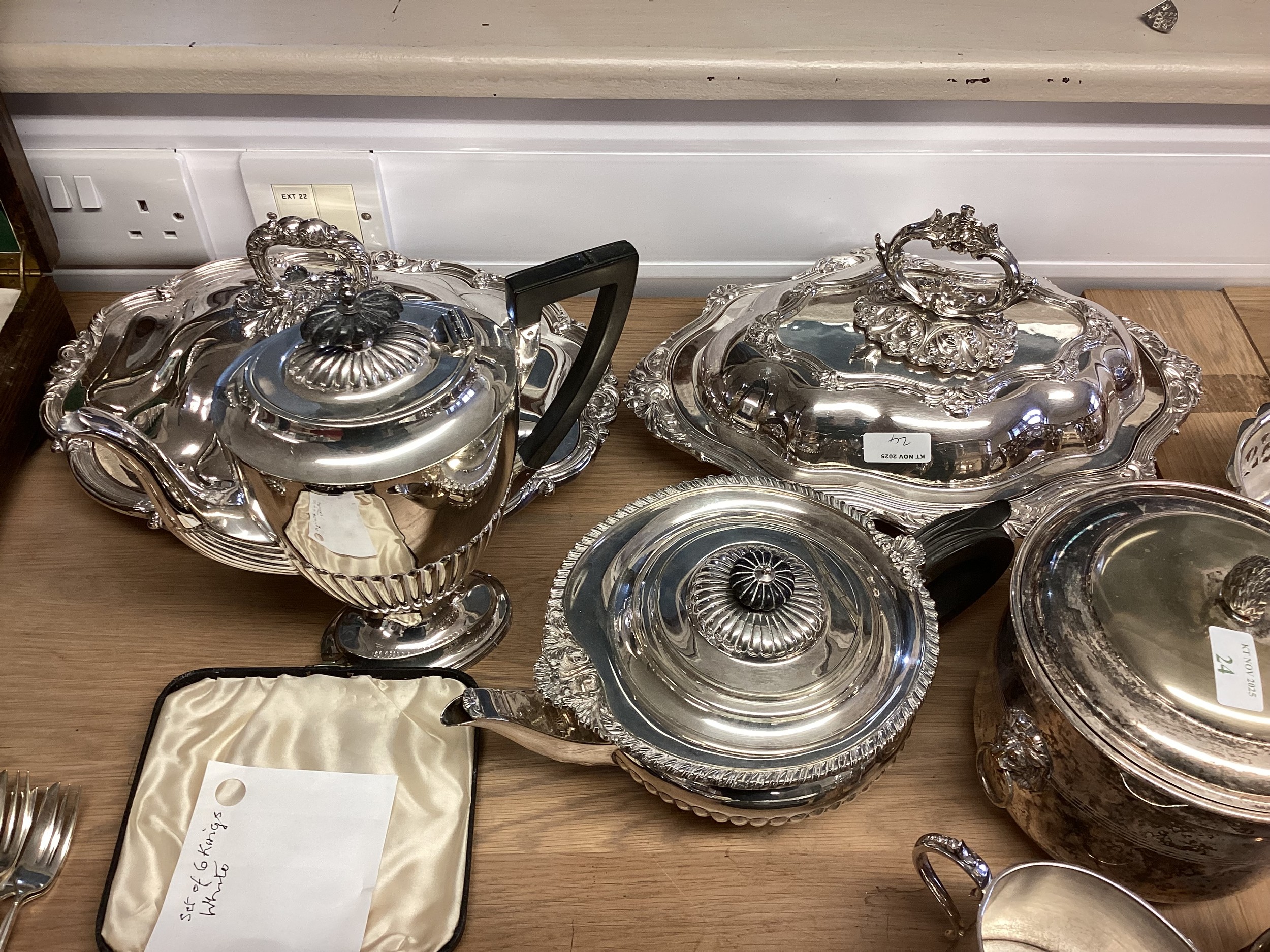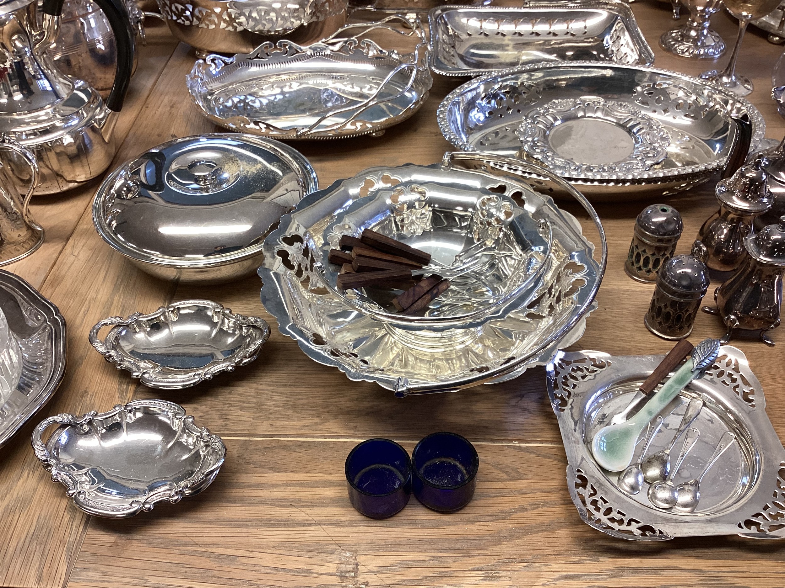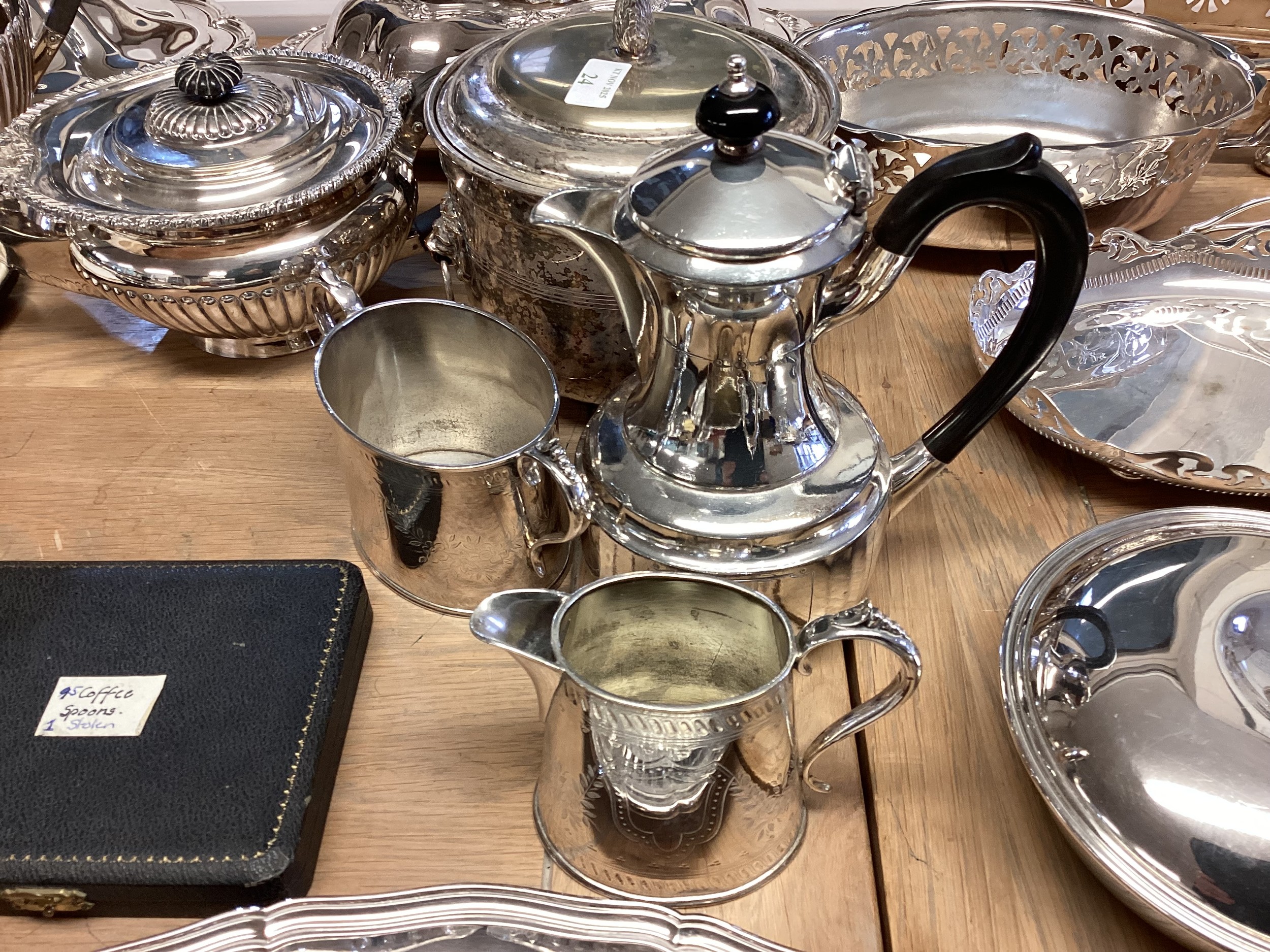 Large collection of silver plated wears to include, water jugs, lidded dishes boxed cutlery etc