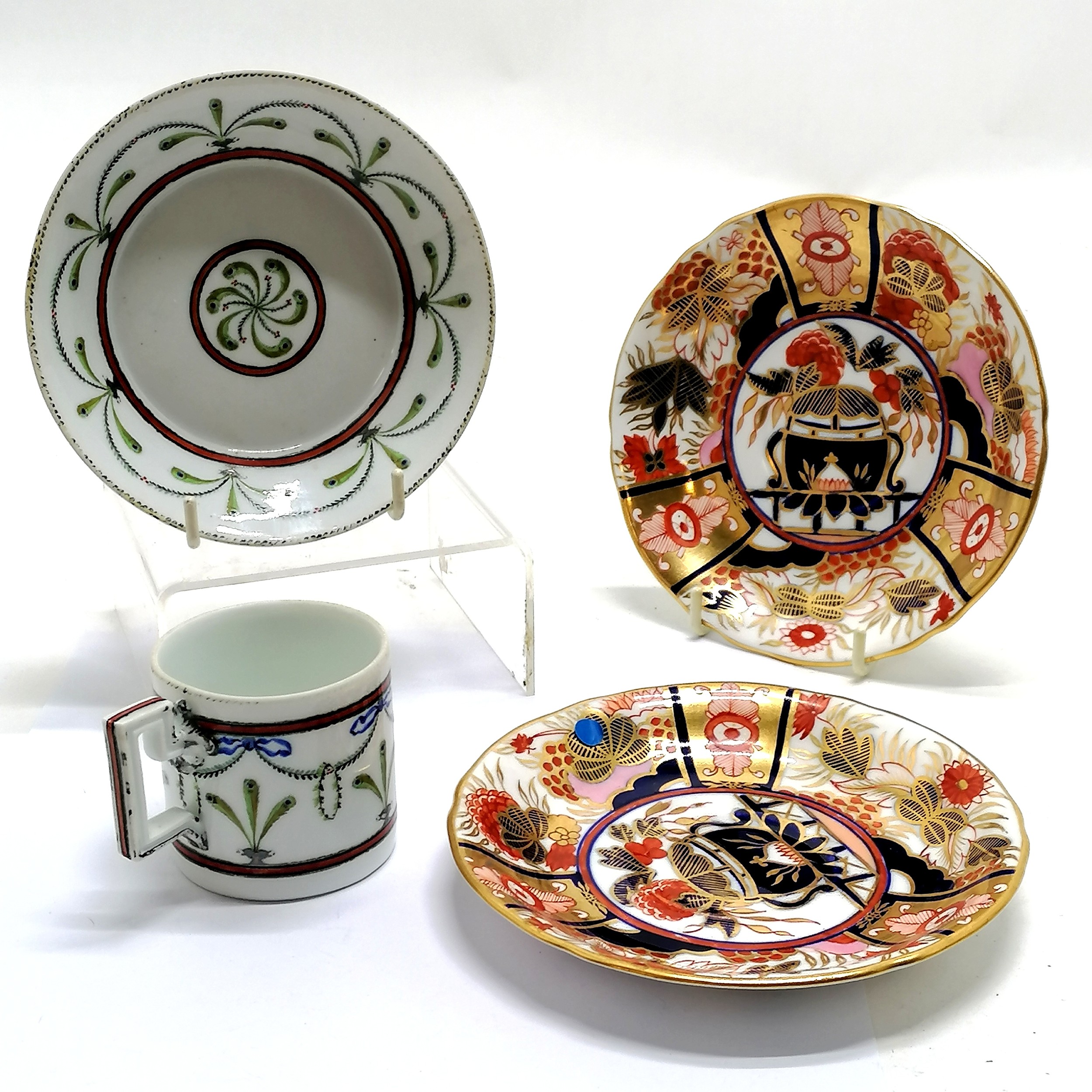 Antique continental coffee can & saucer (12cm) with crossed swords mark t/w 2 x Royal Crown Derby saucers - SOLD IN AID OF MENTORING PLUS