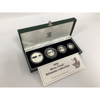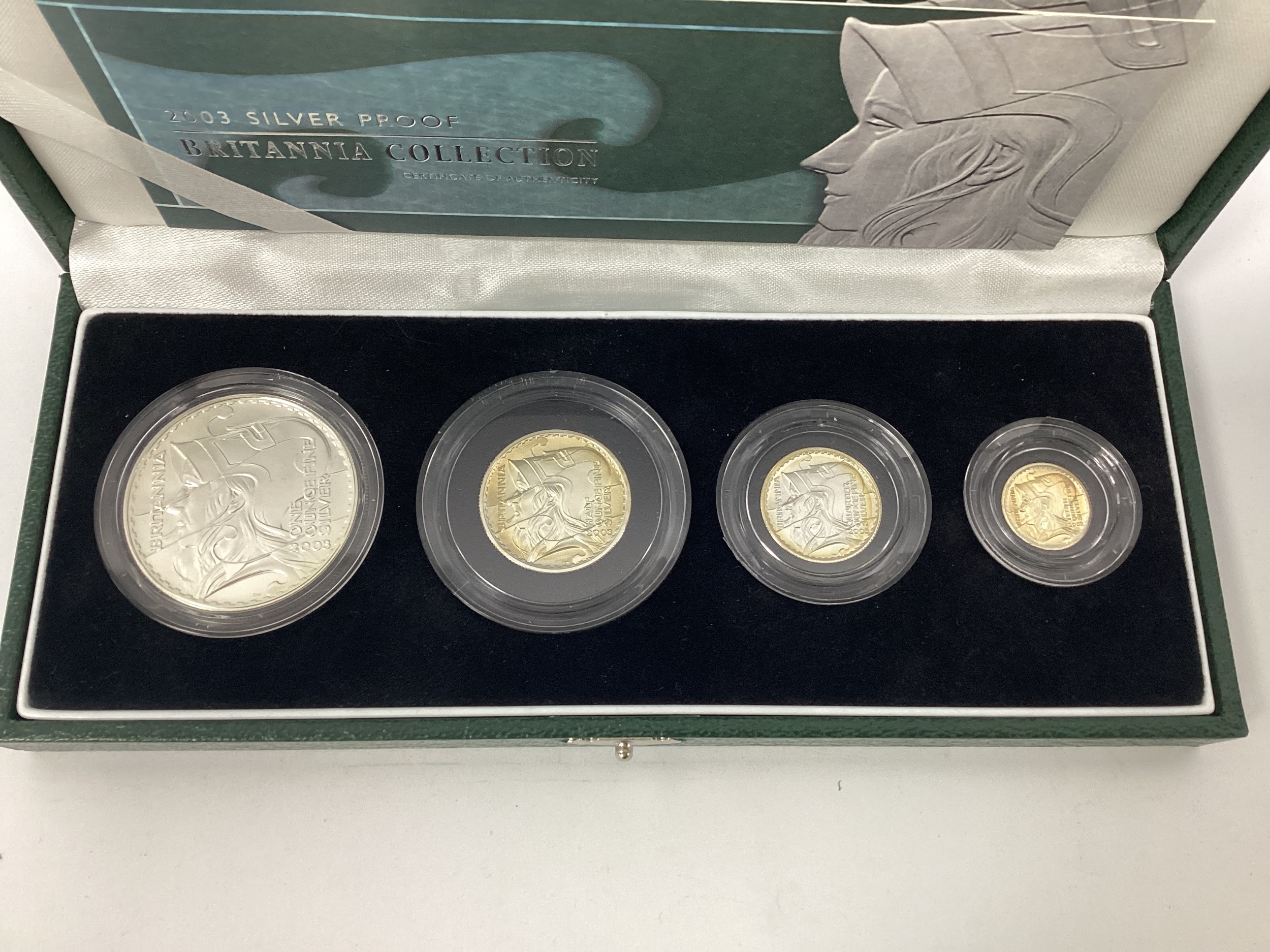 2003 Royal Mint Silver Proof Britannia Four Coin Set, cased with a certificate of authenticity.