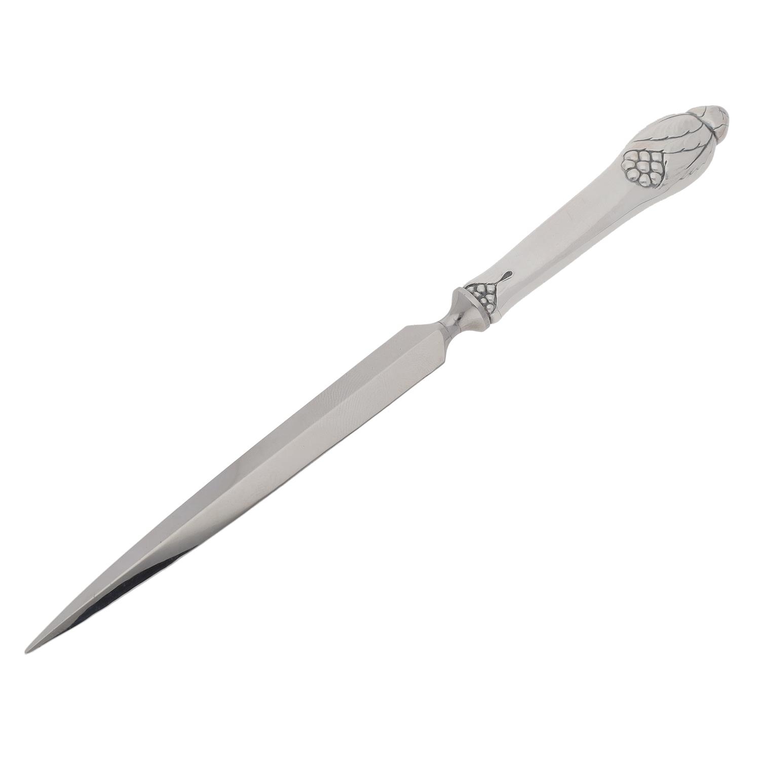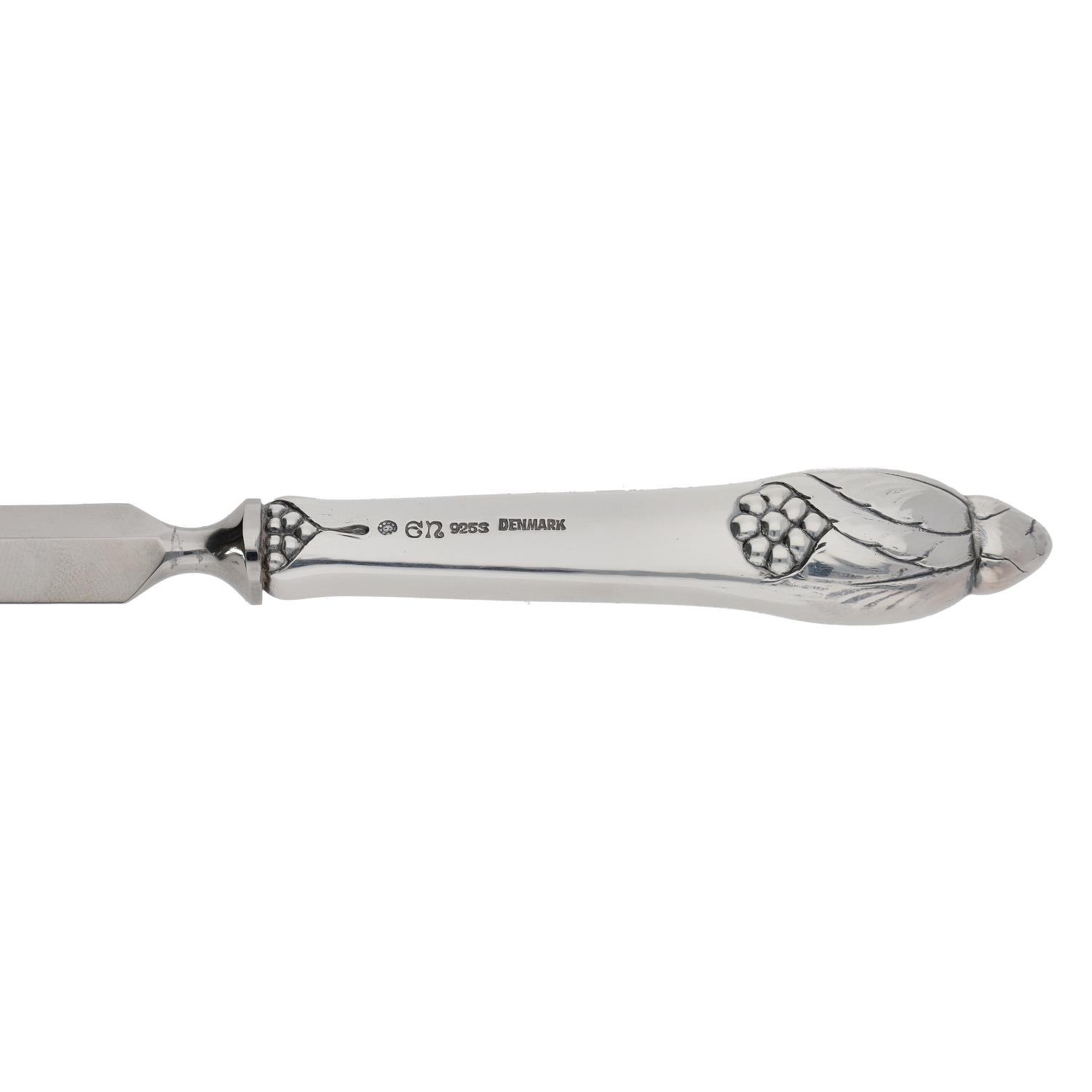 Danish silver handled paper knife, maker Evald Nielsen, with a cast fruiting vine handle, marked Denmark 925S, 8" long