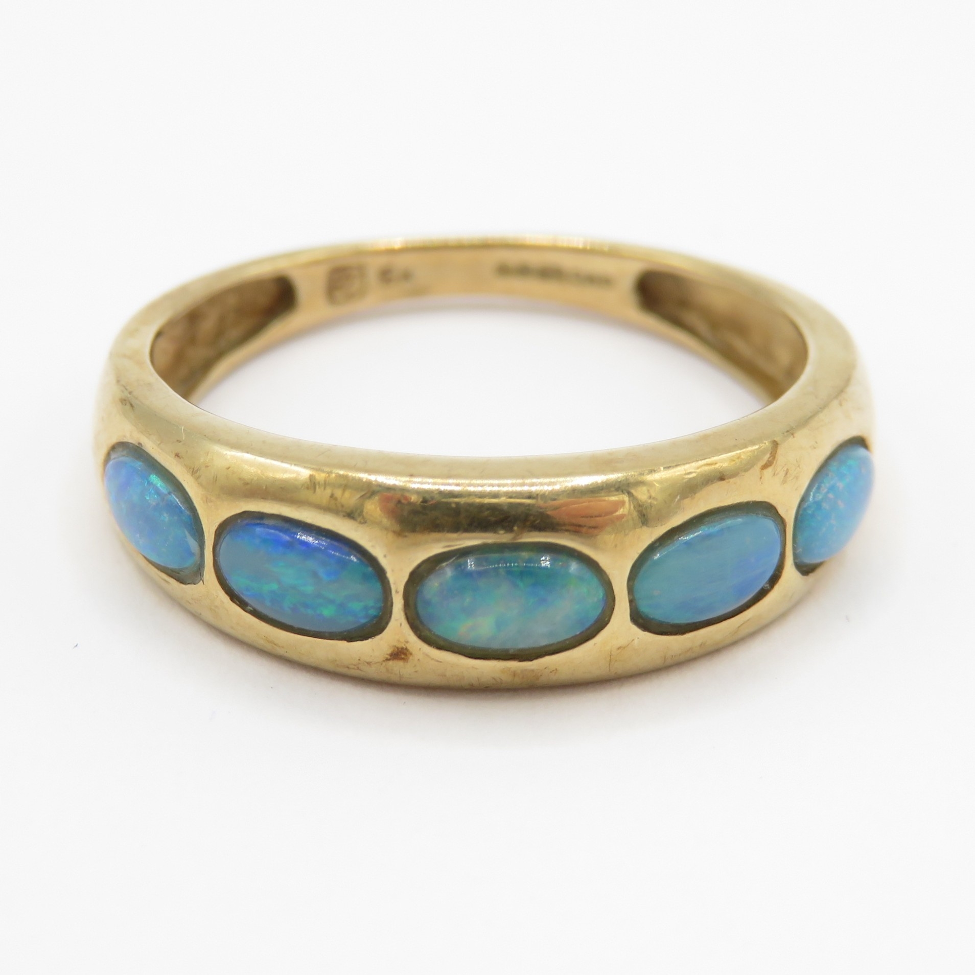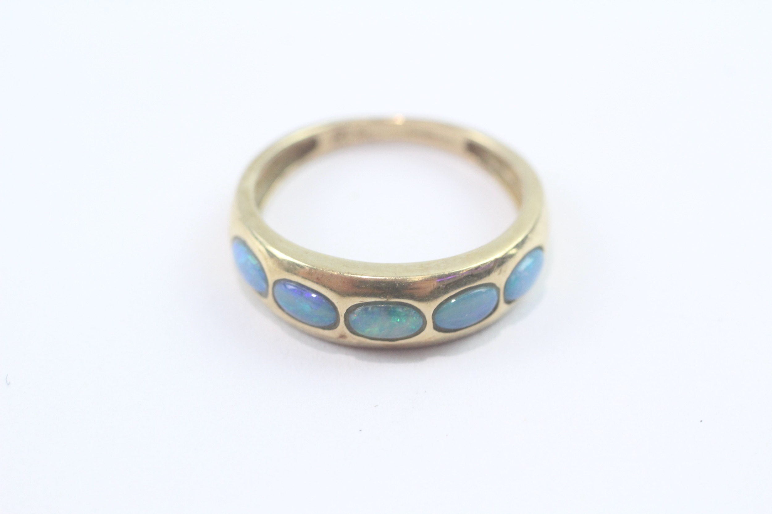 9ct gold opal five-stone ring (2.2g) Size O