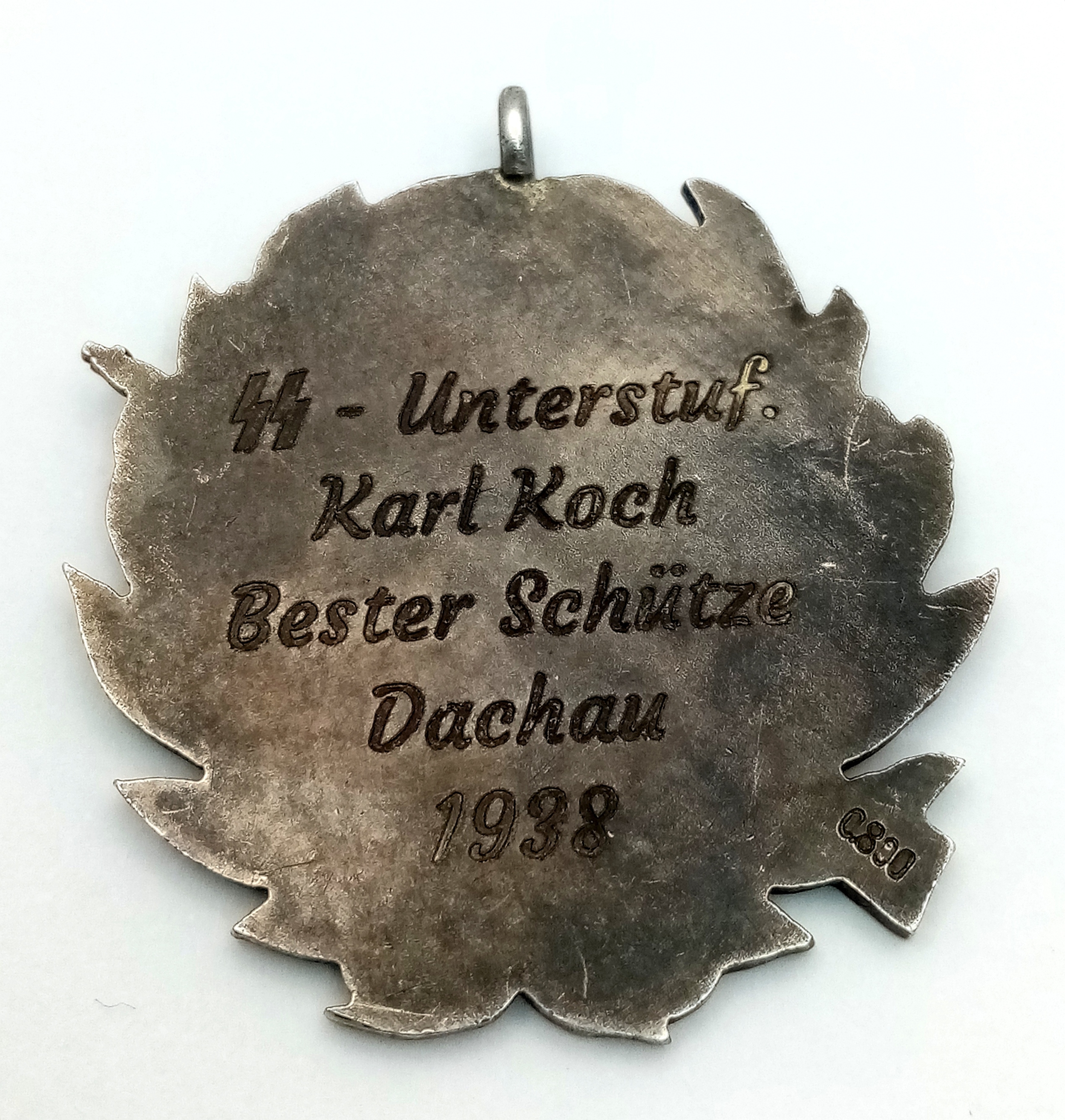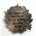 1938 German 800 silver Shooting Medal awarded to an SS Soldier at Dachau Barracks.