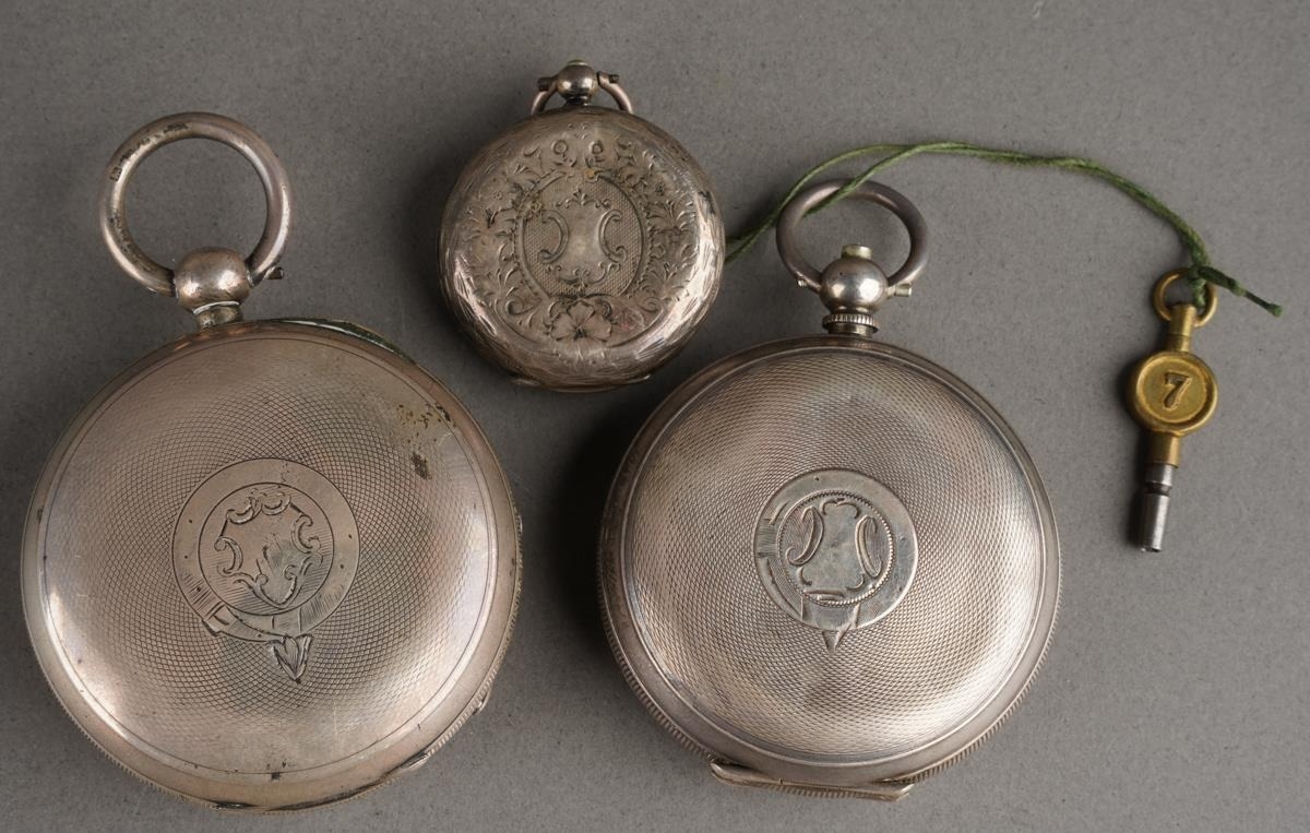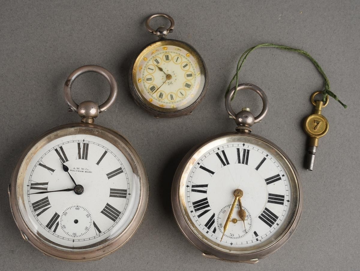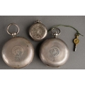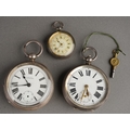 An early 20th Century 935 standard silver cased open face Ladies pocket watch, stamped together with two English early 20th Century 925 silver cased open face pocket watches, both with white enamel dials and Roman numerals., both hallmarked, one London import marks [3] one outer case loose in setting a/f