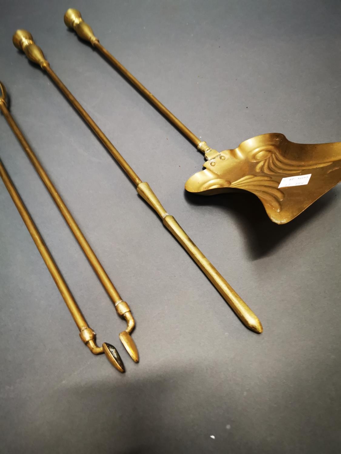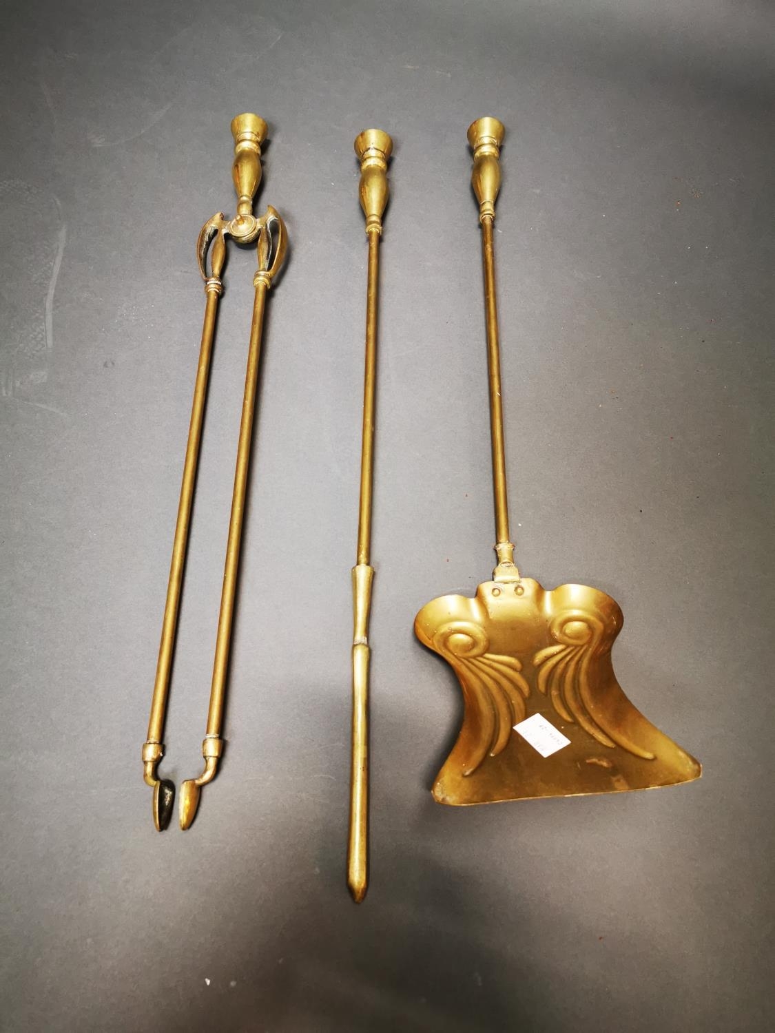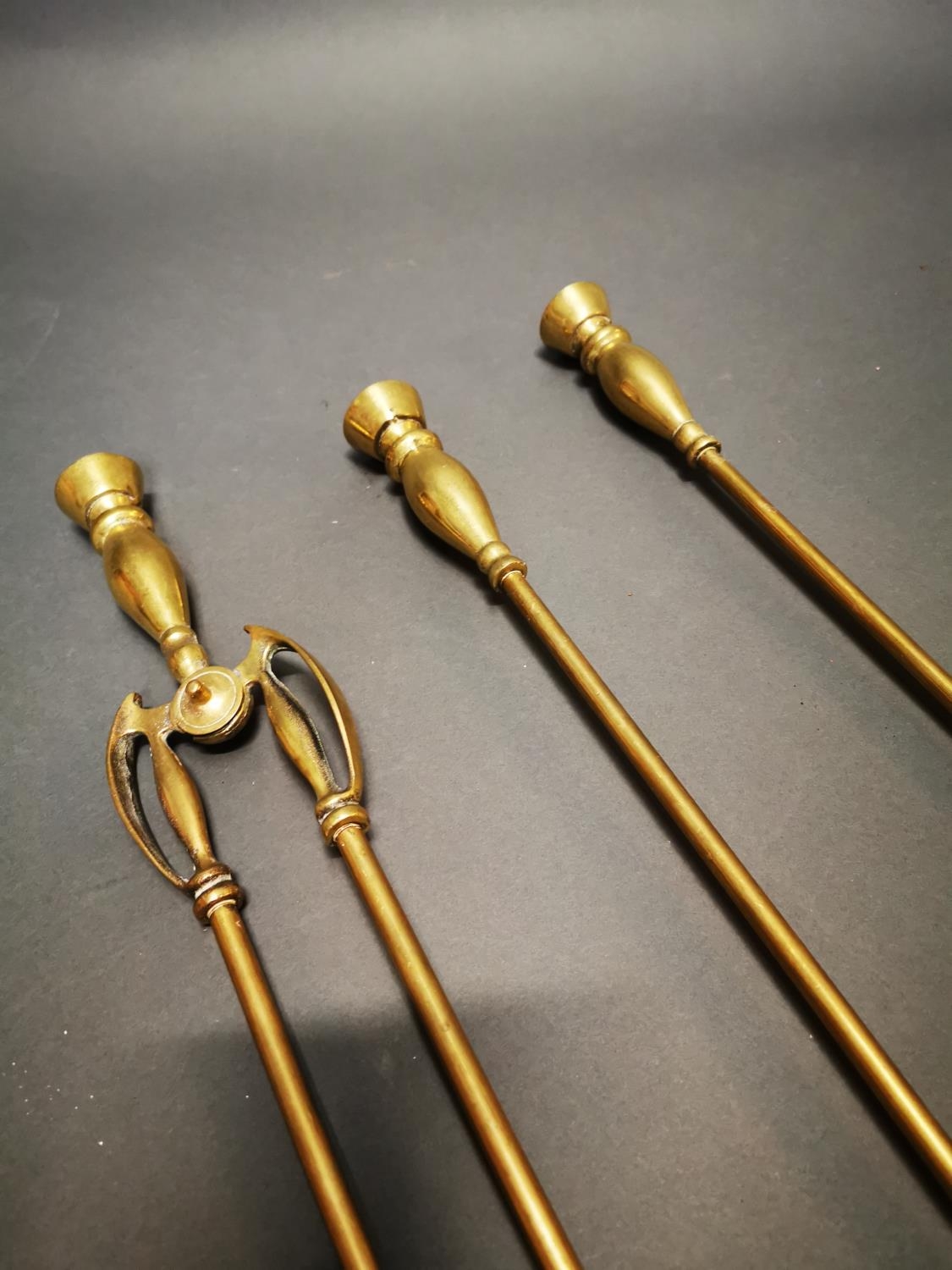 Set of three Victorian brass fire irons {70 cm H}.