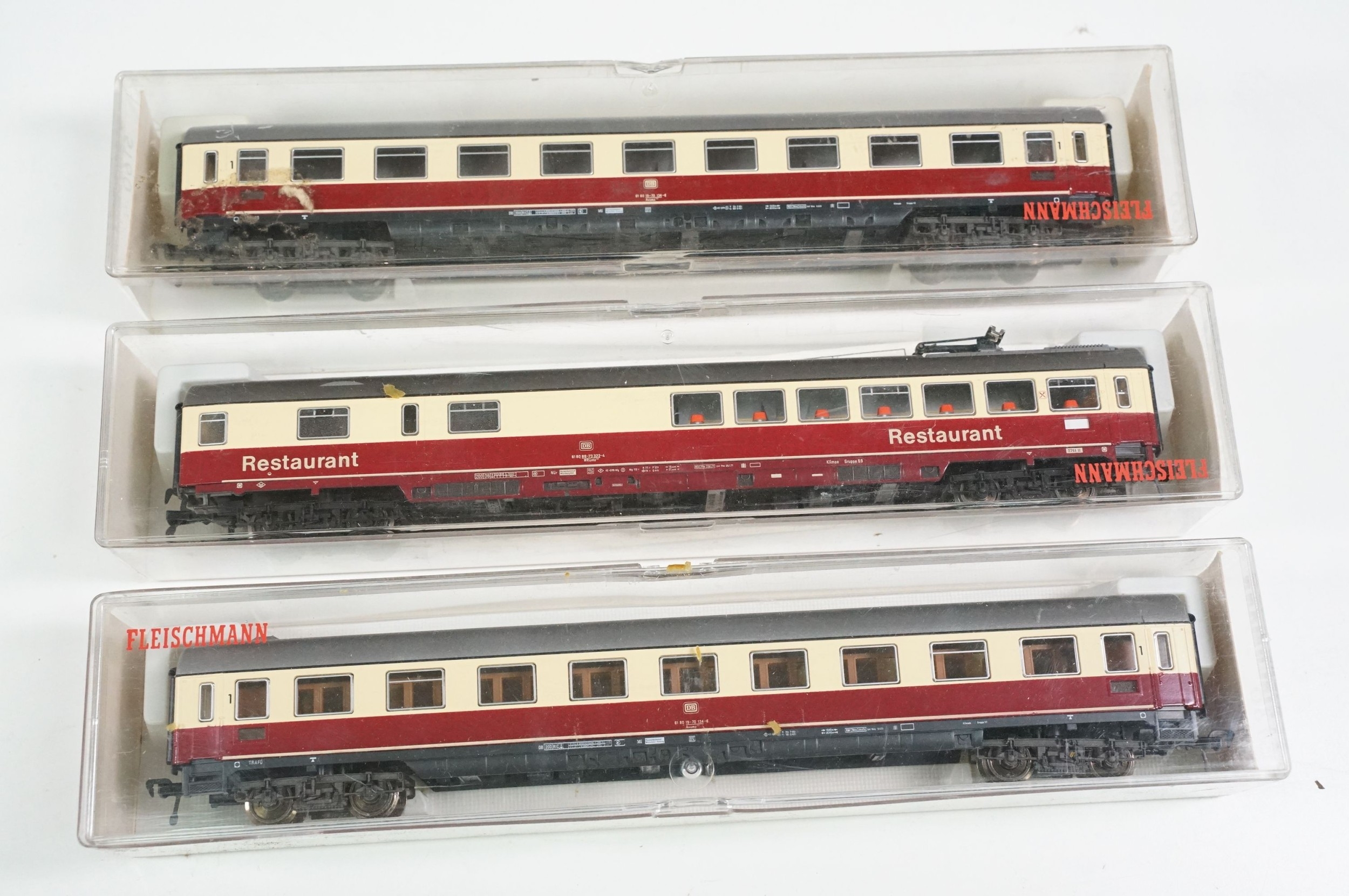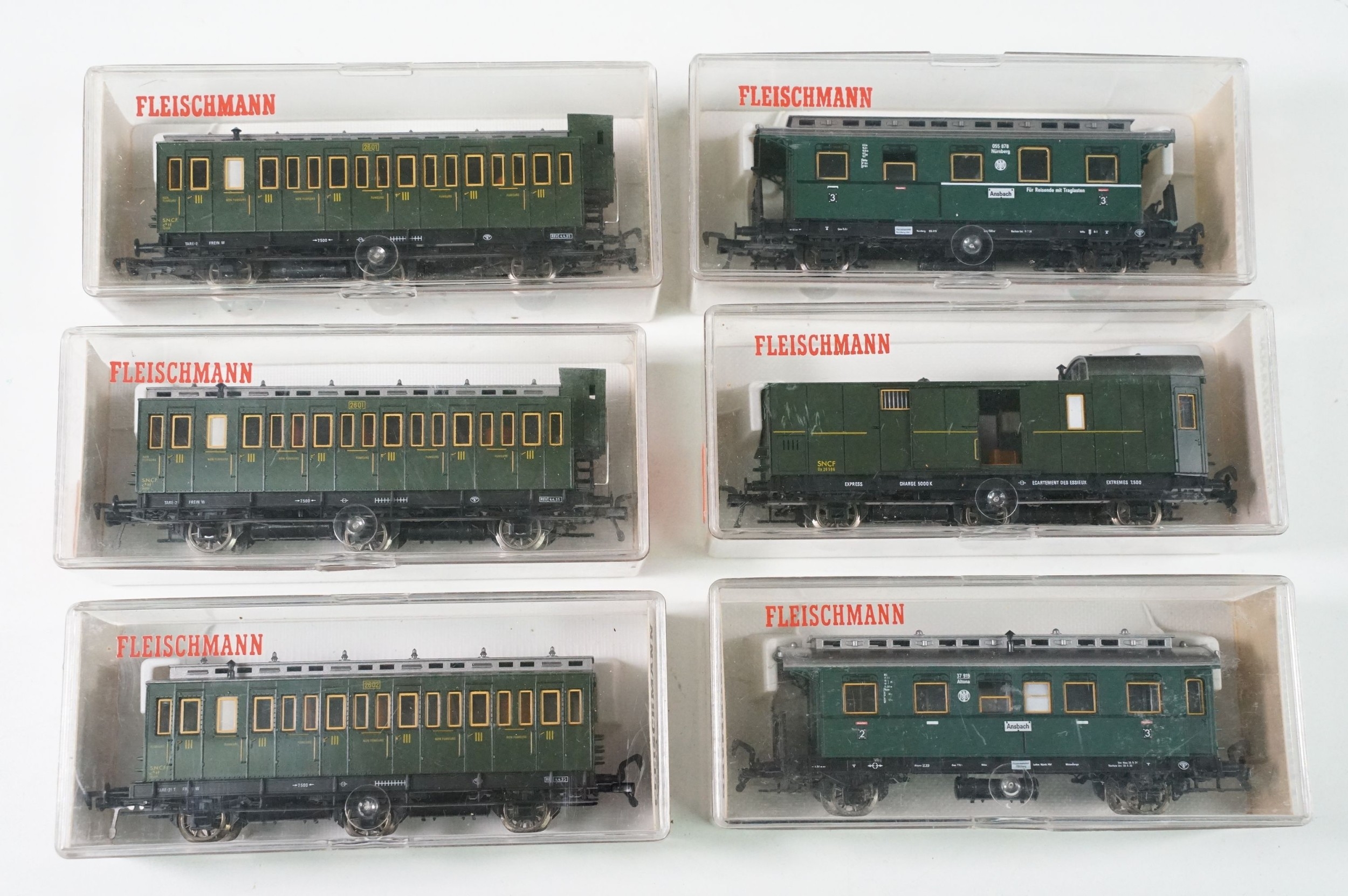 32 Cased / boxed Fleischmann HO gauge items of rolling stock to include 5087, 5085, 5084, 5082, 5083, 5086, 5160, 5222, 5169, 5160, 5356, 5069, 5222 etc
