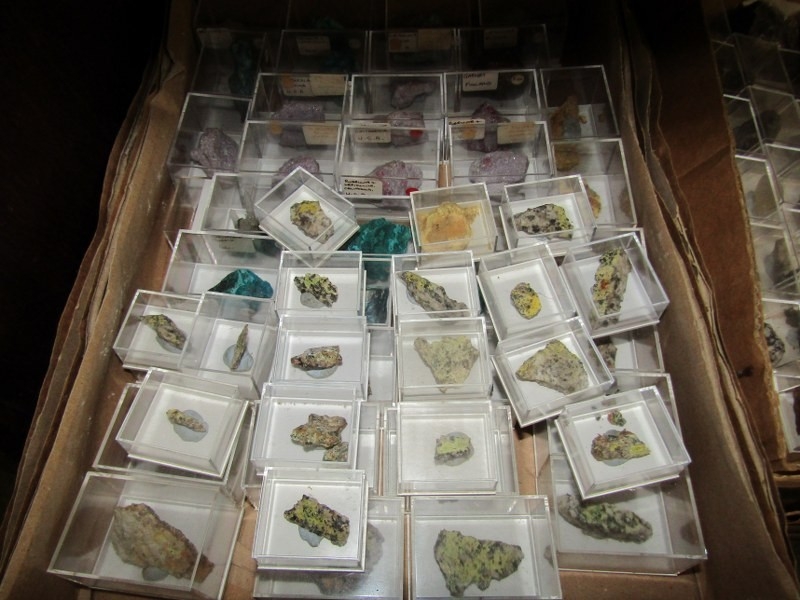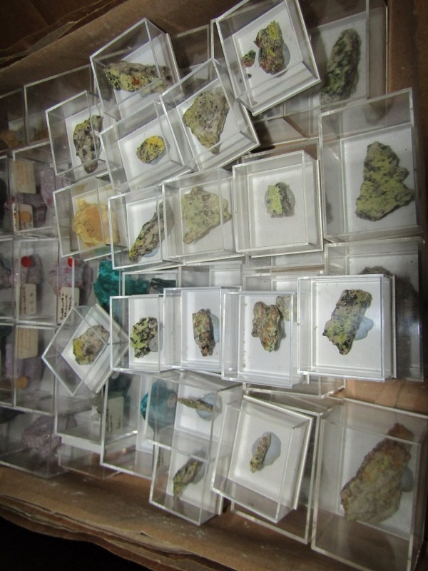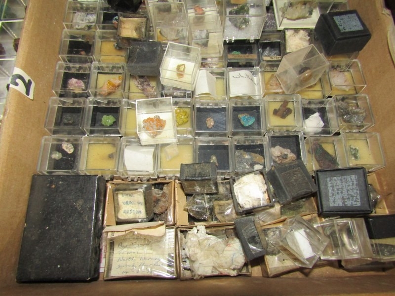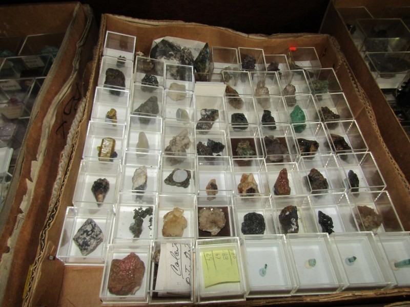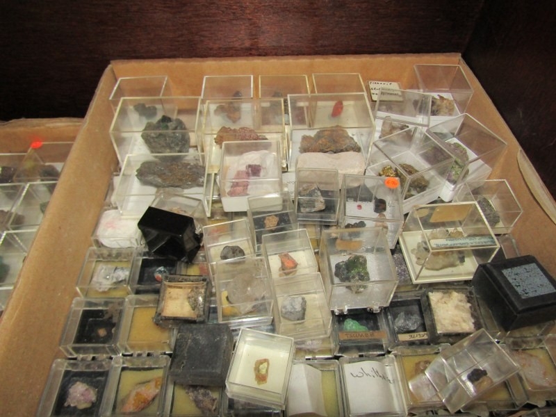 SMALL MINERAL SAMPLES in presentation boxes; various world, British and Cornwall minerals including malachite, rubellite and many others, over 3 boxes
