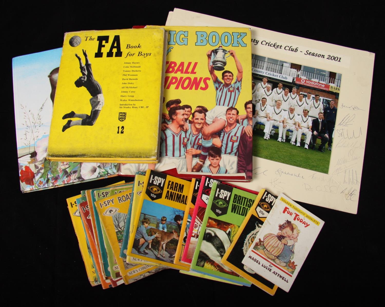 I-Spy Books, including News Chronicle The Great Tribe and no.1, 7(2), 8, 14(2), 18, 20, 21, 22, 23, 32 (faults), 33, I-Spy Colour Series (3); other later issues (15); other titles (2) [33]; sports annuals (2); autographed cricket photos (2)