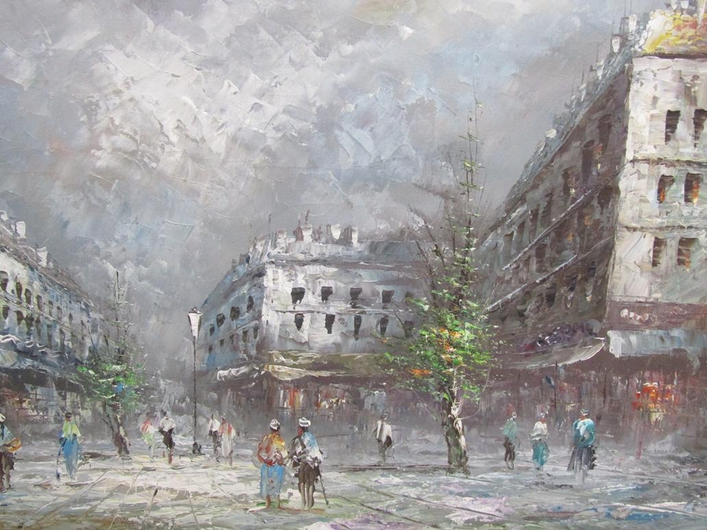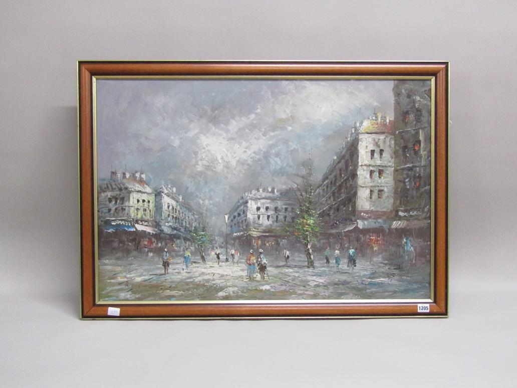 SIGNED INDISTINCTLY - PARISIAN STREET VIEW, OIL ON CANVAS, FRAMED