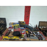 Two vintage radios, Geisha turn table, soundbar, desk lamp, mobile phones and other vintage items