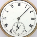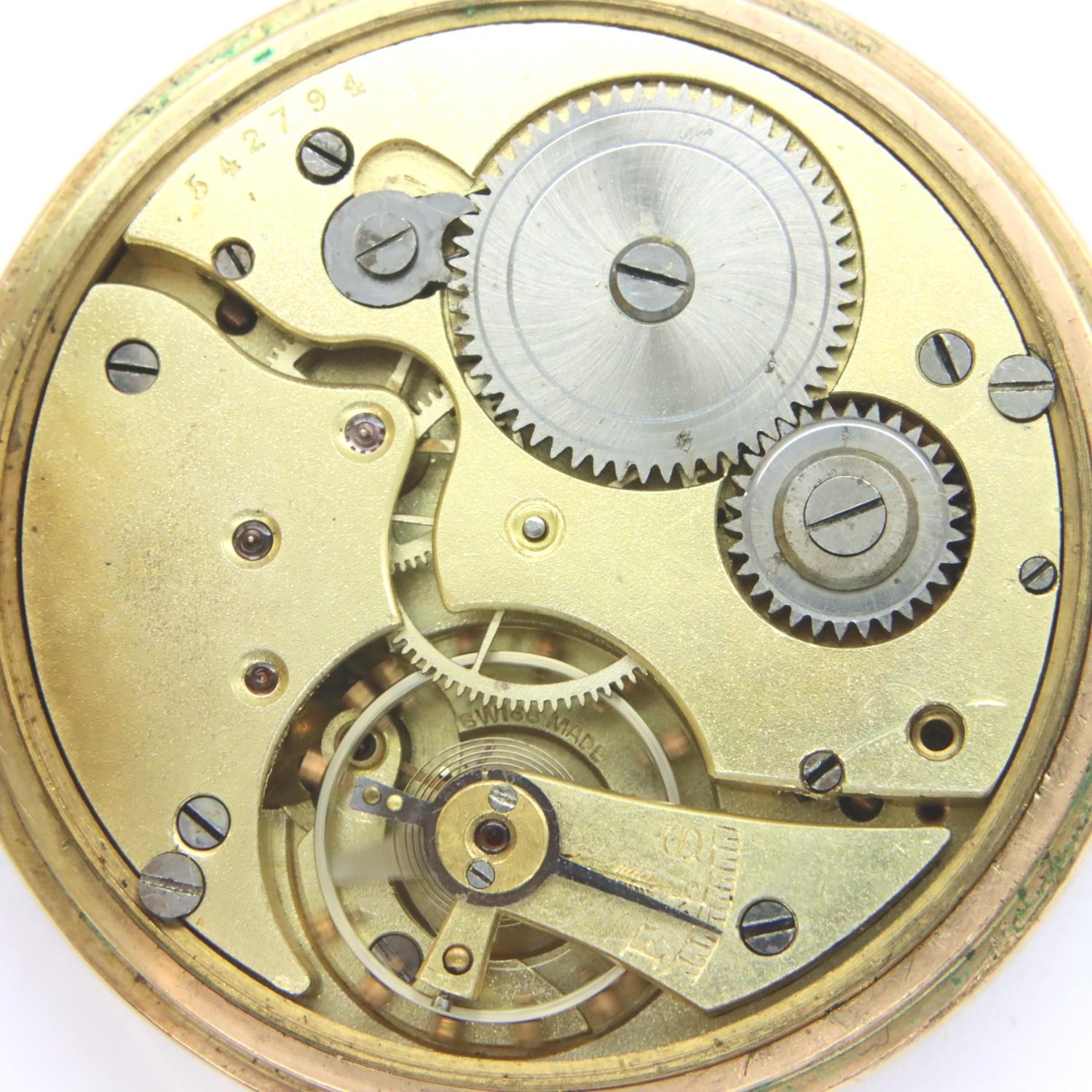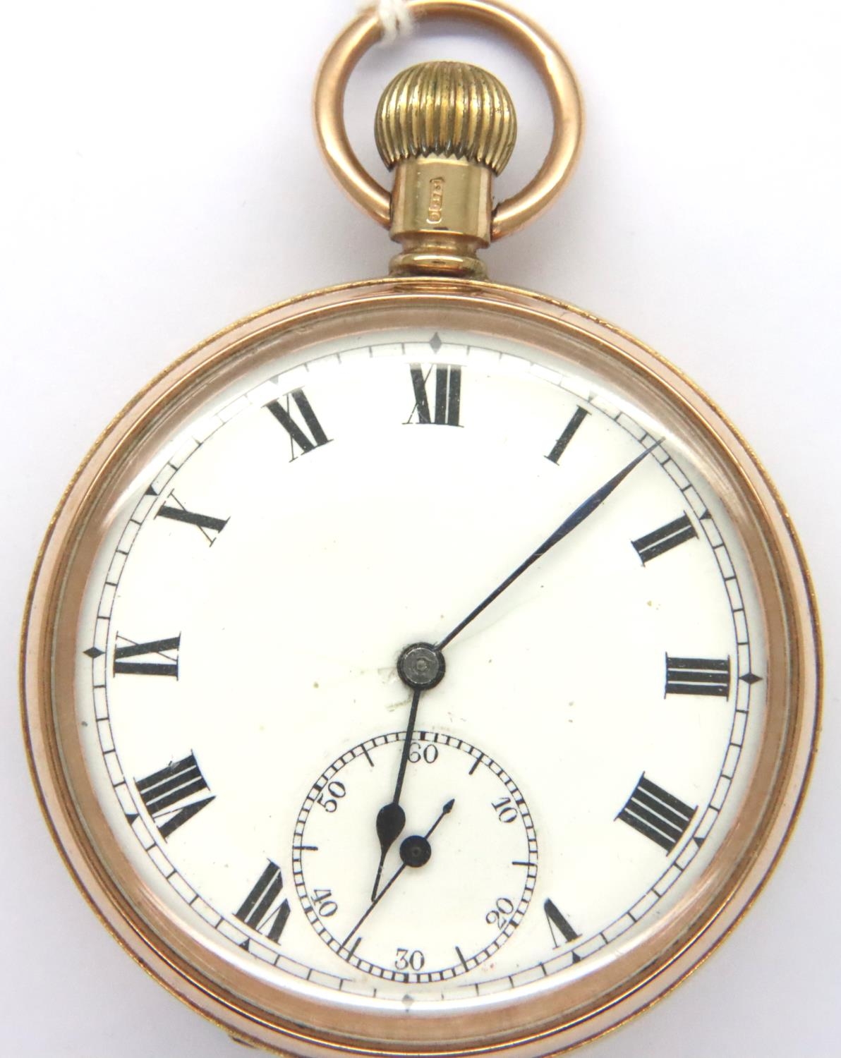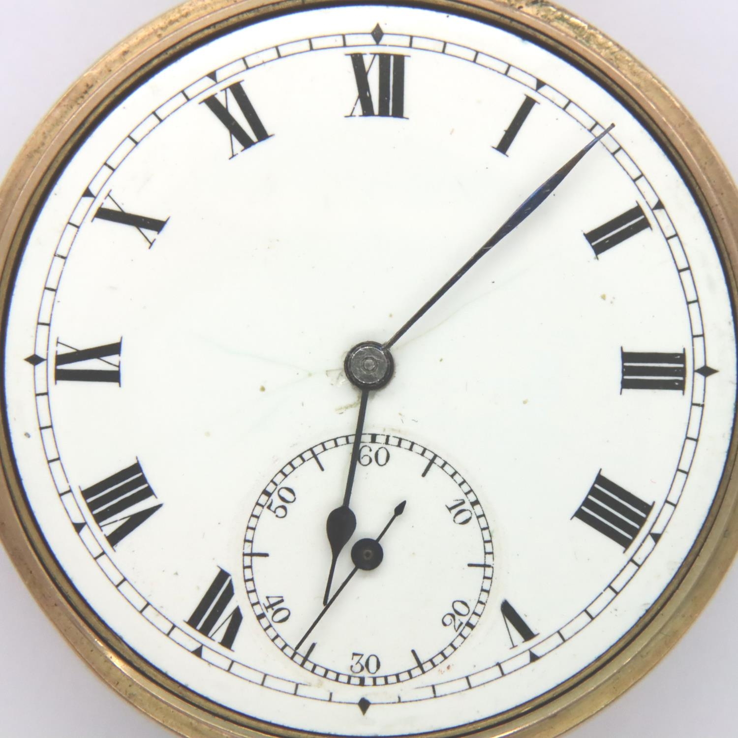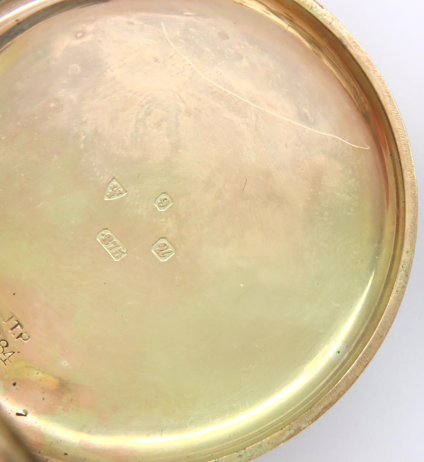9ct gold cased crown wind open face pocket watch, case D: 48 mm, not working at lotting. P&P Group 1 (£14+VAT for the first lot and £1+VAT for subsequent lots)