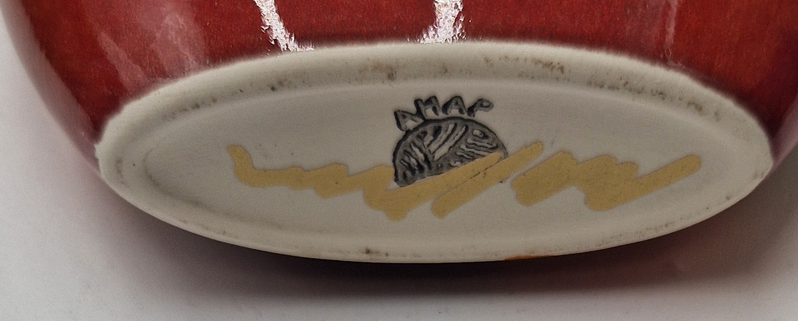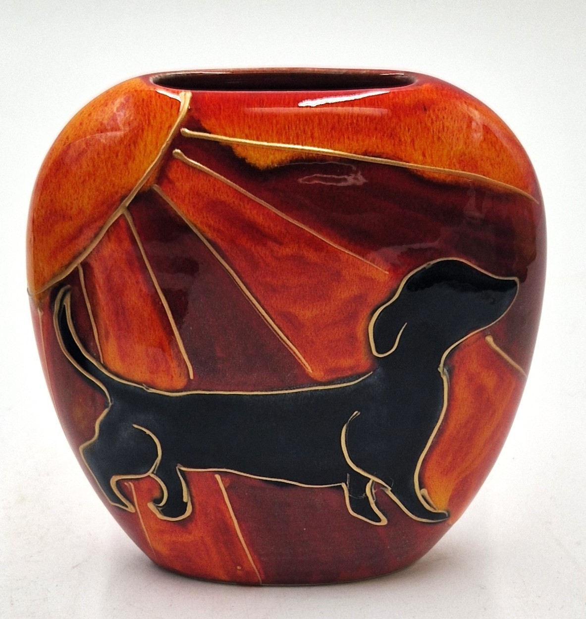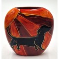 ANITA HARRIS ART POTTERY 12.5cm DECO DOG PURSE VASE "DACHSHUND" (Signed In Gold By Anita Harris)
