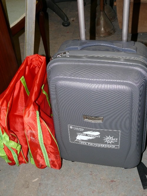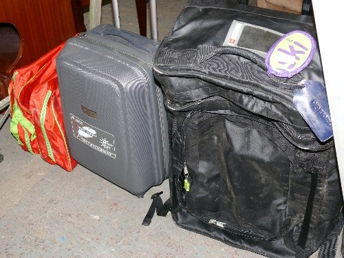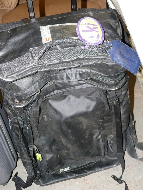 TRAVEL CASE WITH WHEELS IN GREY, A LARGE NORTHFACE CASE WITH WHEELS AND A FRED HOLDALL