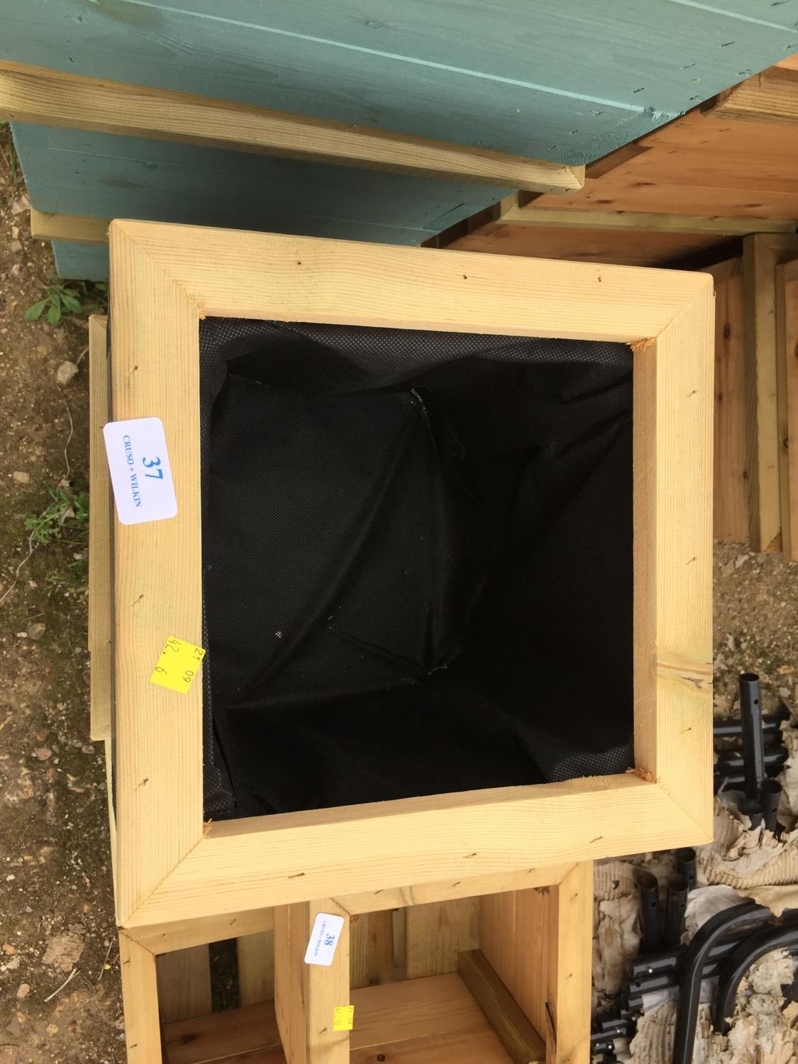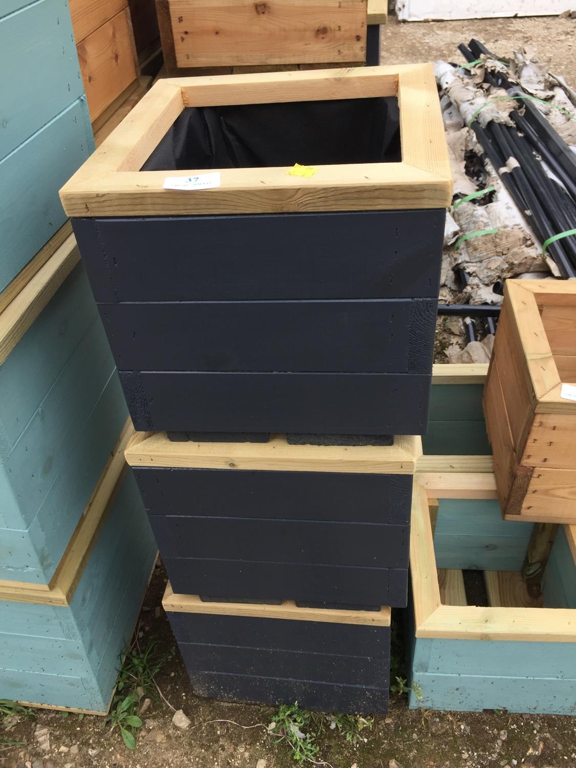3 GREY WOODEN PLANTERS
