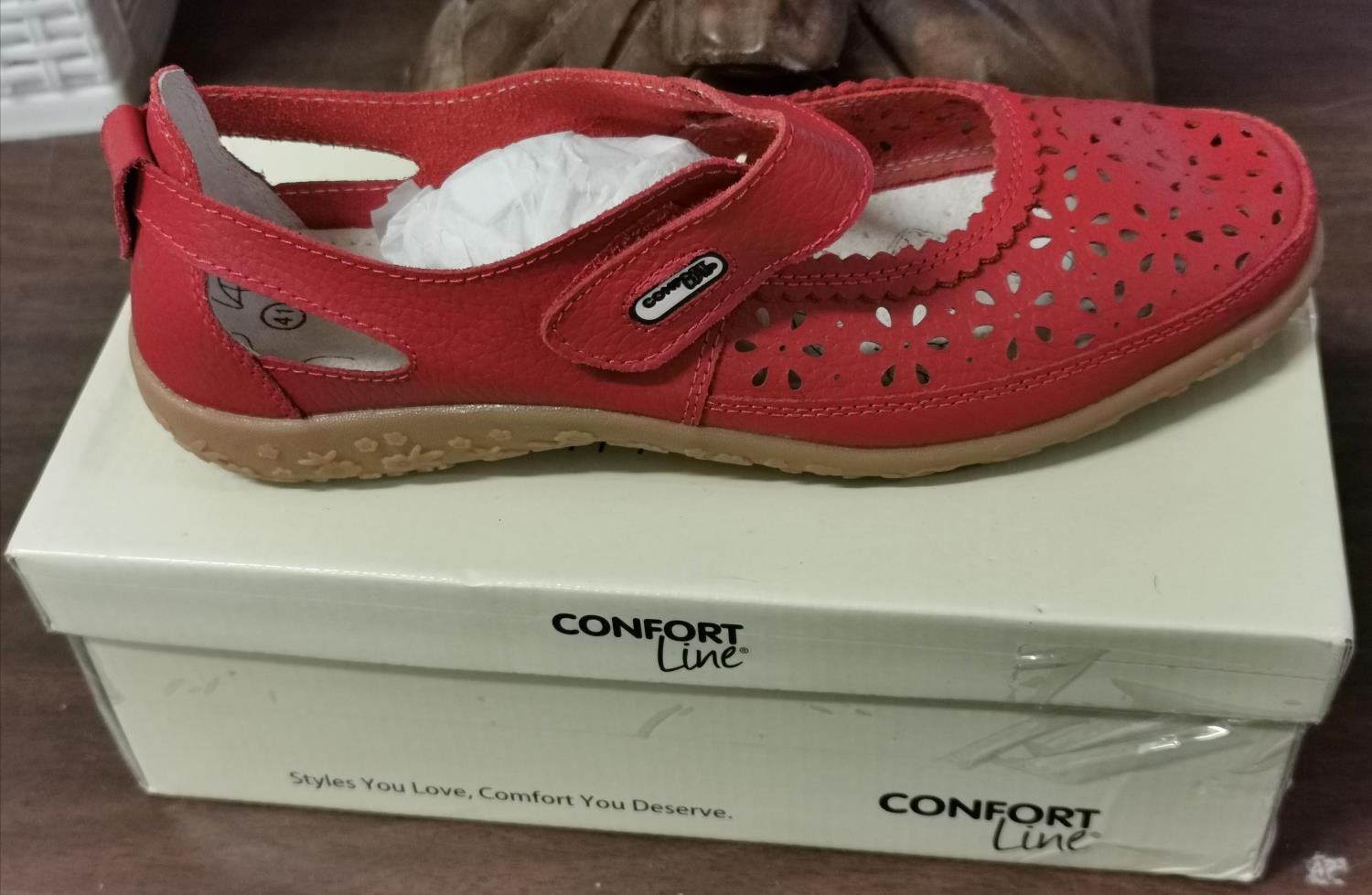 New and boxed Confort Line leather ladies comfort loafers with velcro fastening size 7