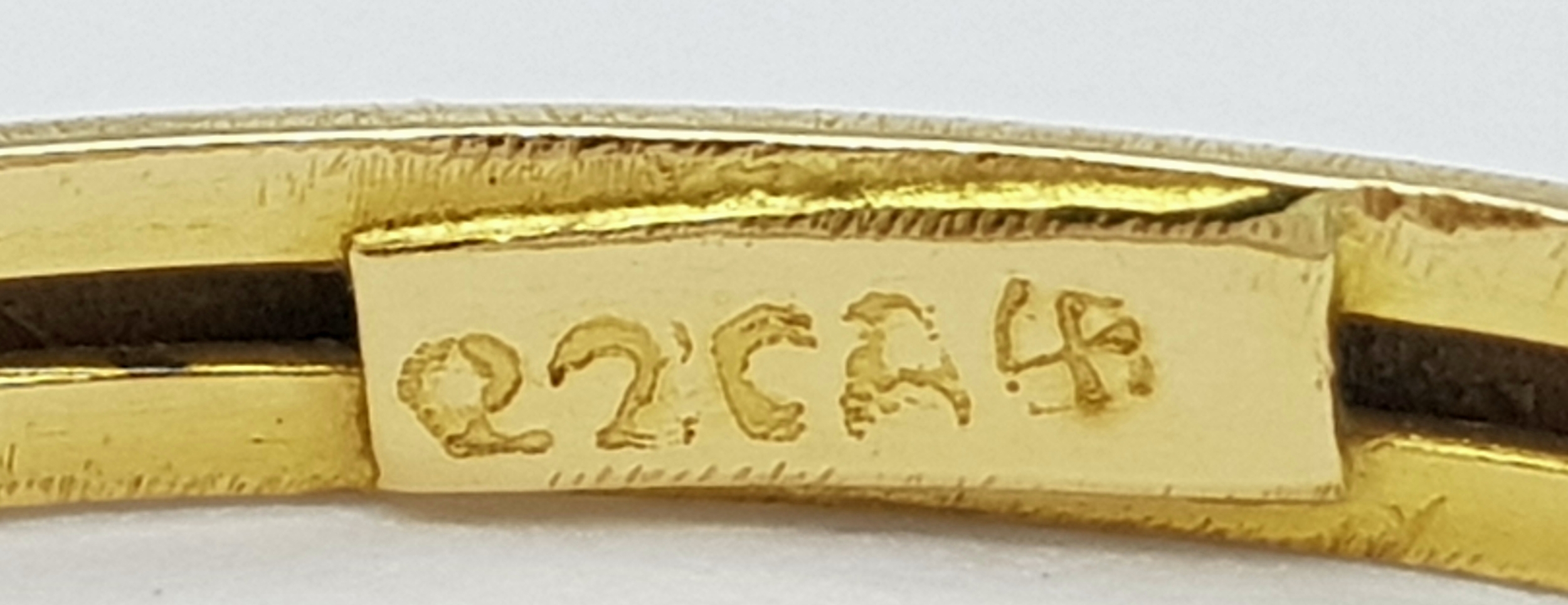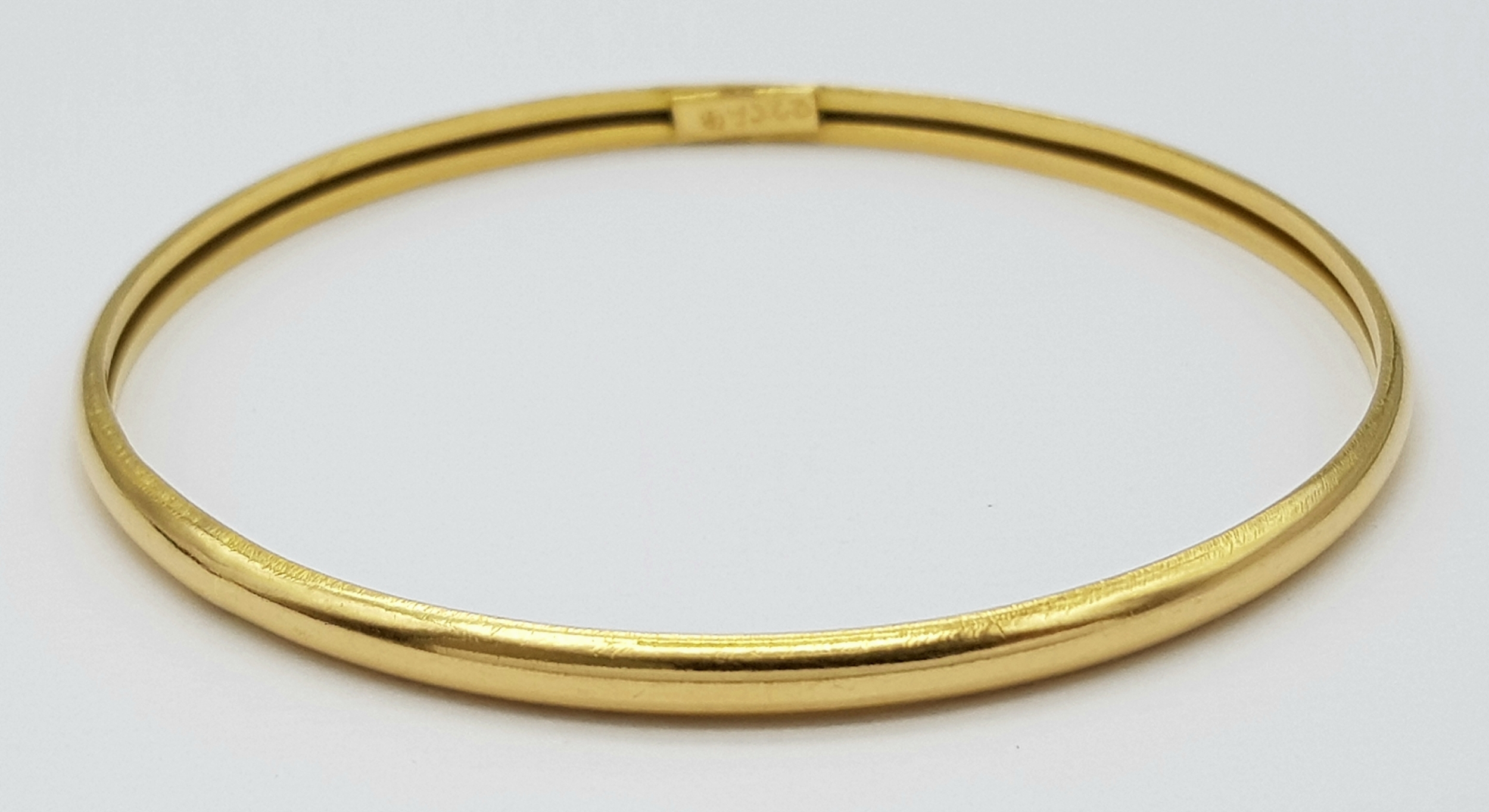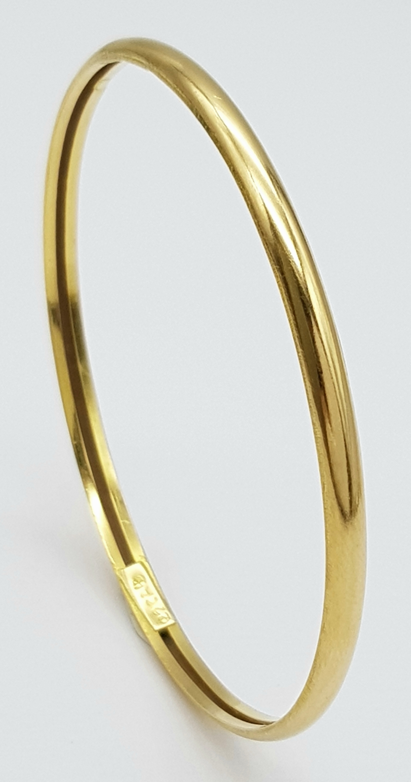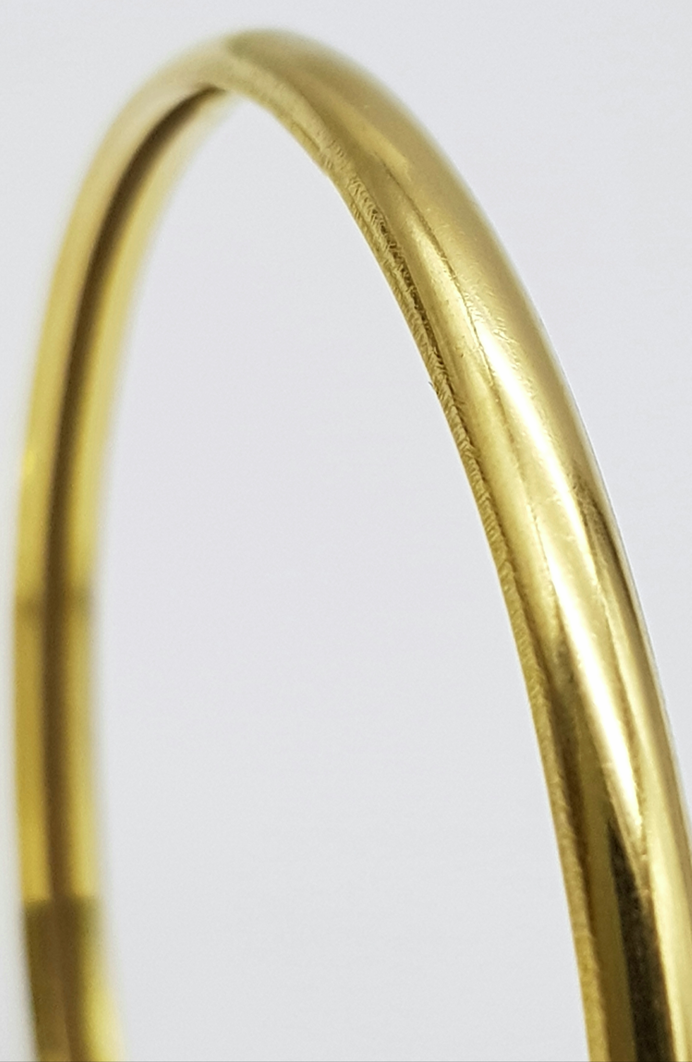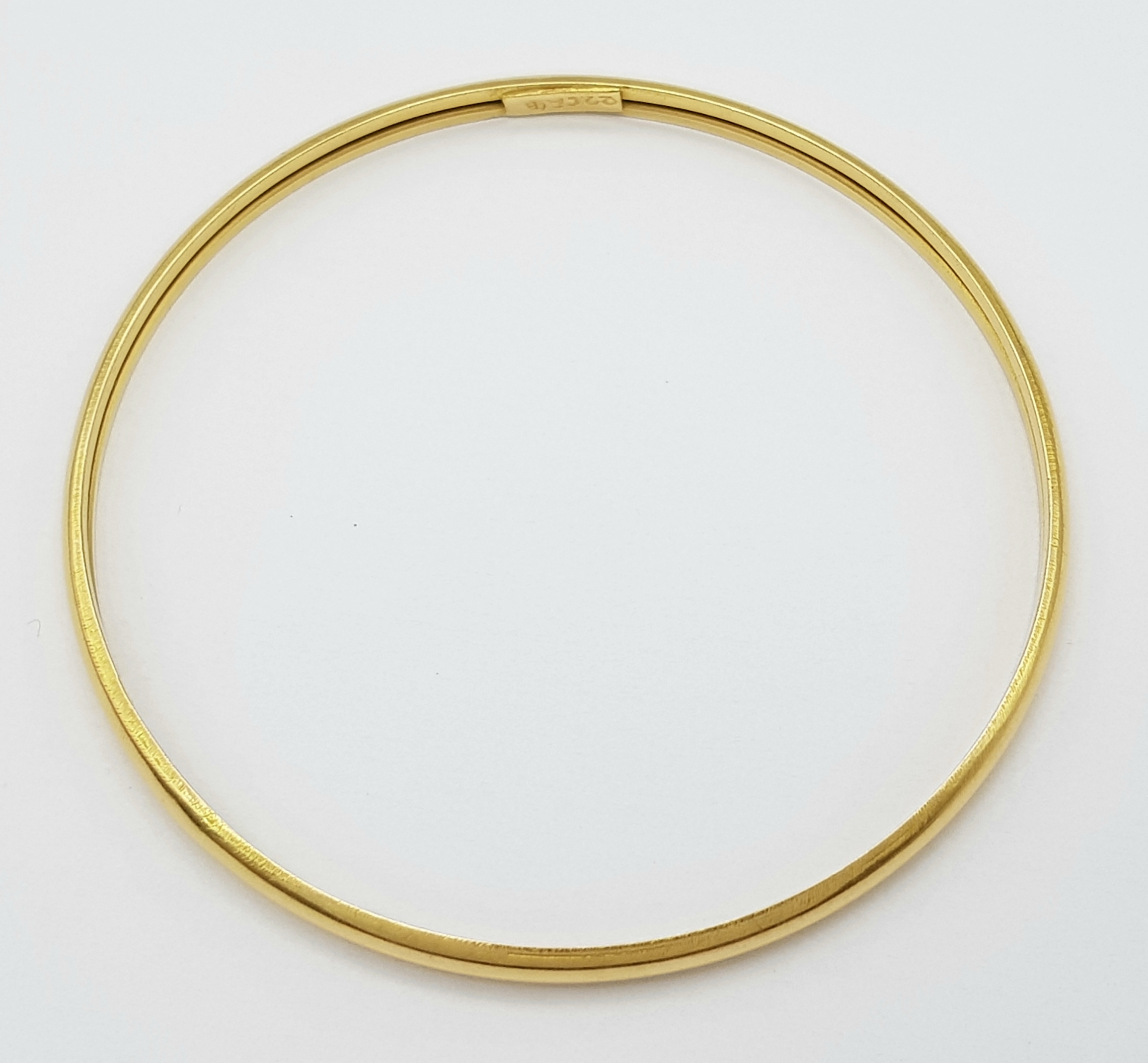 A 22K Yellow Gold Bangle. 3.5mm band width, 58mm inner diameter. 7.8g weight.