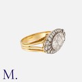An Antique Diamond Ring in yellow gold and silver, set with three principal old cut diamonds, weighing approximately 1.0ct in total, with additional old cut diamonds in surround.